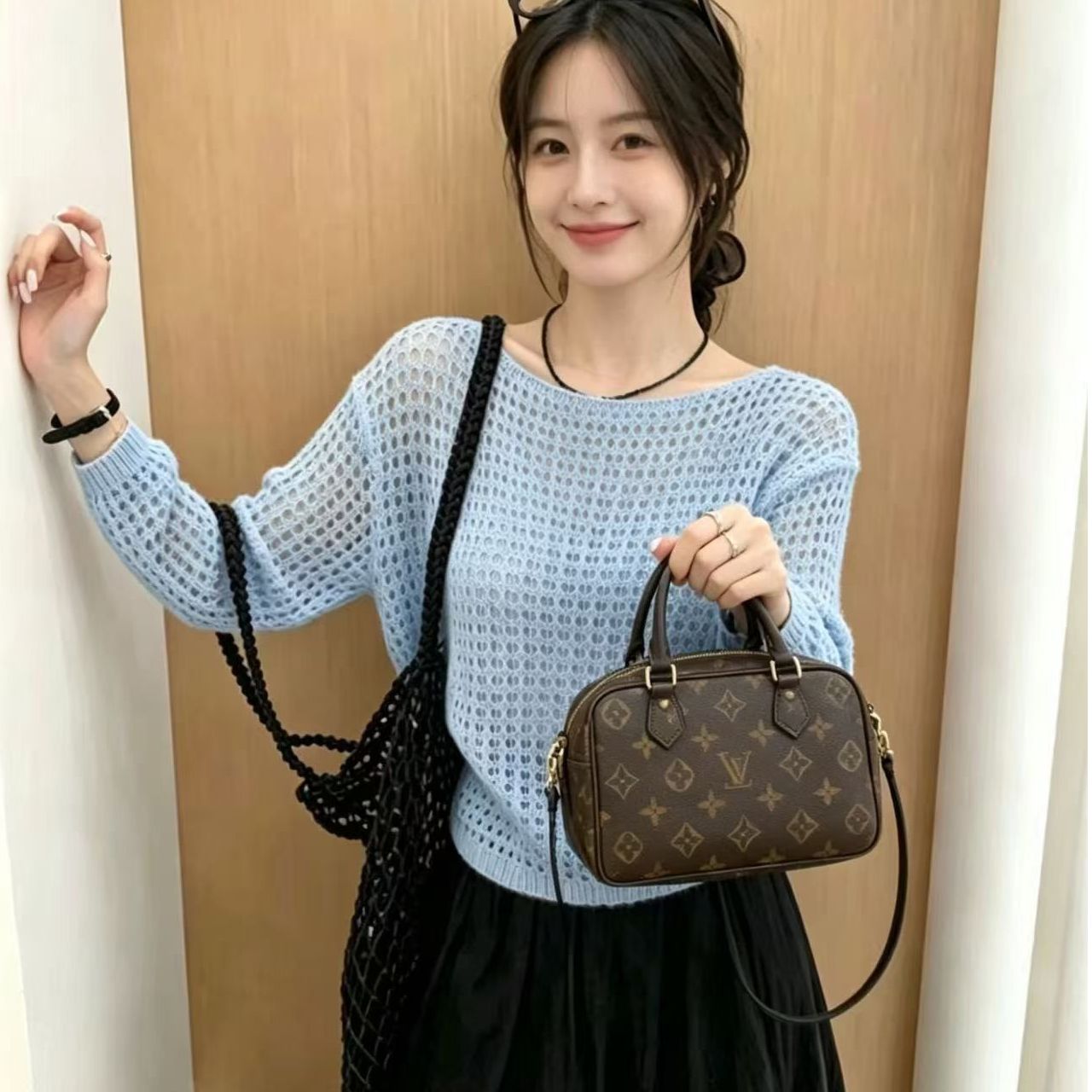 2026 년 여름 새로운 디자인 센스 달콤함 연령 감소 오프숄더 홀로우 아웃 니트 루즈핏 풀오버 긴팔