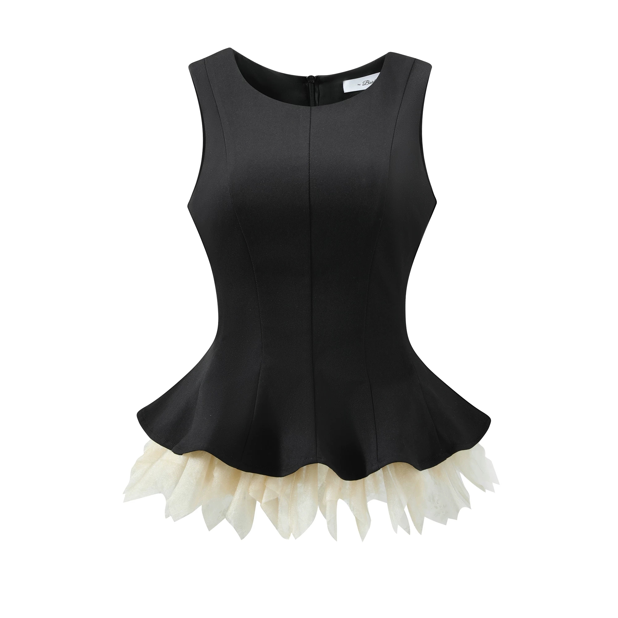 무쯔리 목자이 ~ 중 리 감기 품격 디자인 센스 3 차원 꽃잎 레이스 망사 패치워크 민소매 허리 수축 맨위 여성 여름