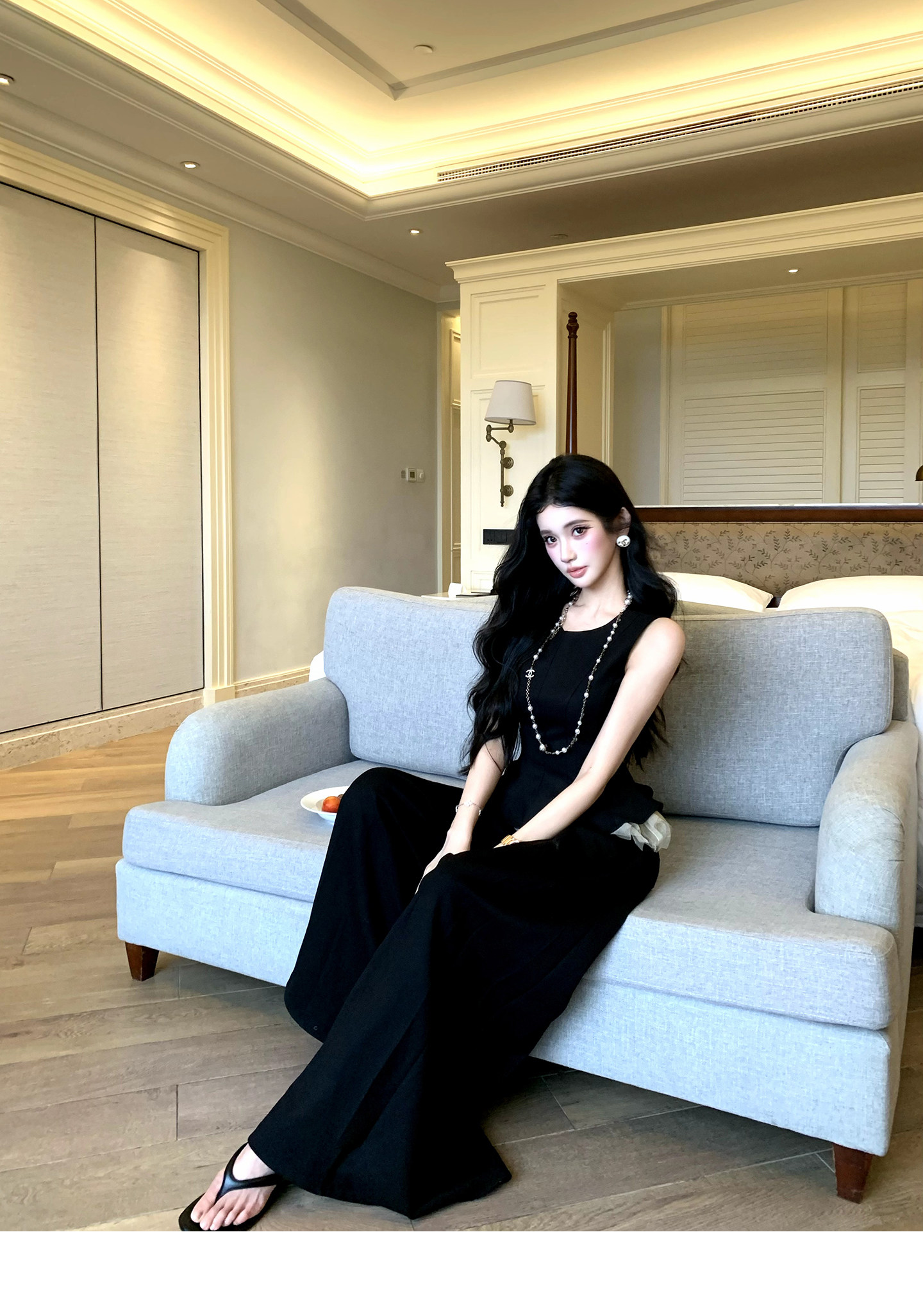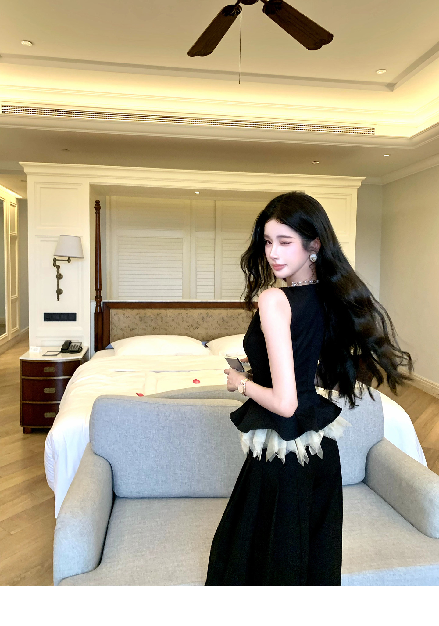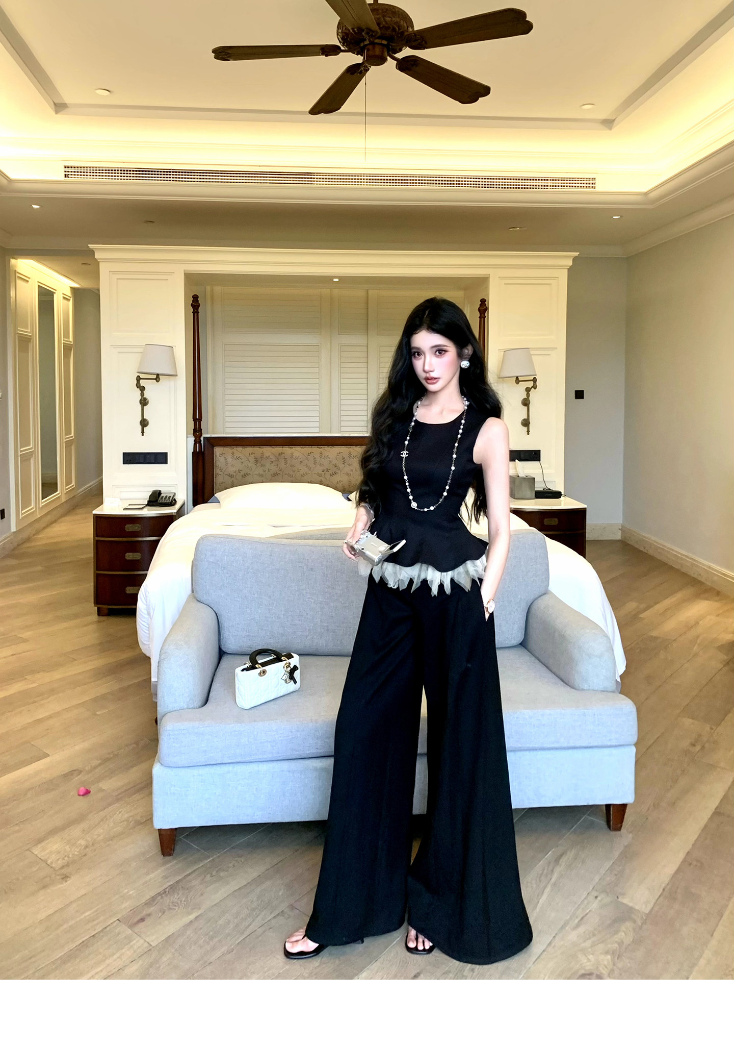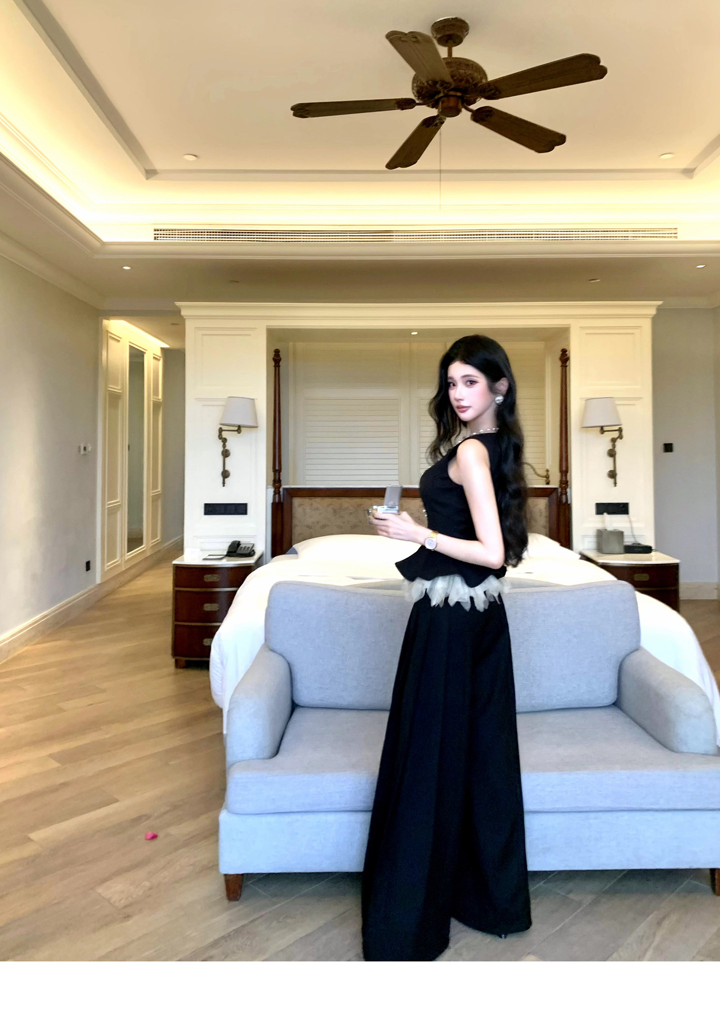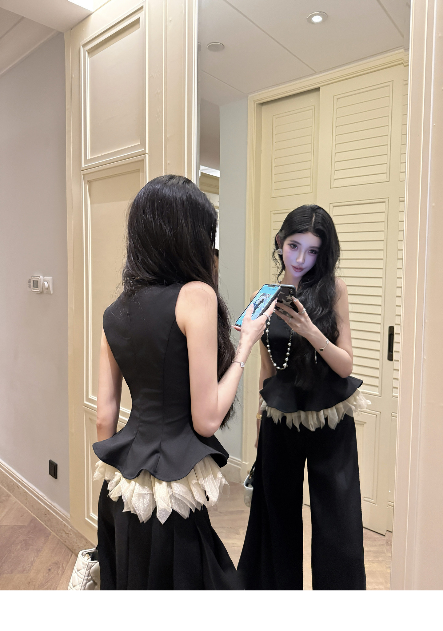 있음 후안 이른 봄 맨위 2026 새로운 민소매 조끼 여성 여름 외출용 스트레이트 한 마디 반신 치마 세트