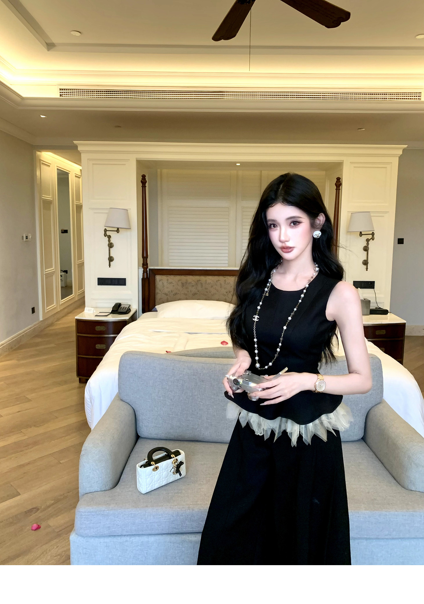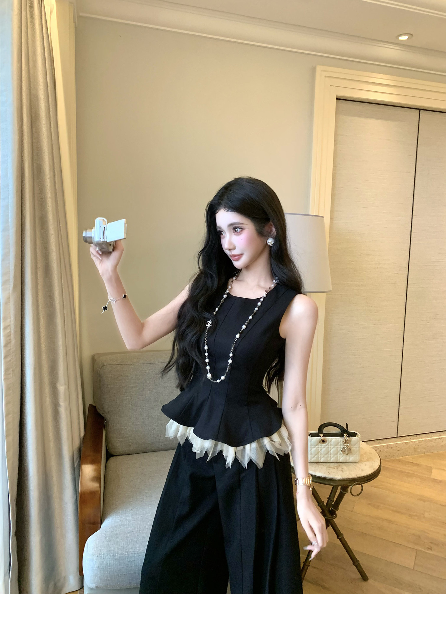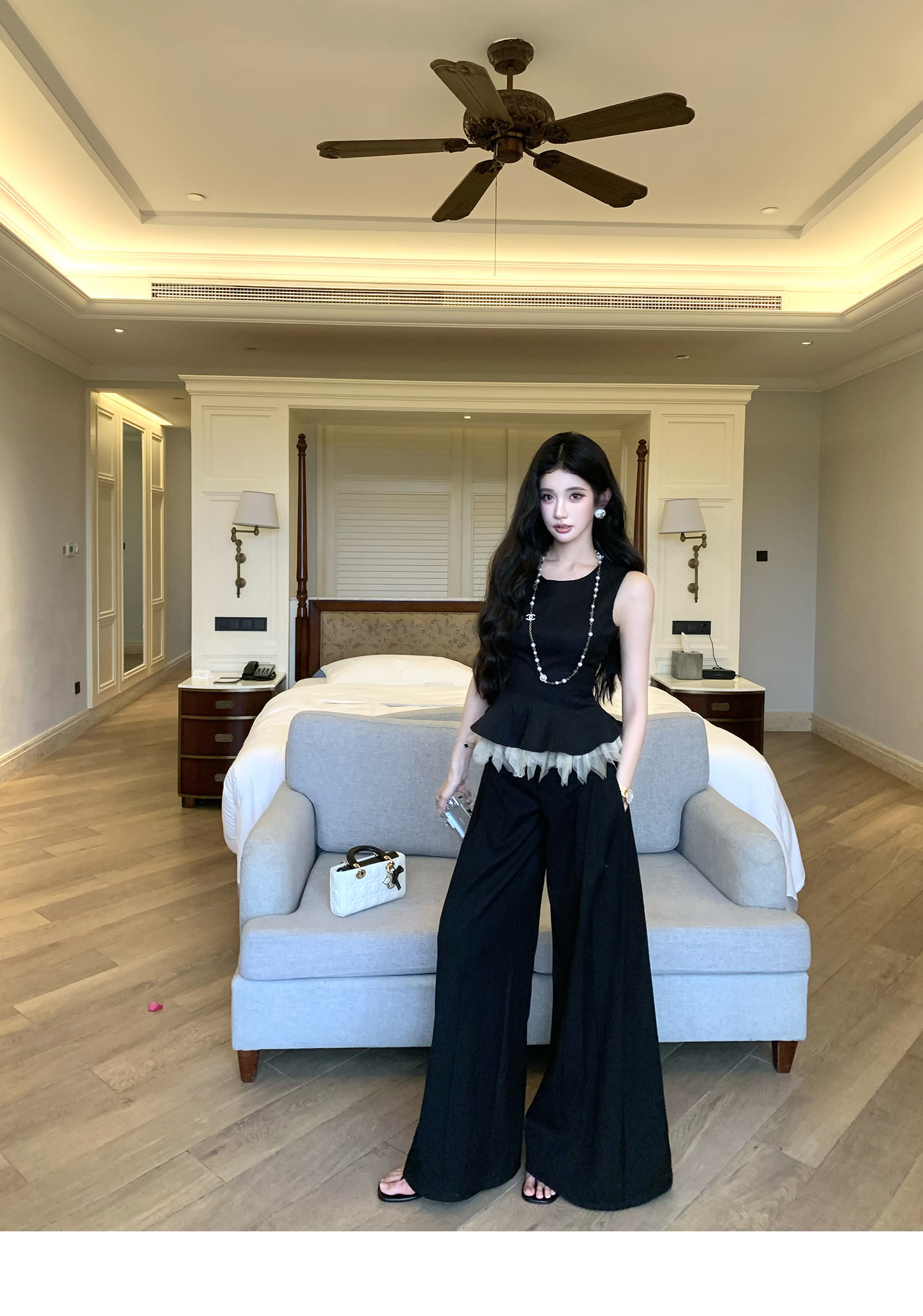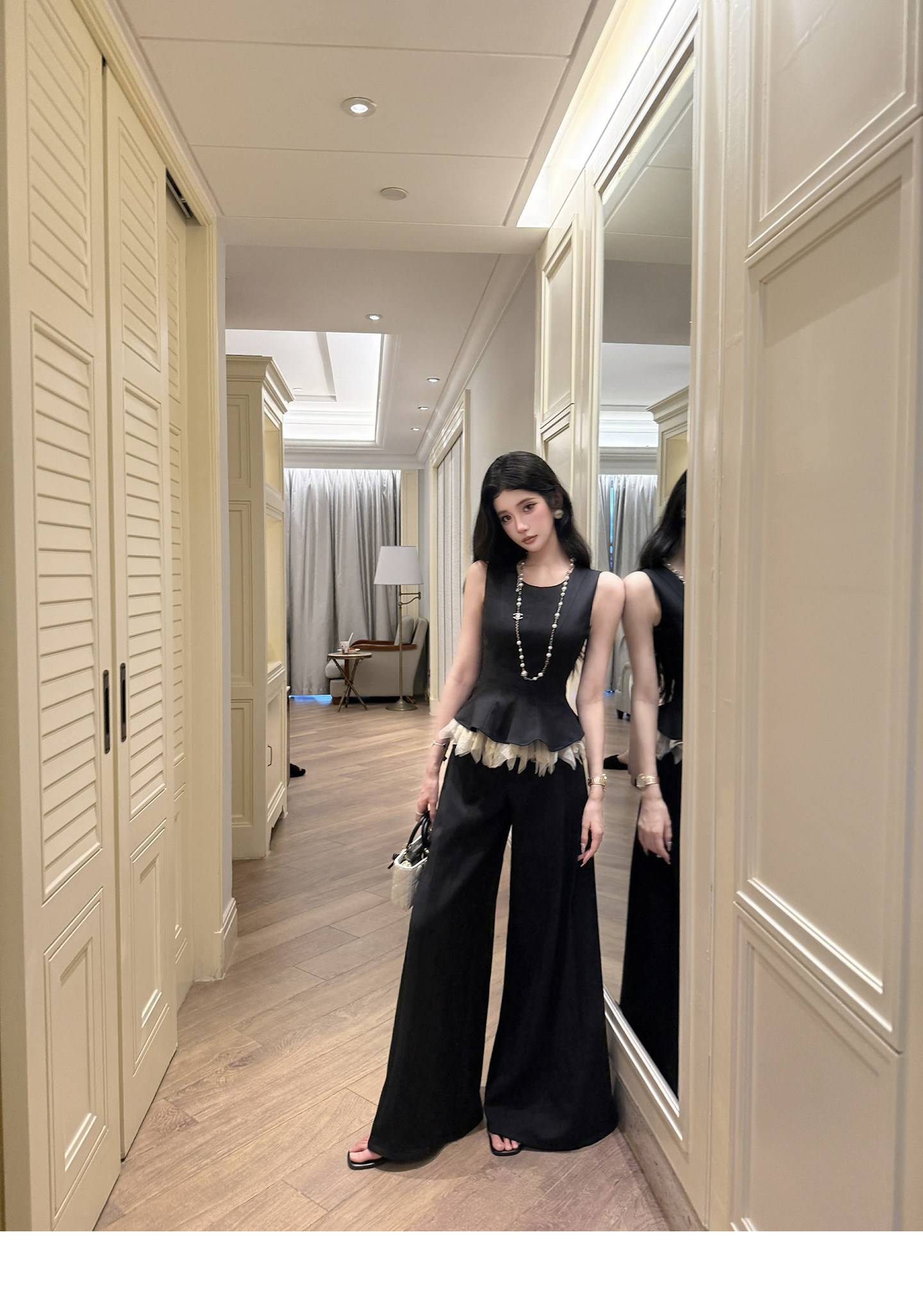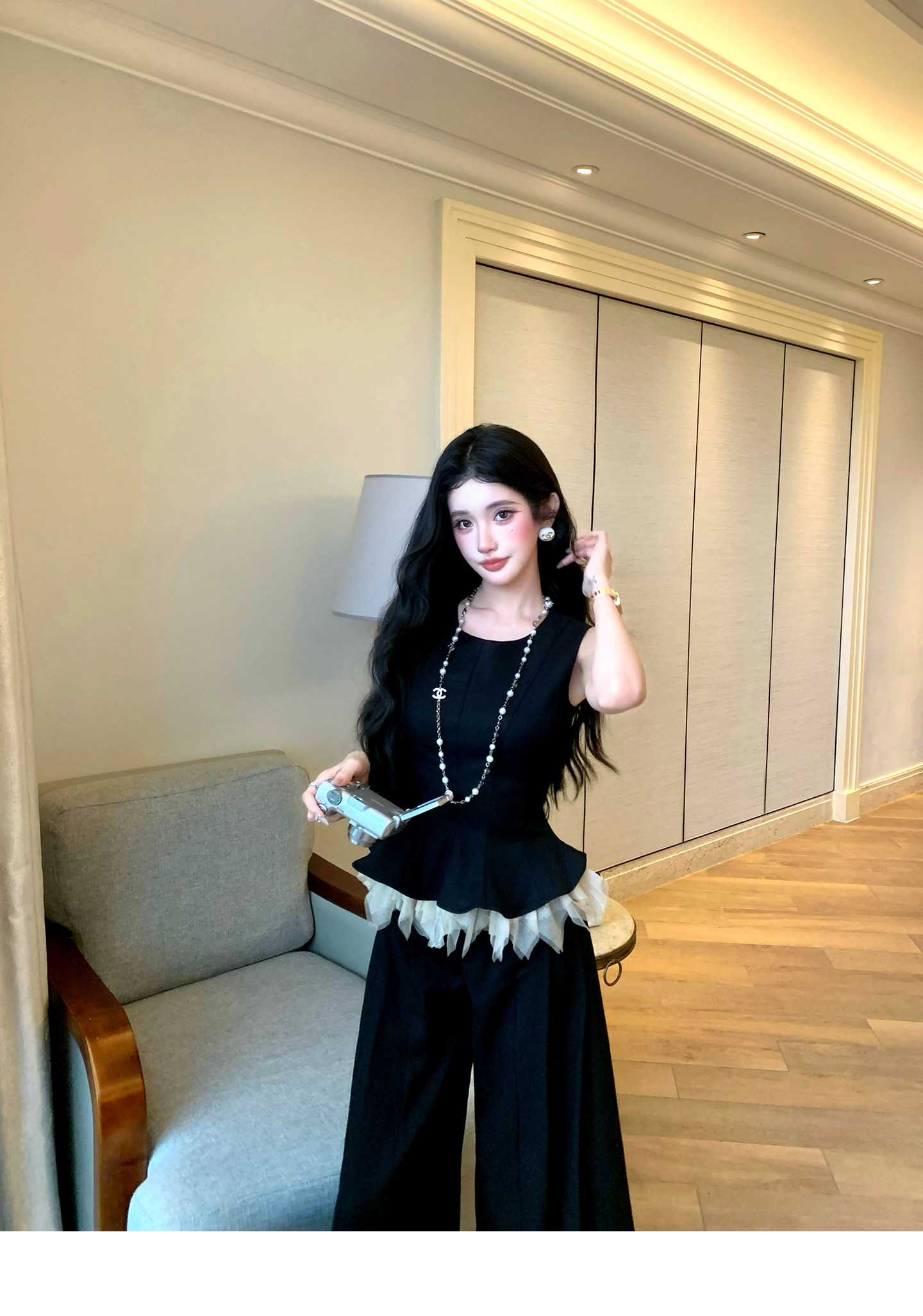 있음 후안 이른 봄 맨위 2026 새로운 민소매 조끼 여성 여름 외출용 스트레이트 한 마디 반신 치마 세트