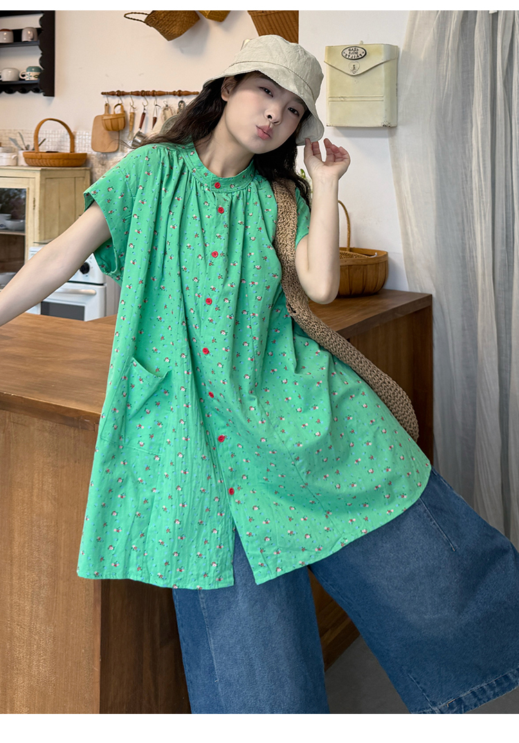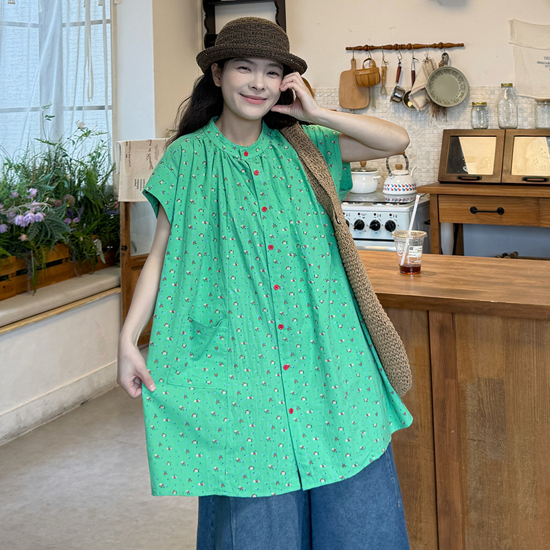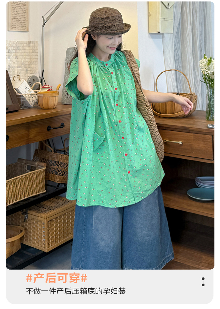 실사 2026 여름 섹션 임산부 미니멀리즘 중간 길이 스탠드 칼라 반팔 셔츠