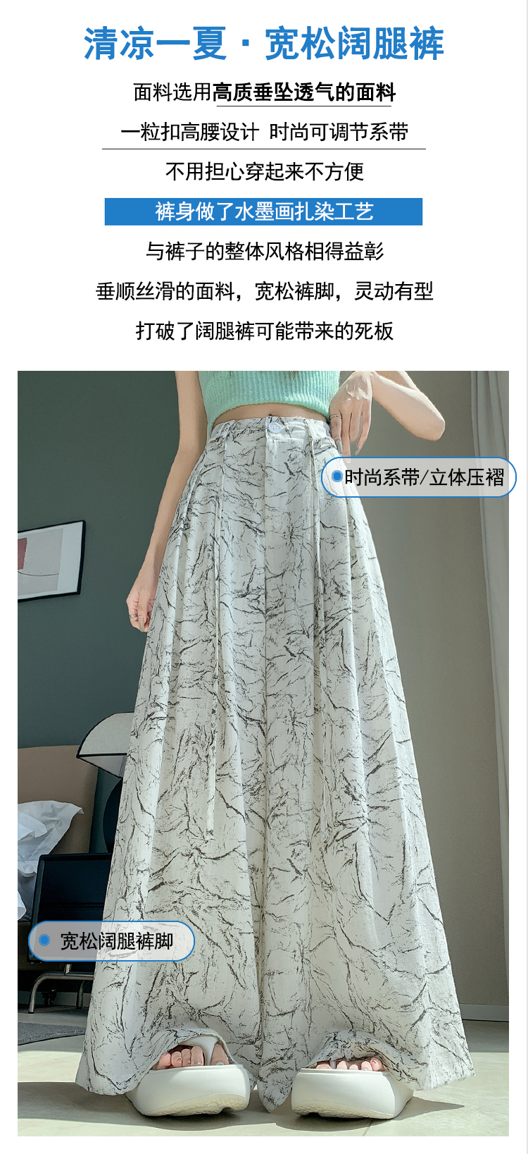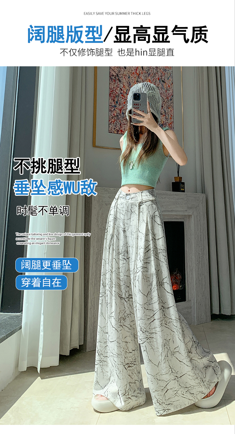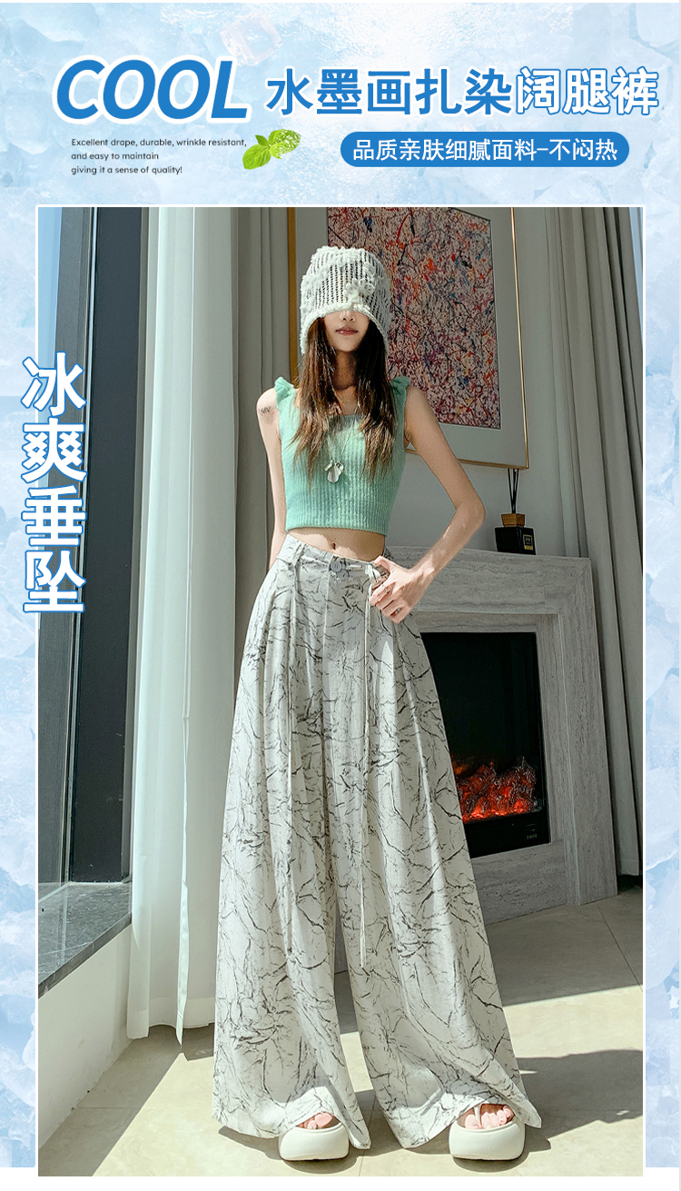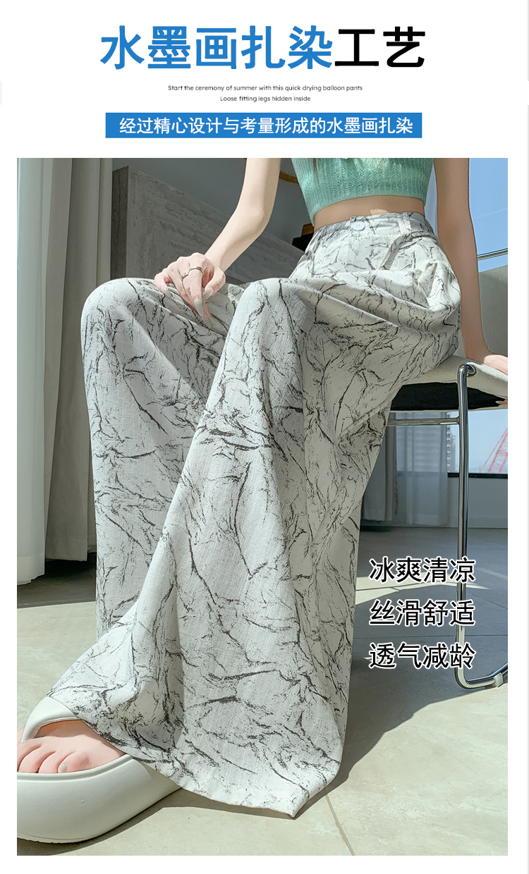 실사 주간 실크 아마 잉크 페인팅 와이드 레깅스 바지 2026 새로운 하이웨이스트 도루 센스 스트레이트 다용도 바닥 청소 캐주얼 바지