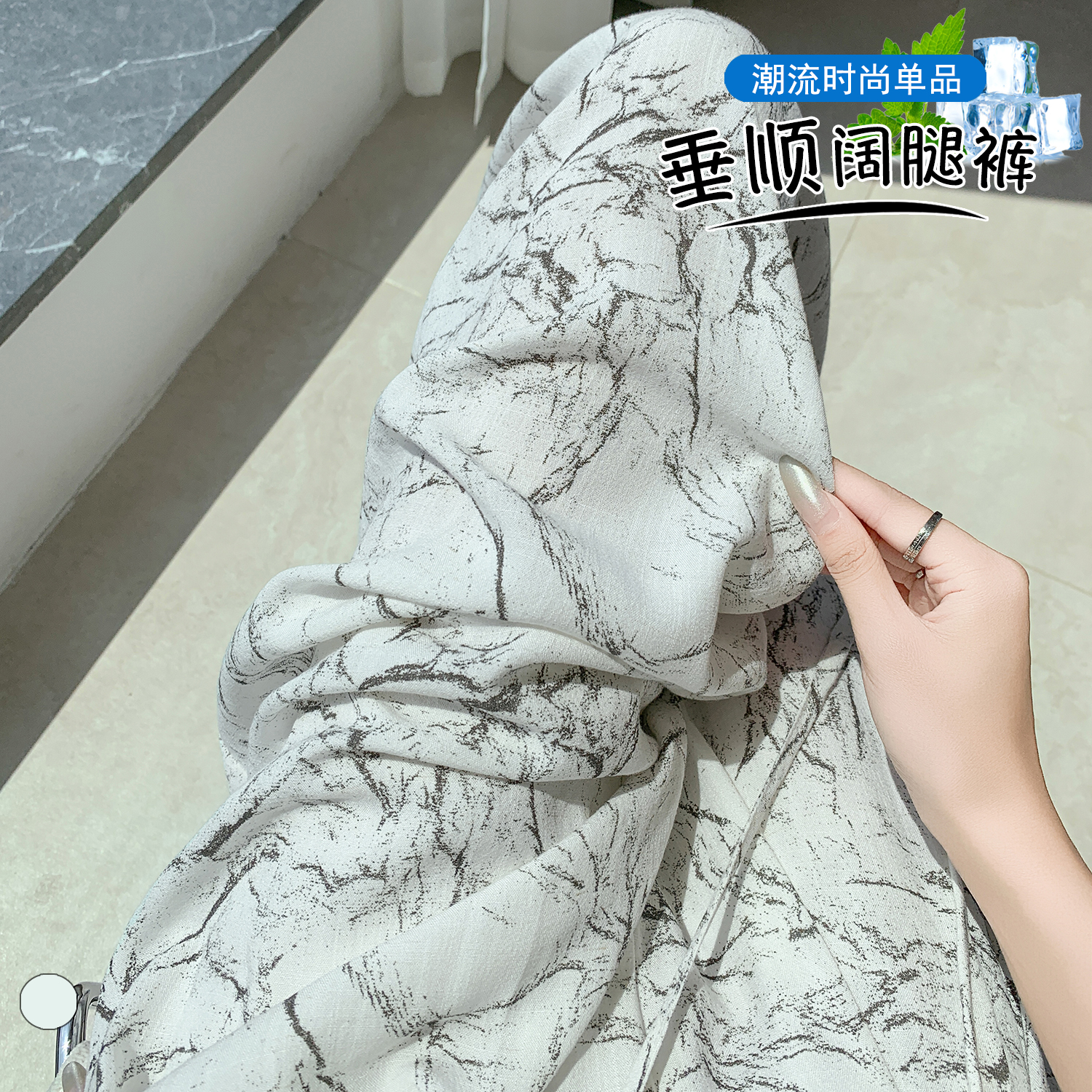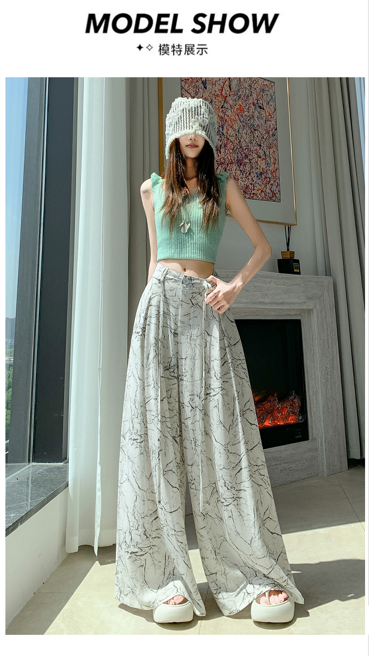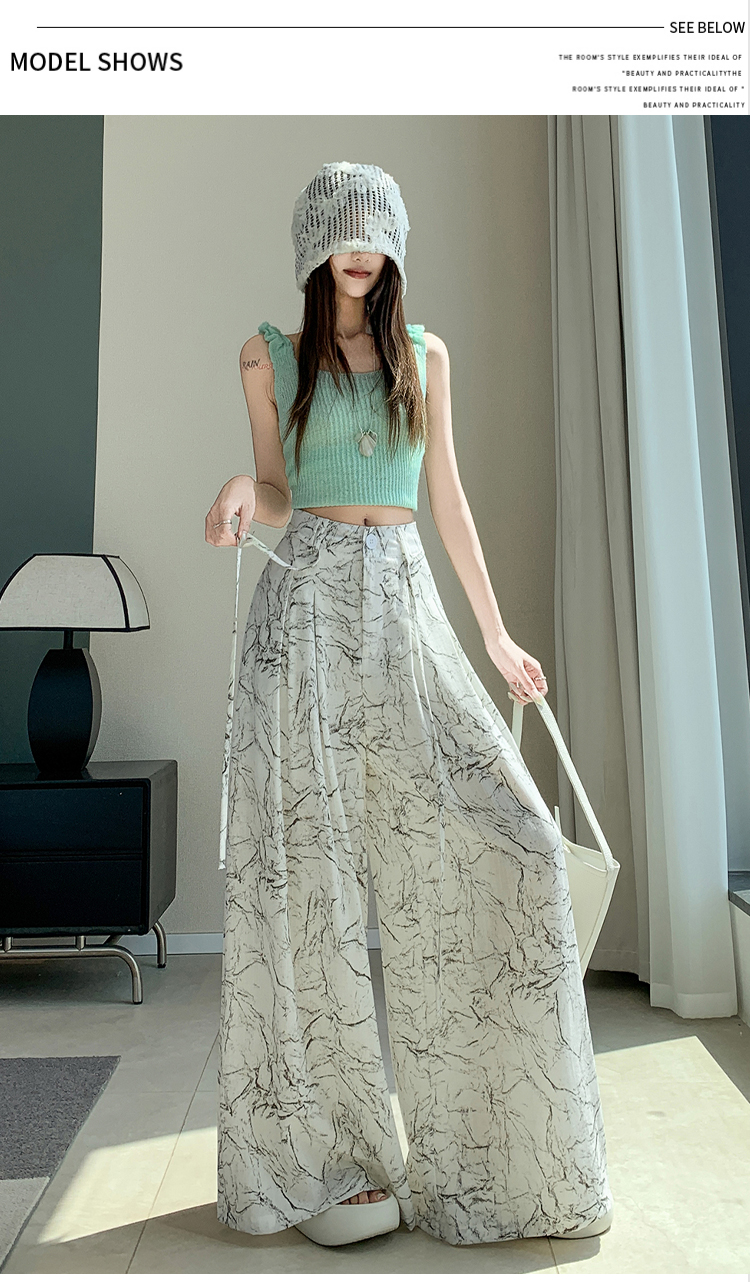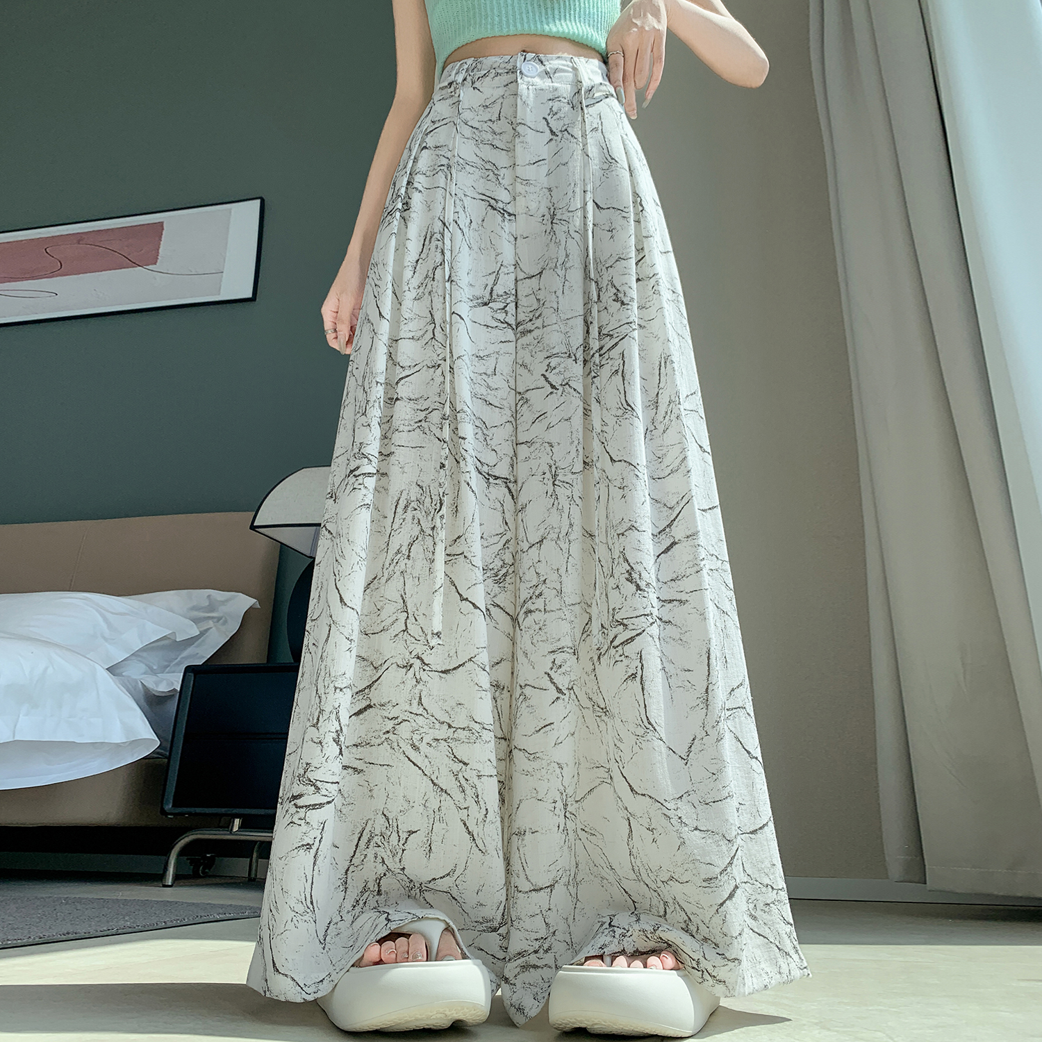 실사 주간 실크 아마 잉크 페인팅 와이드 레깅스 바지 2026 새로운 하이웨이스트 도루 센스 스트레이트 다용도 바닥 청소 캐주얼 바지