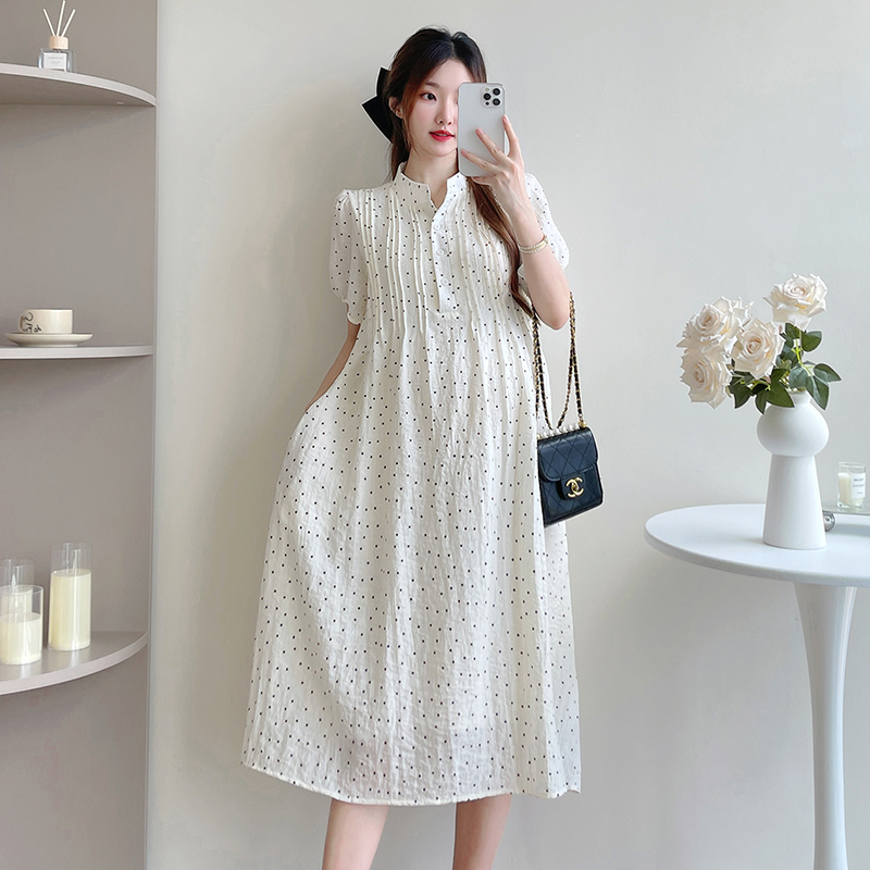 2026 여름 새로운 패션 임산부 달콤함 요정 가스 도트 무늬 연령 감소 빅 사이즈 작은 청신 품격 드레스