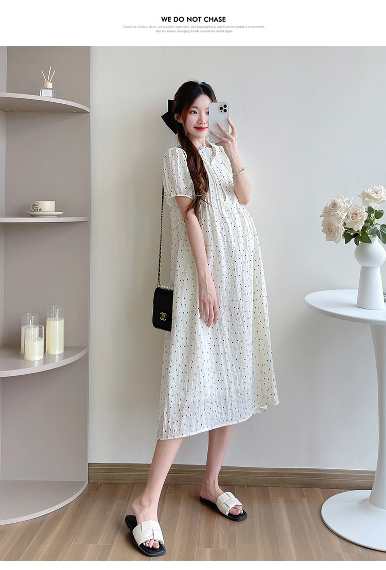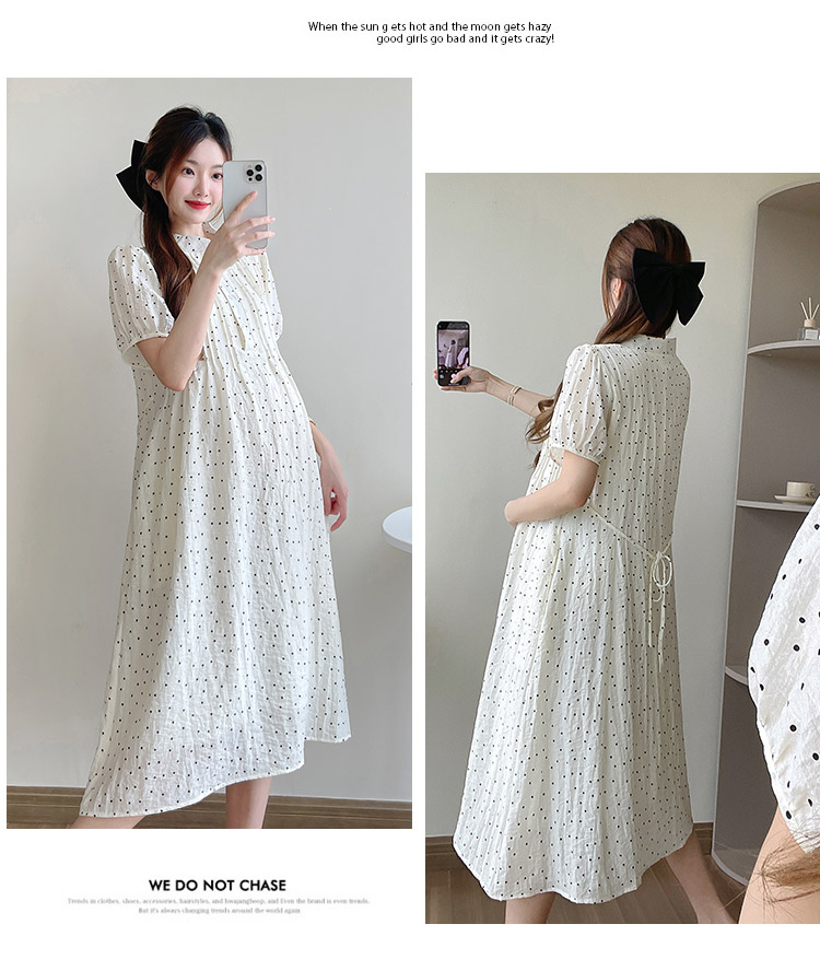 임산부 여름 드레스 새로운 패션 도트 무늬 드레스 트렌디 엄마 작은 청신 연령 감소 레이스업 품격 요정 치마