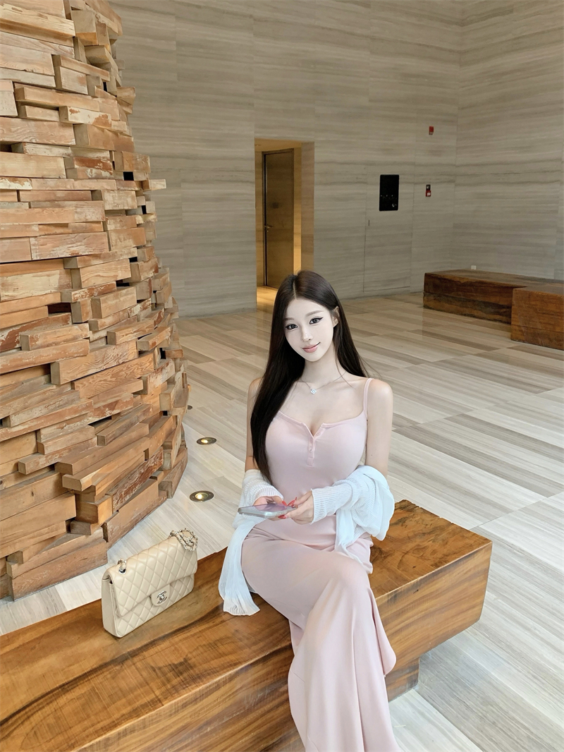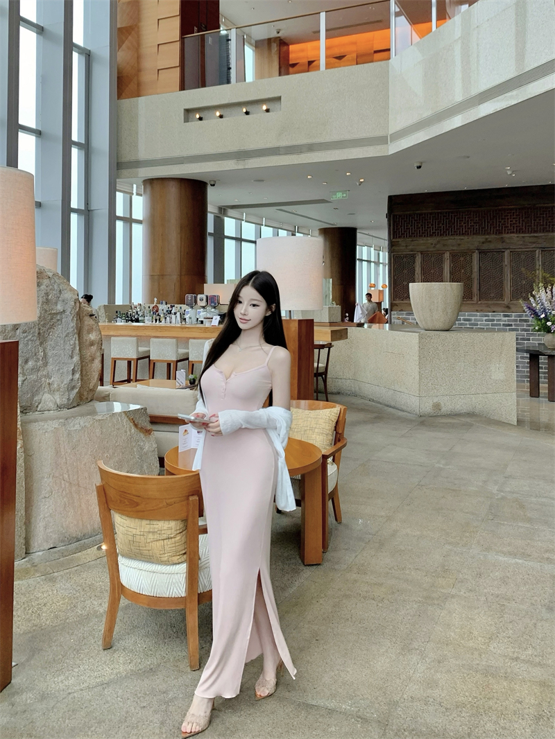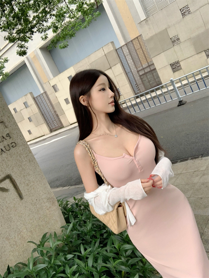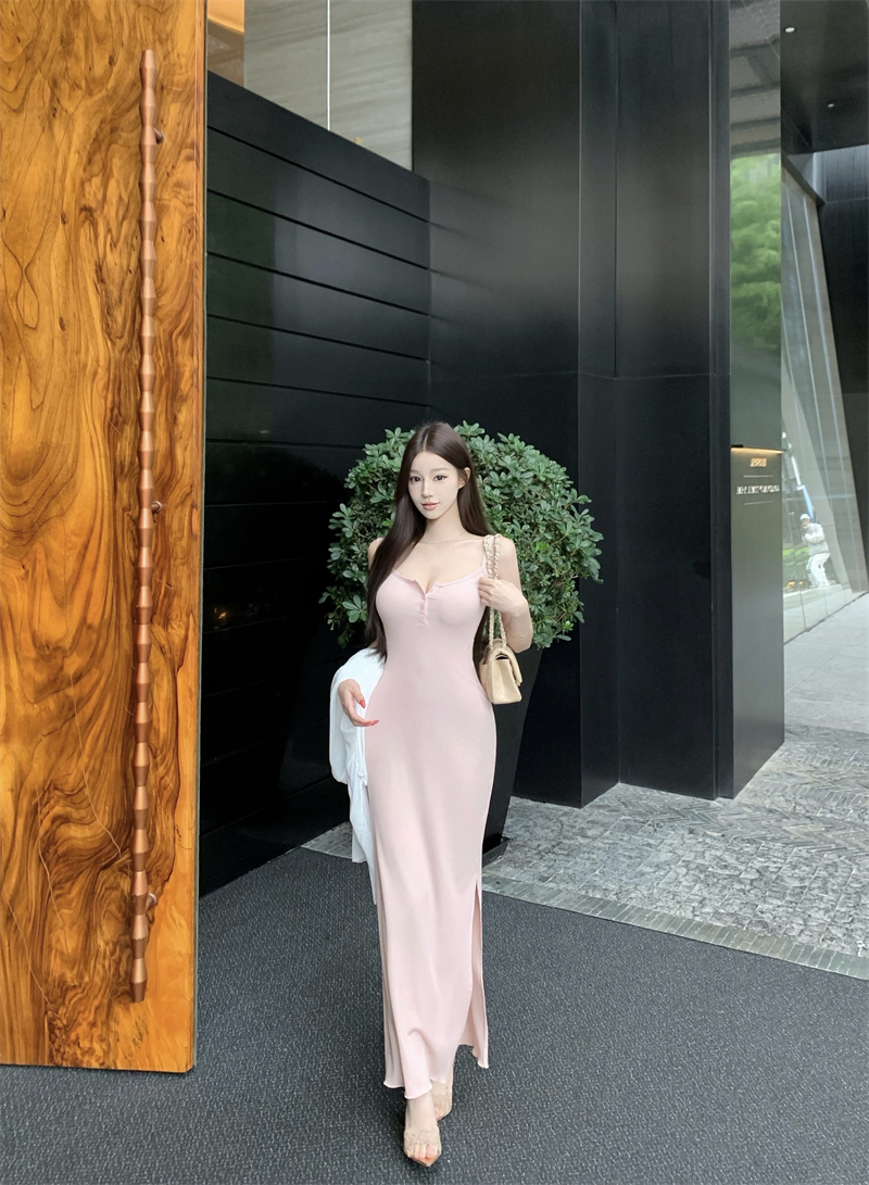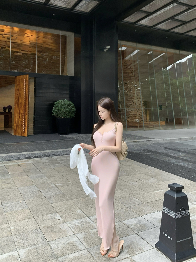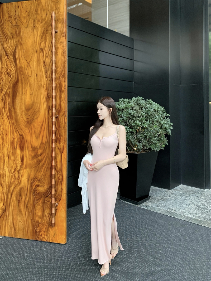 실사 파란색 새틴 튜브탑 드레스 여름 품격 순수한 욕망 허리 수축 치마