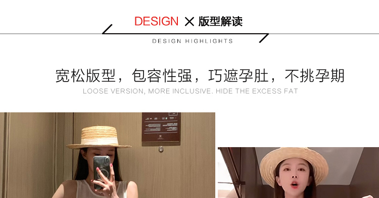 임산부 빅 사이즈 한국 스타일 얇은 스타일 민소매 조끼 이후 밴딩 반신 치마 세트