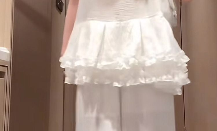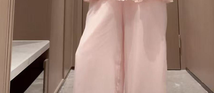 빅 사이즈 지방 mm 비스듬한 어깨 허리 수축 짧은 맨위 불규칙 부츠컷 바지 품격 슬림해 보이는 방귀 커튼 표지 고기 투피스 세트