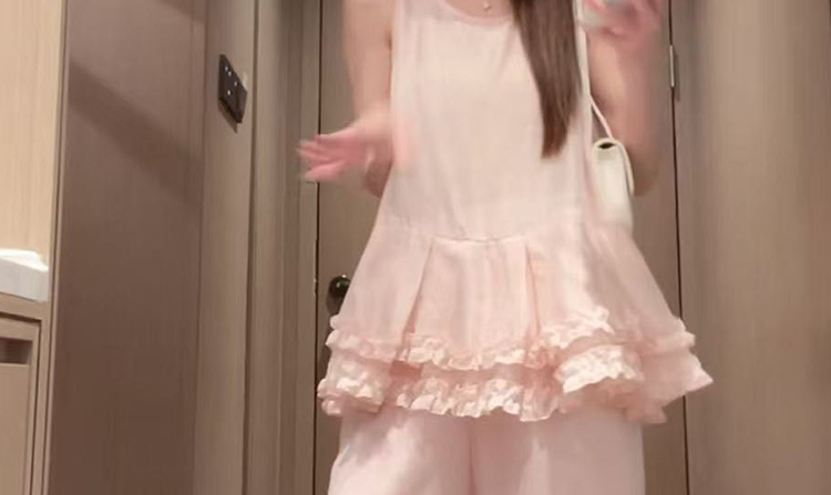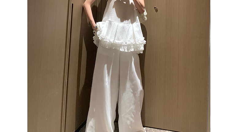 지금 임산부 프릴 민소매 셔츠 조끼 베스트 맨위 코디 캐주얼 와이드 레그 팬츠 두 조각 여성 세트