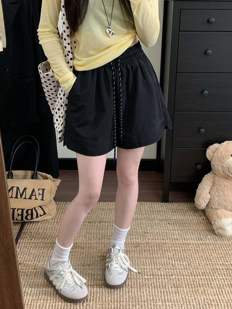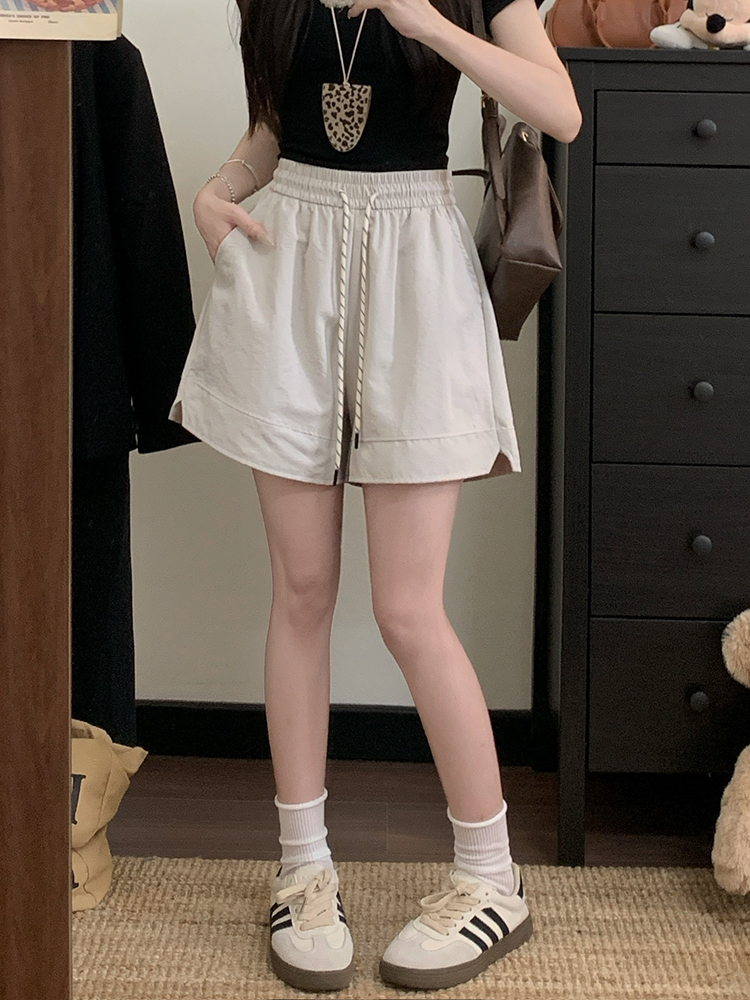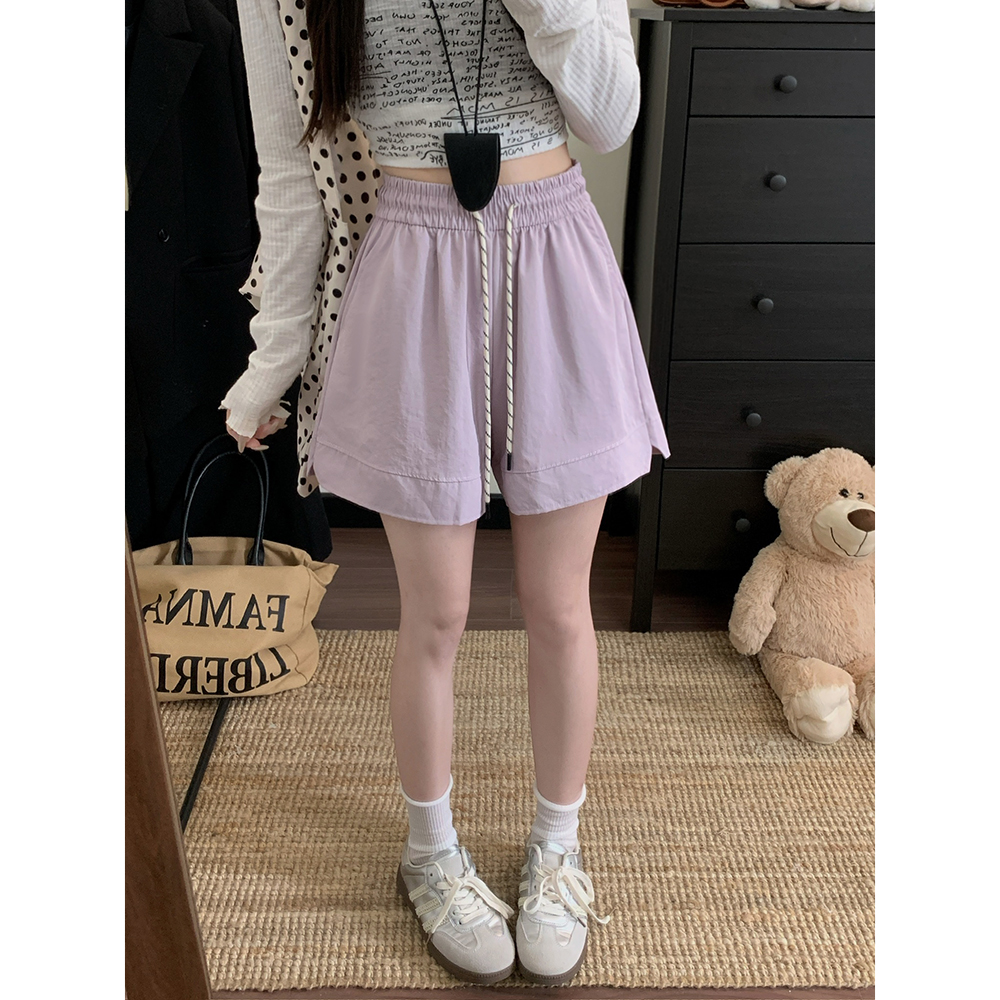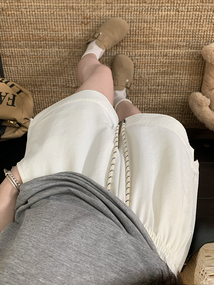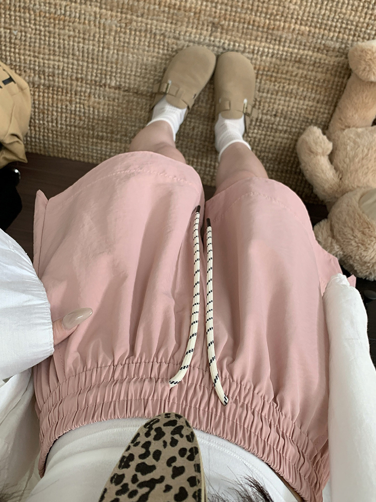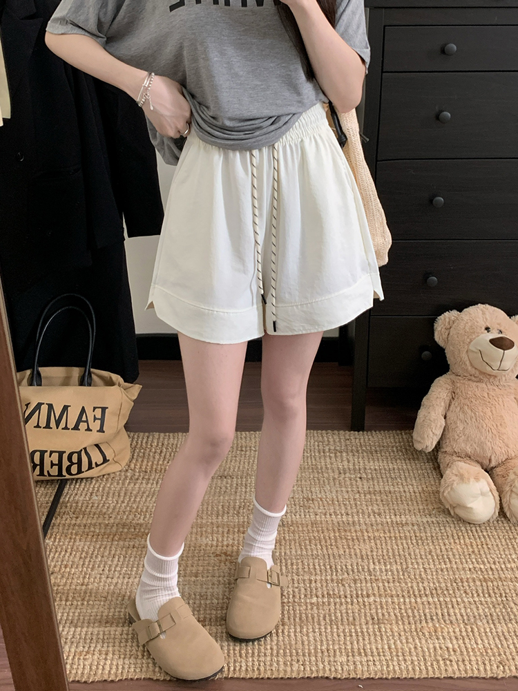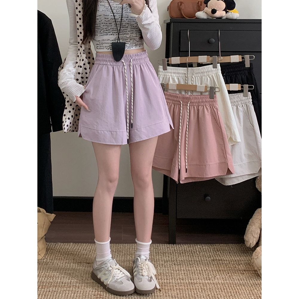 실사 2026 여름 새로운 허리밴드 펌프 로프 반바지 슬림해 보이는 와이드 레그 팬츠 단색 캐주얼 바지 여성