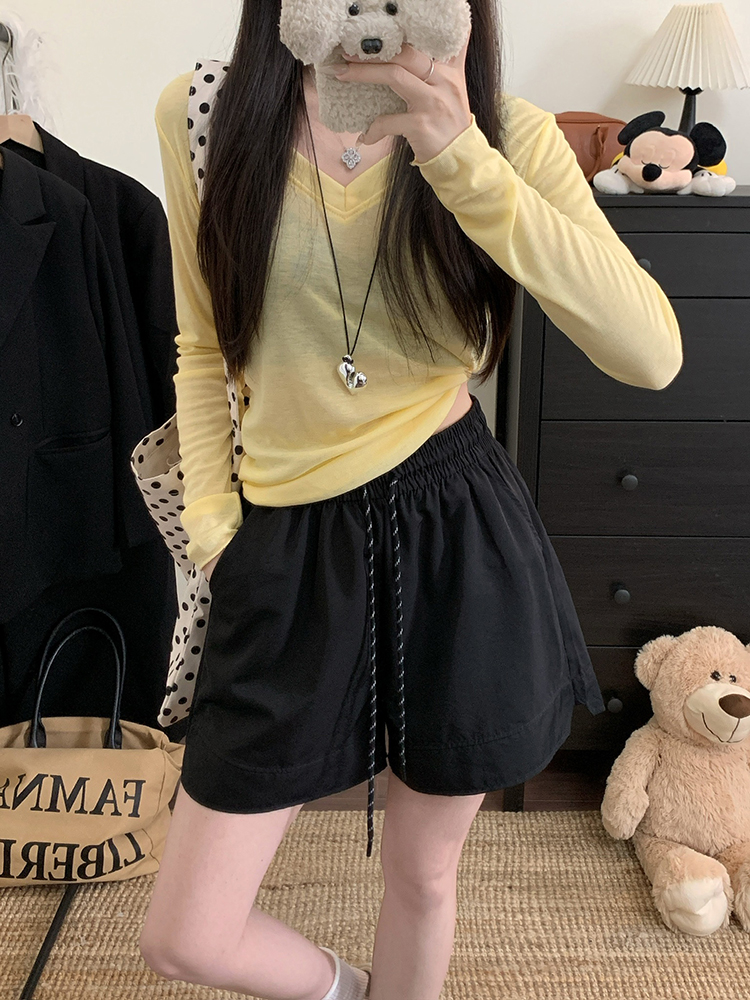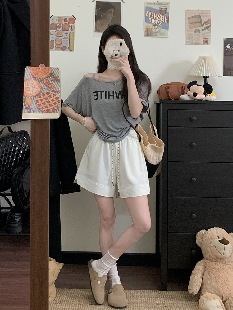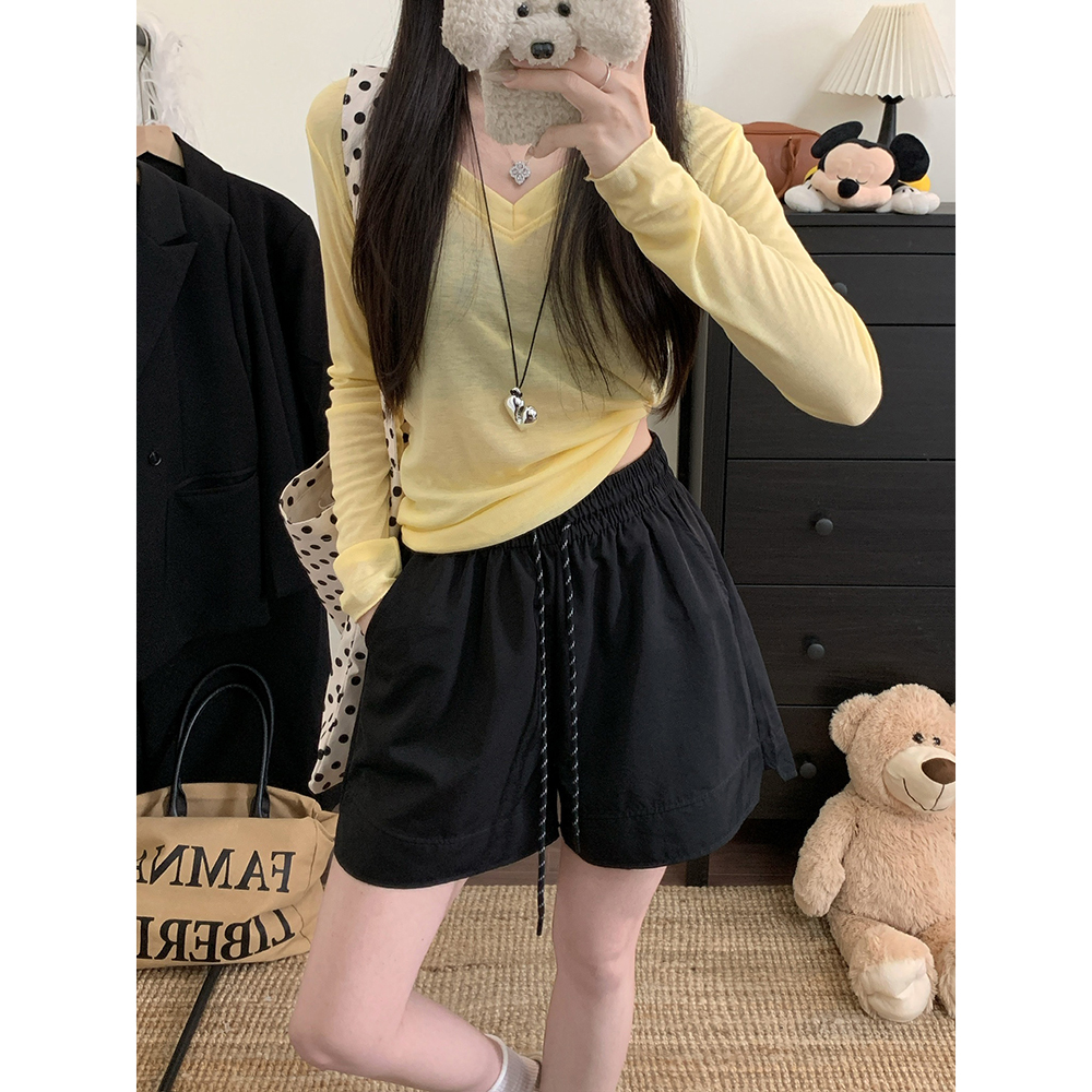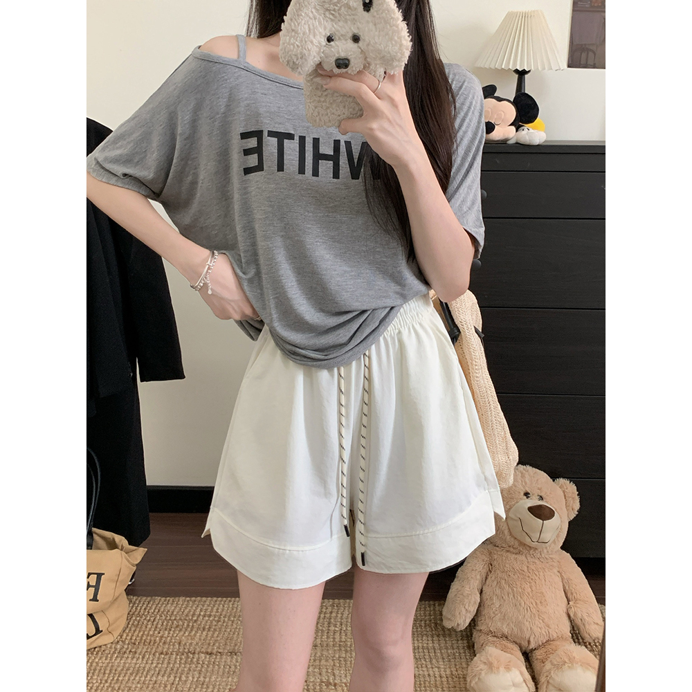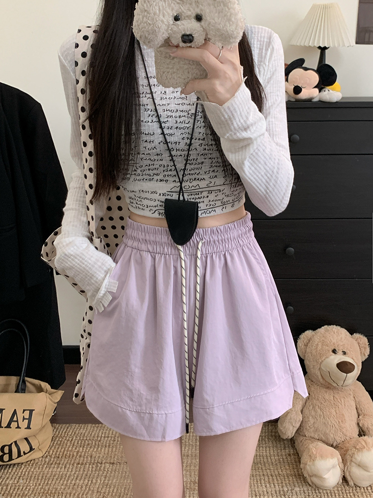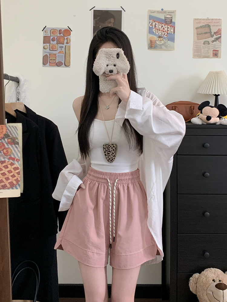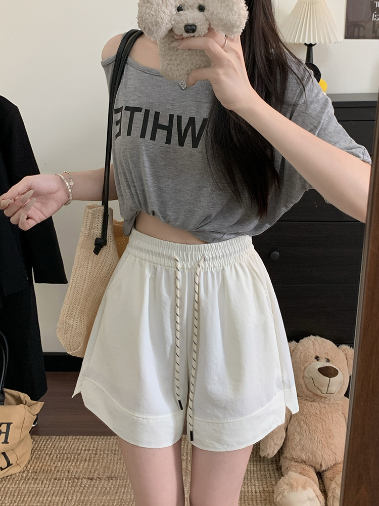 실사 2026 여름 새로운 허리밴드 펌프 로프 반바지 슬림해 보이는 와이드 레그 팬츠 단색 캐주얼 바지 여성