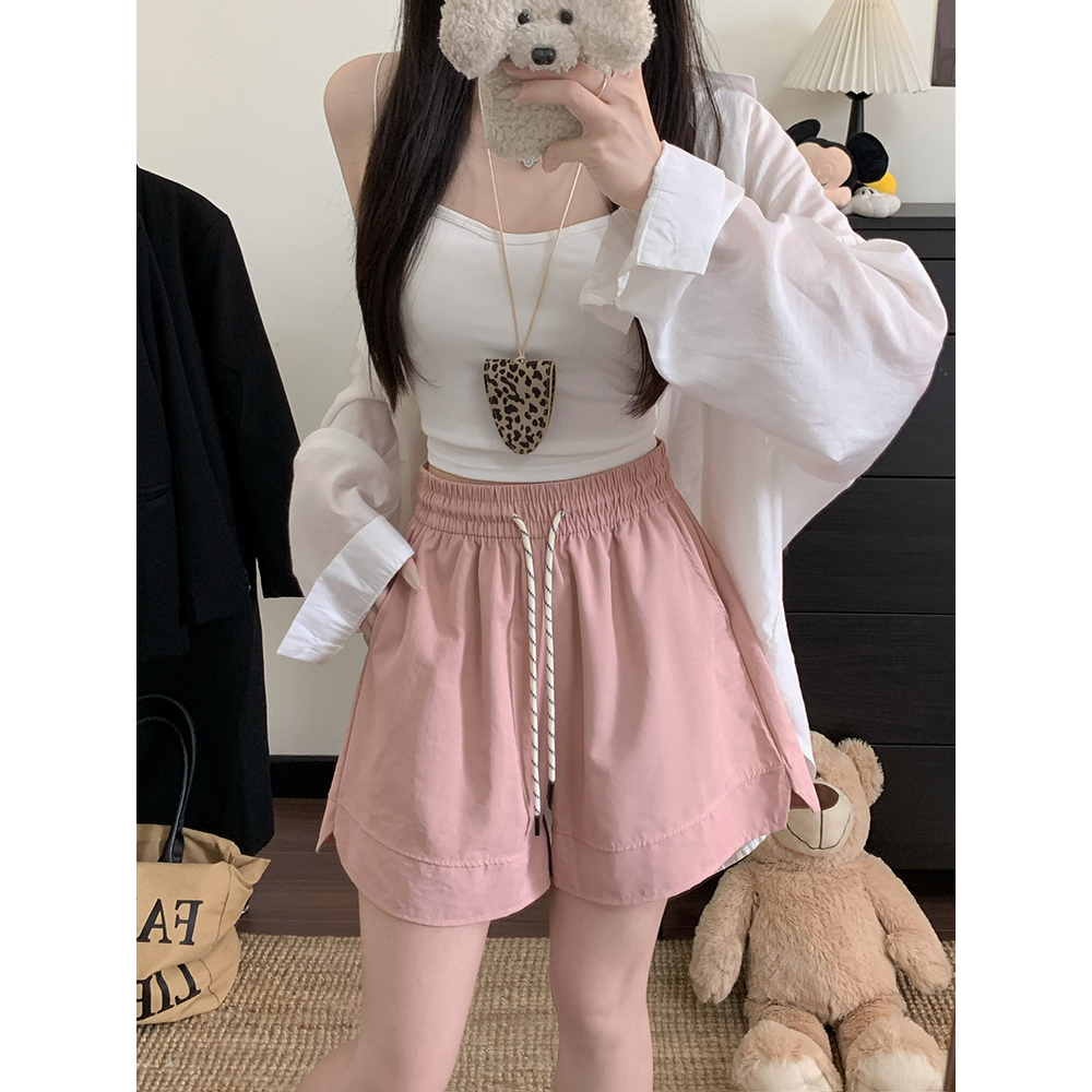 실사 2026 여름 새로운 속도 건조한 바지 허리밴드 루즈핏 다용도 조거 조정 바지 여성
