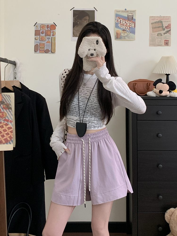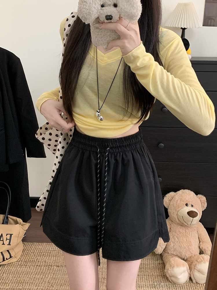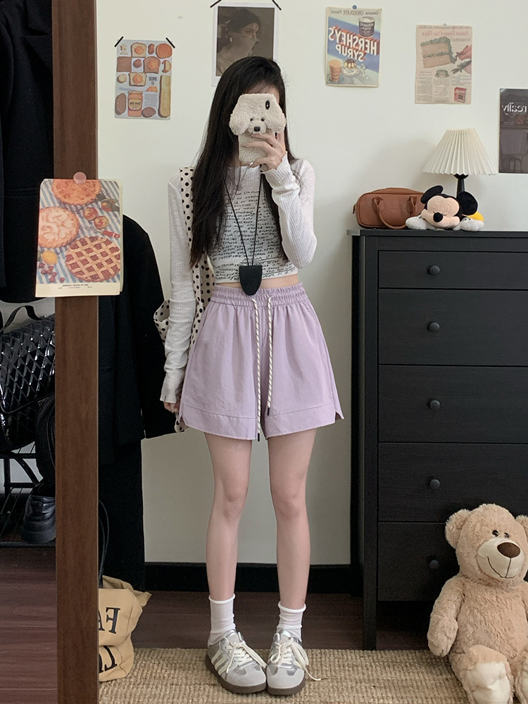 실사 2026 새로운 허리밴드 펌프 로프 반바지 슬림해 보이는 와이드 레그 팬츠 단색 캐주얼 바지 여성