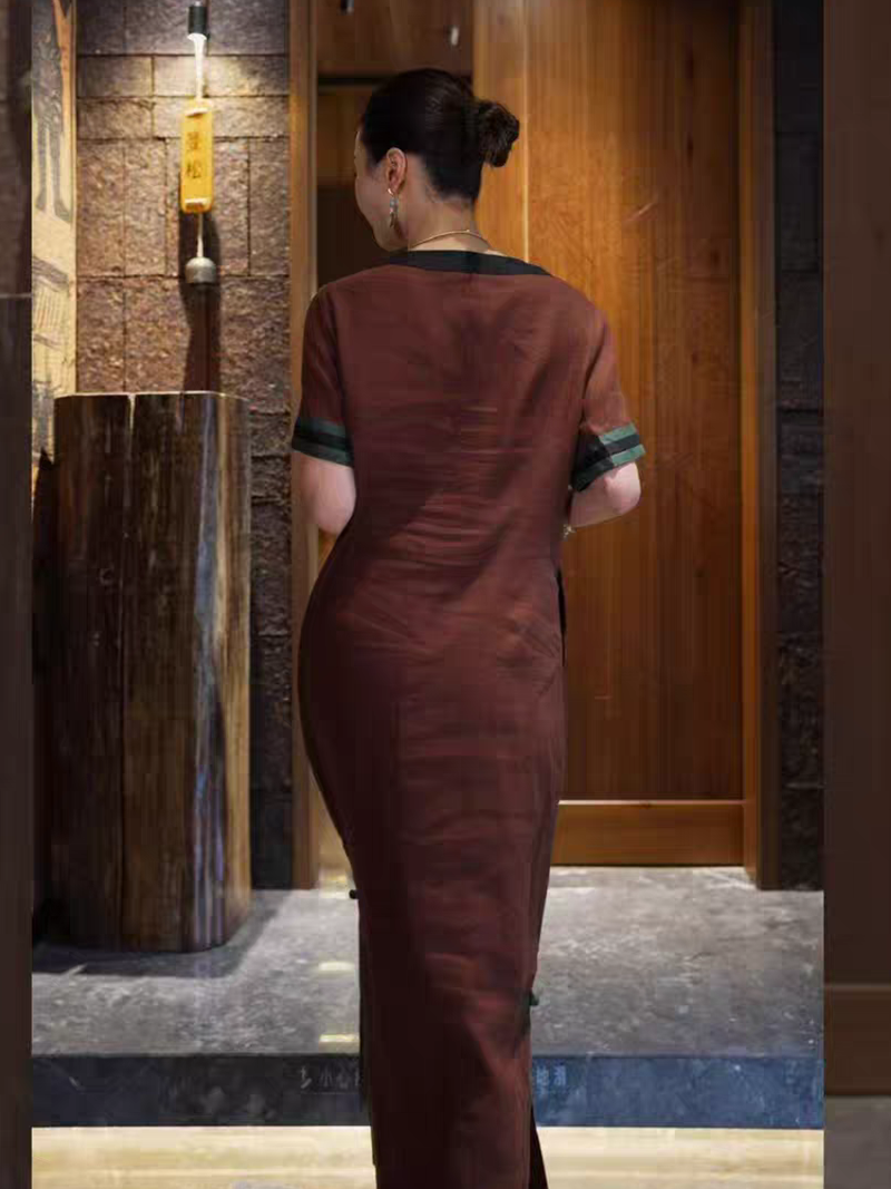 여름 요금 품격 슬림해 보이는 면 린넨 중국풍 개선 치파오 2026 여름 새로운 루즈핏 중간 길이 드레스