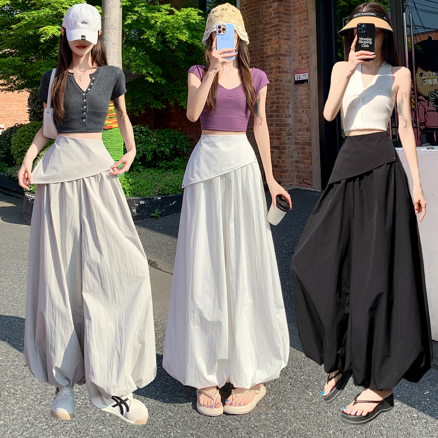 실사 2026 여름 새로운 속도 건조한 꽃밭 바지 하이웨이스트 루즈핏 도루 센스 느긋한 9 포인트 랜턴 와이드 레그 팬츠 치마 여성