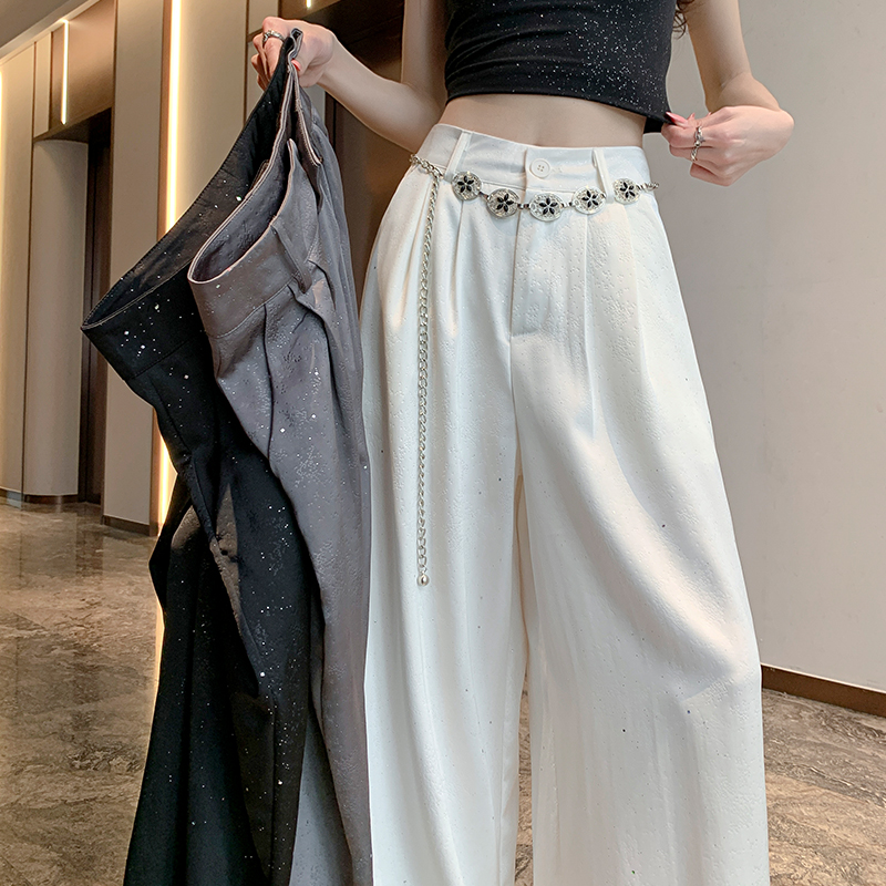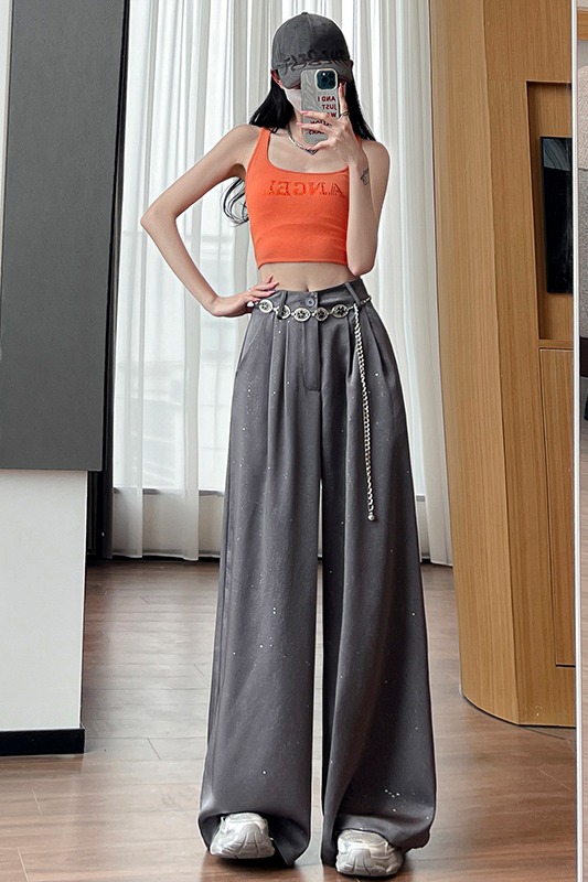 실사 2026 여름 새로운 핫픽스 정장 와이드 레그 팬츠 느긋한 하이웨이스트 도루 센스 캐주얼 스트레이트 바닥 청소 긴 바지 여성