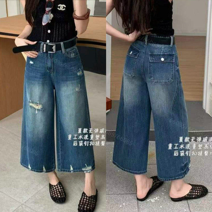 트렌디 공주 66085 찢어진 부분 7 점 와이드 레그 팬츠 2026 여름 새로운 패션 트렌디 다용도 루즈핏 슬림해 보이는 청바지