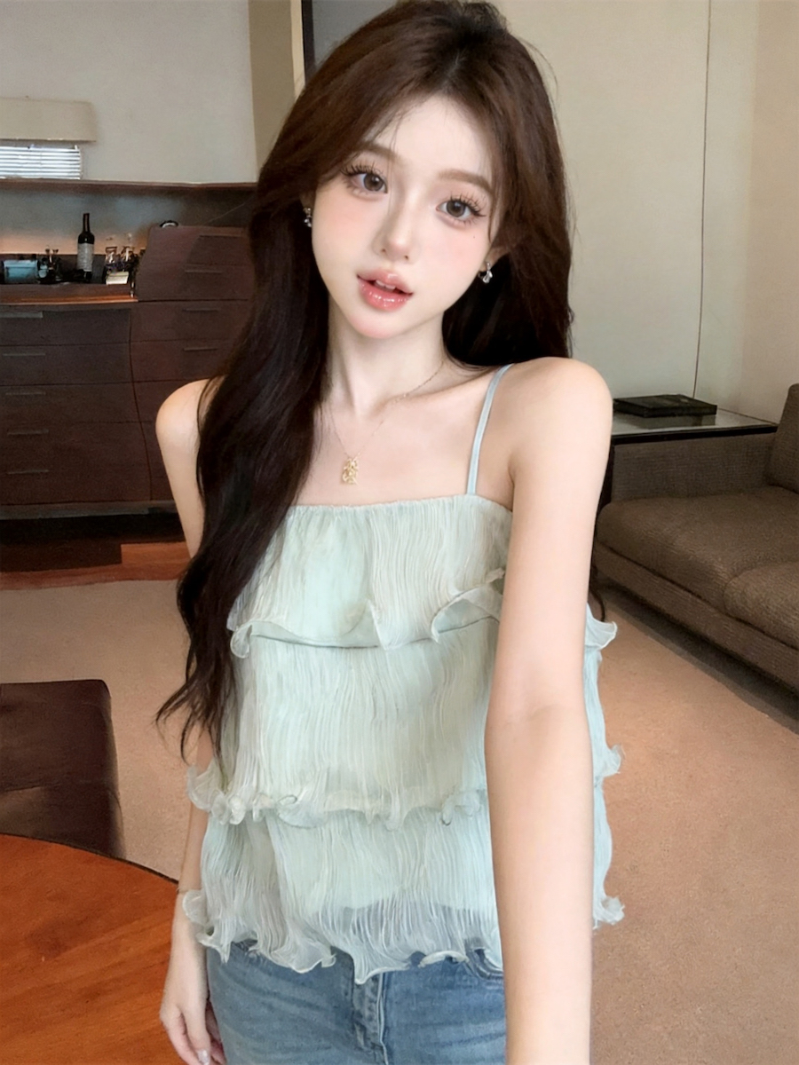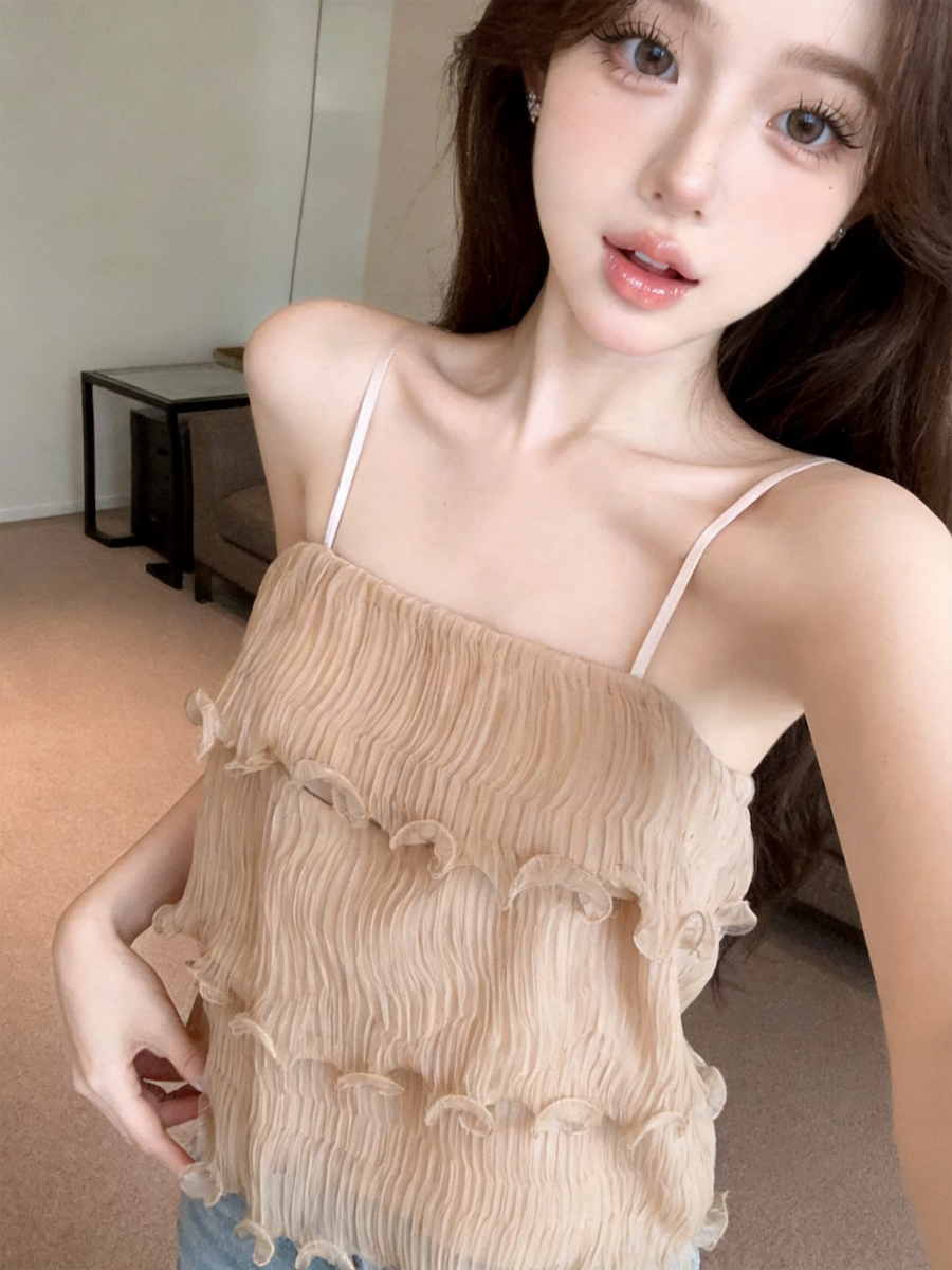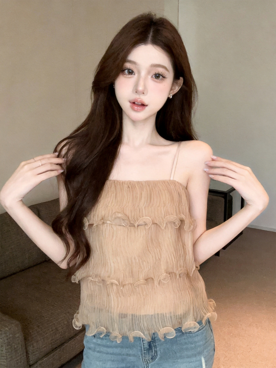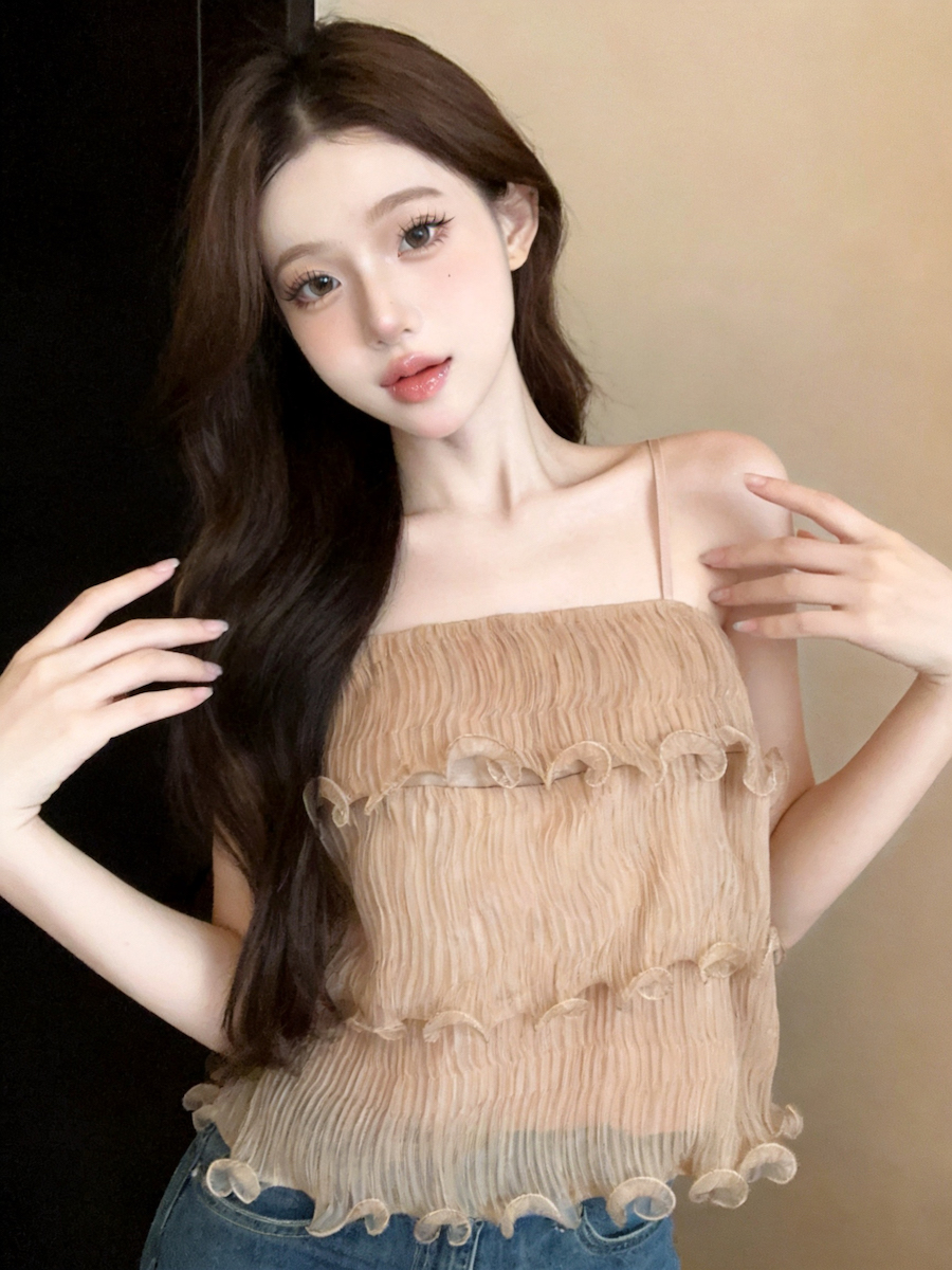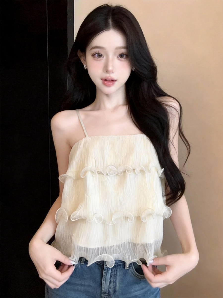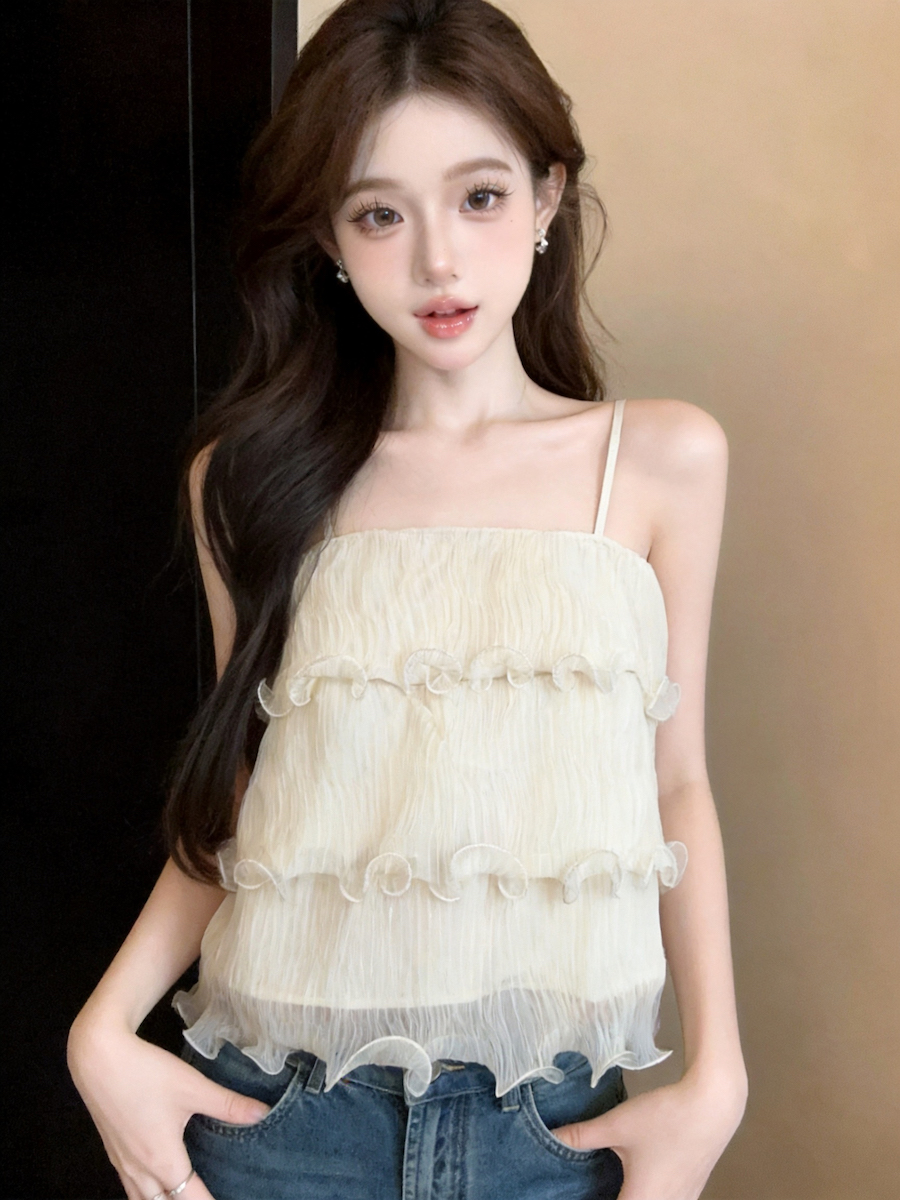 정가 있음 보호 분위기 센스 향기로운 향 부드러운 층 프릴 슬립 작은 셔츠 여성 여름 얇은