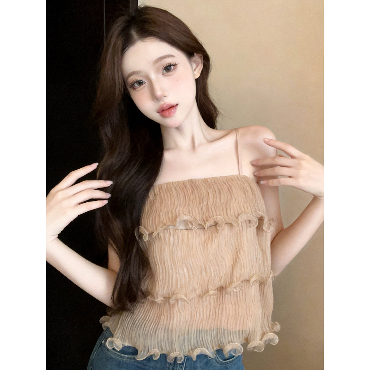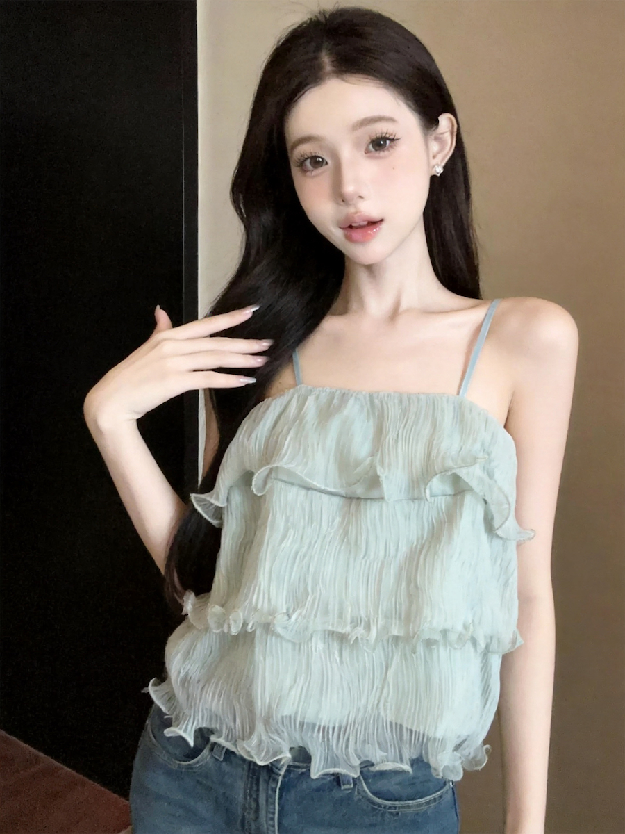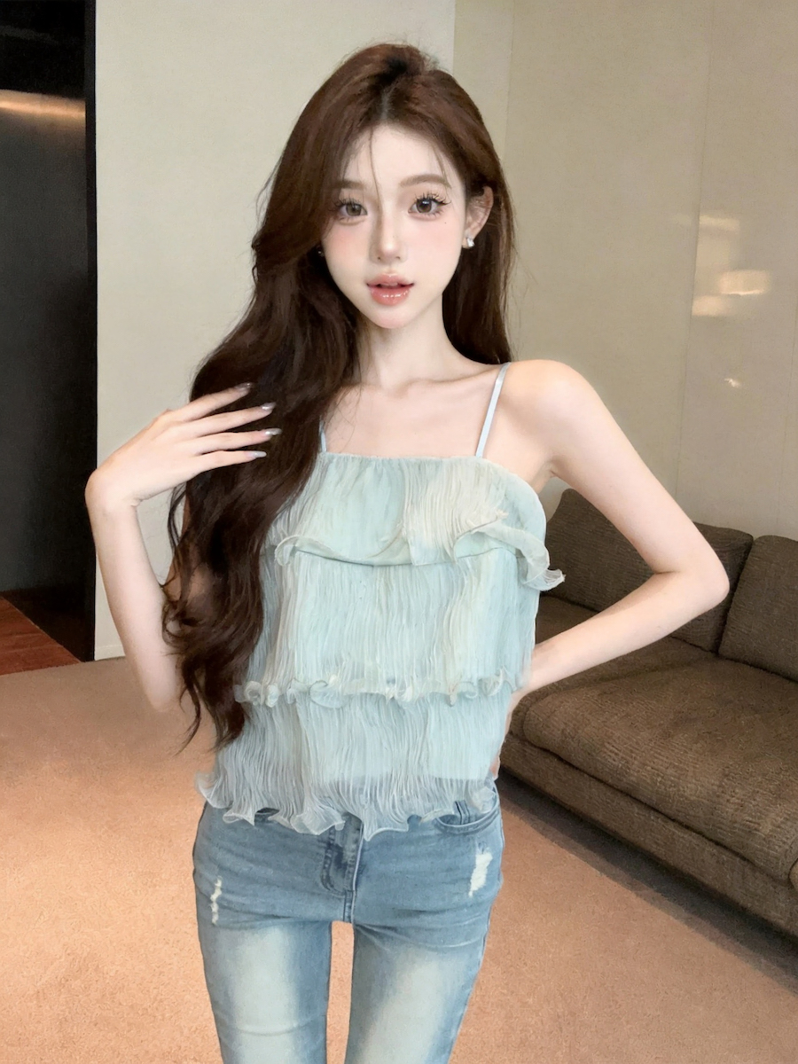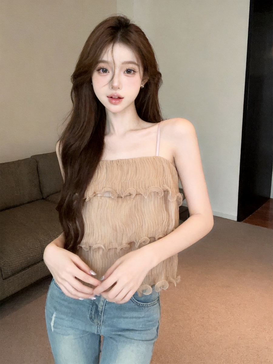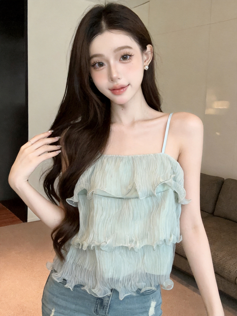 정가 있음 보호 분위기 센스 향기로운 향 부드러운 층 프릴 슬립 작은 셔츠 여성 여름 얇은