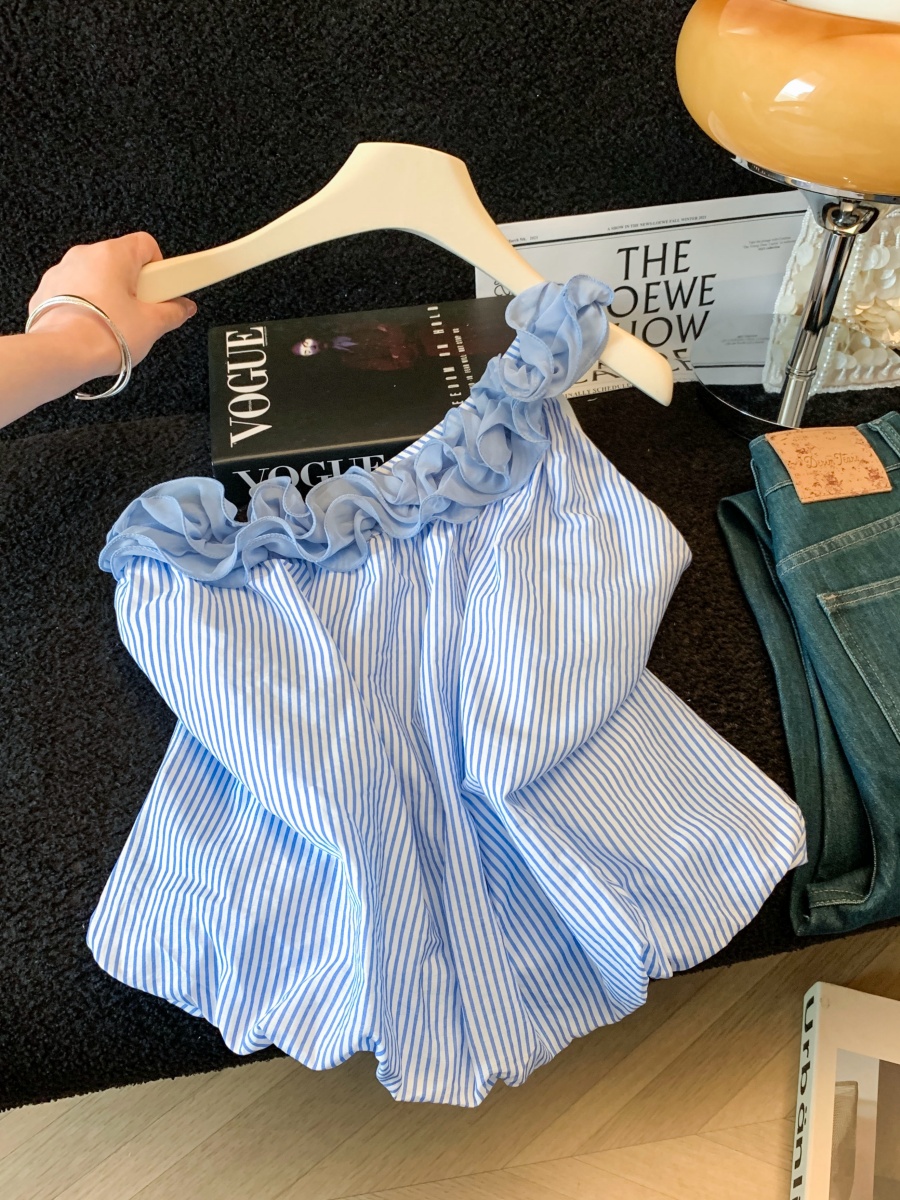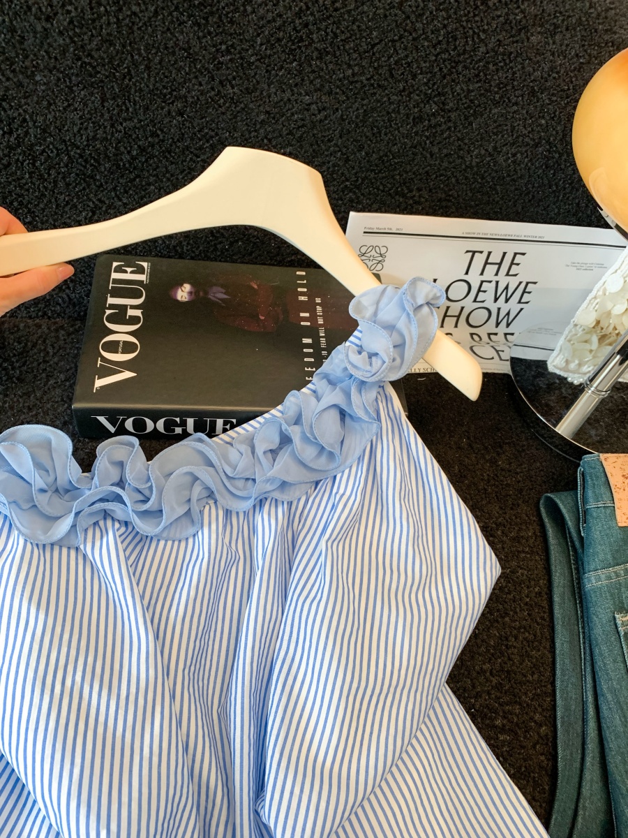 실사 비스듬한 어깨 민소매 외국 가스 여성 셔츠 여름 ootd 착용 가져 가라. 새로운 셔츠 Chic 그레이트 봐. 의류 트렌디