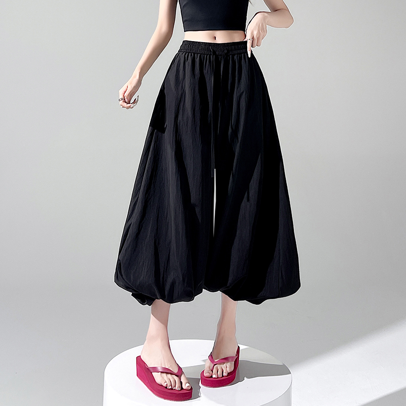 실사 2026 여름 새로운 얼음 실크 면 린넨 랜턴 와이드 레그 팬츠 밴딩 하이웨이스트 루즈핏 9 포인트 캐주얼 바지 여성