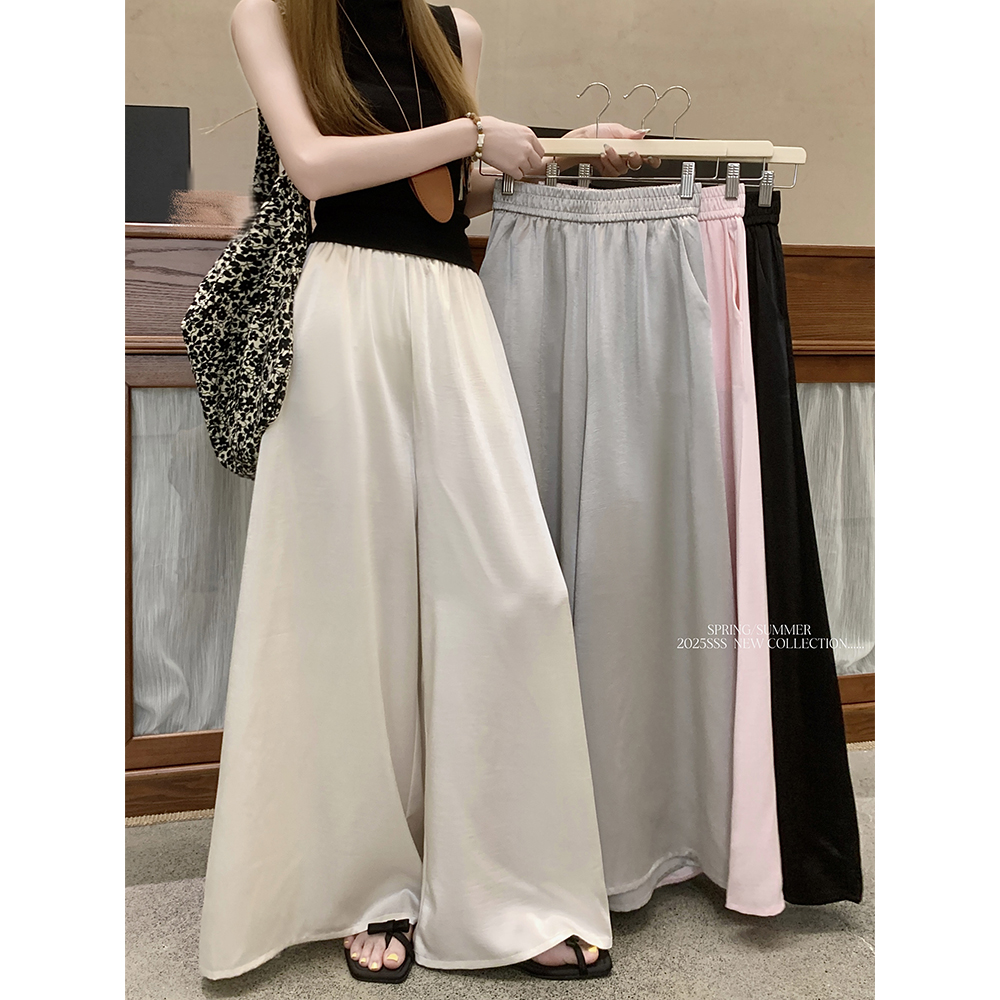 실사 2026 여름 새로운 패션 고급 센스 단색 실크 미끄러짐 새틴 도루 센스 캐주얼 넓은 다리 캐주얼 여성