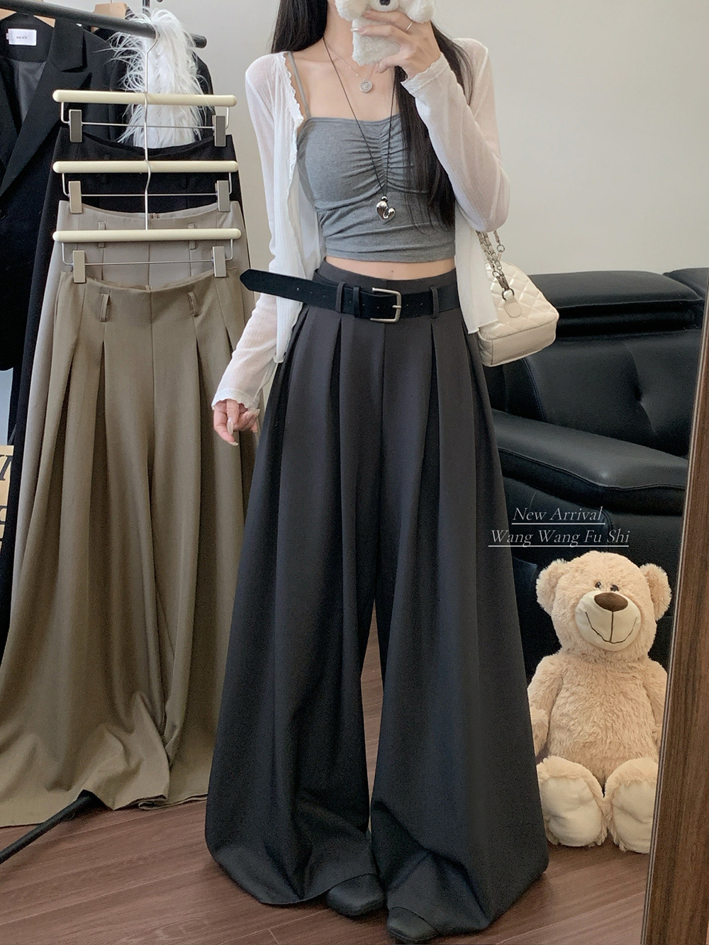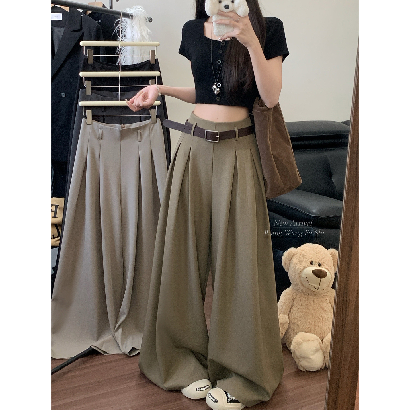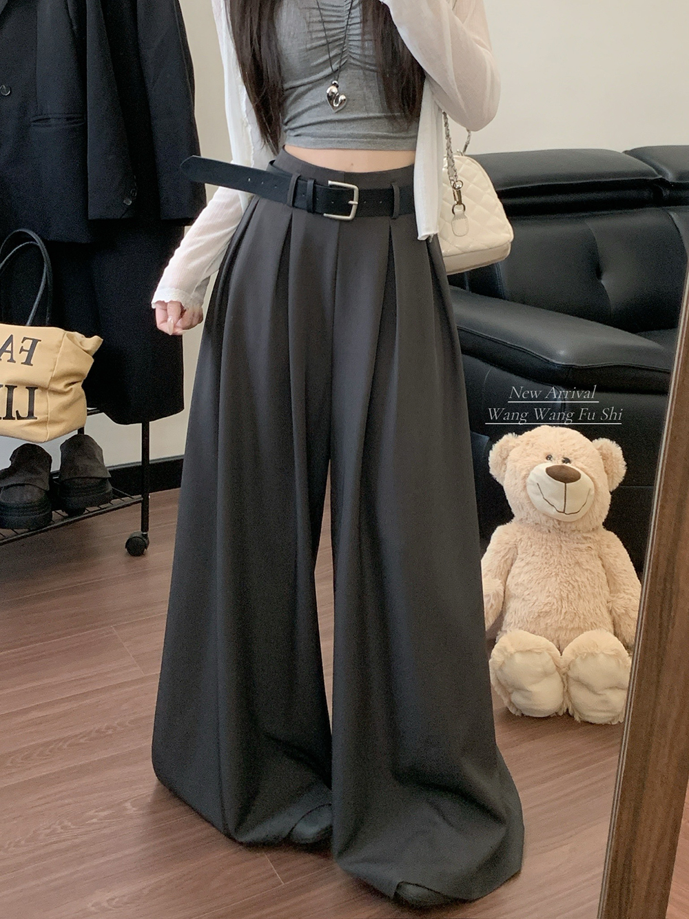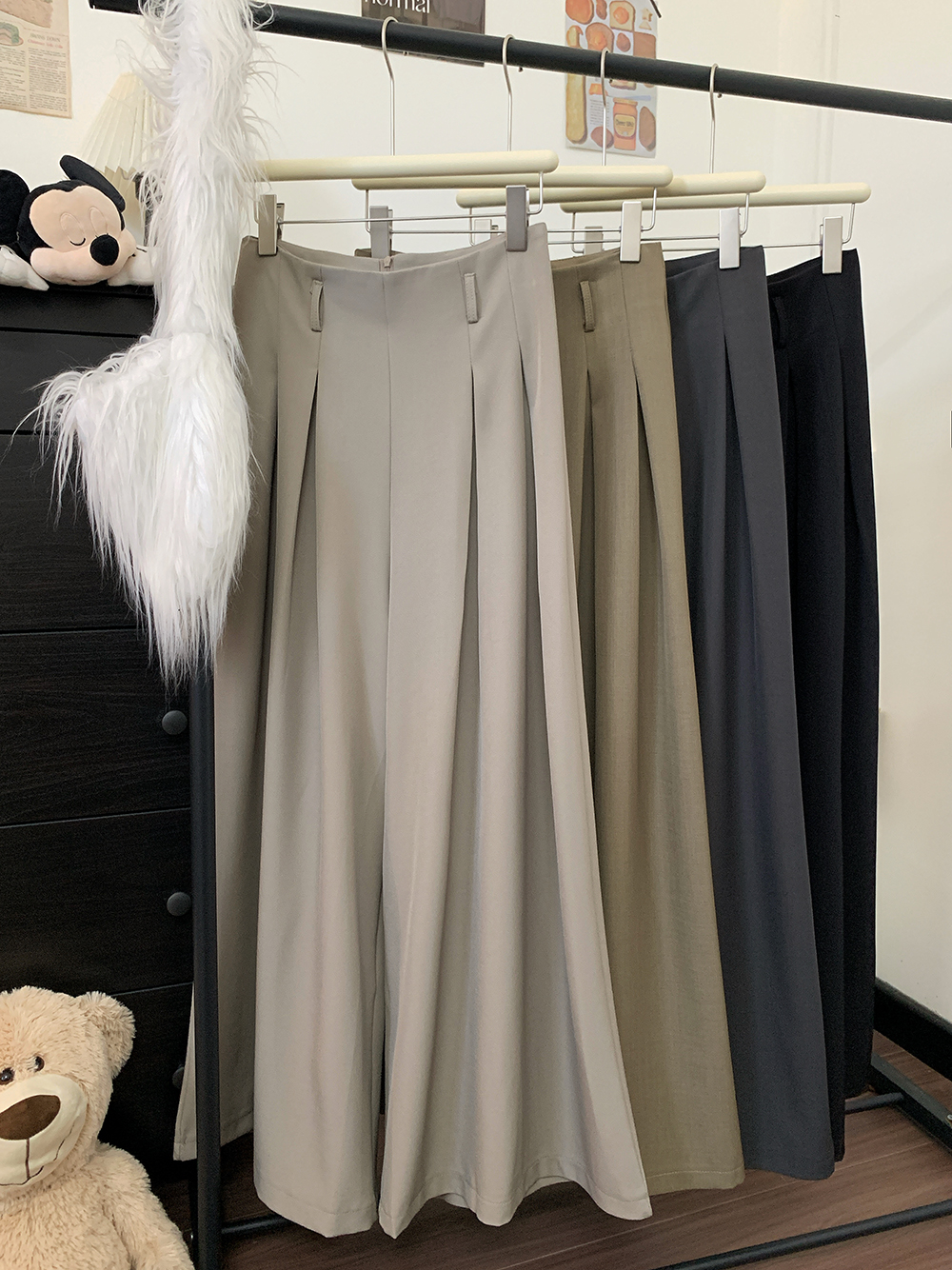 실사 2026 루즈핏 디자인 센스 정장 바지 캐주얼 바지 여성 와이드 레그 팬츠 하이웨이스트 도루 센스 바닥 청소 바지