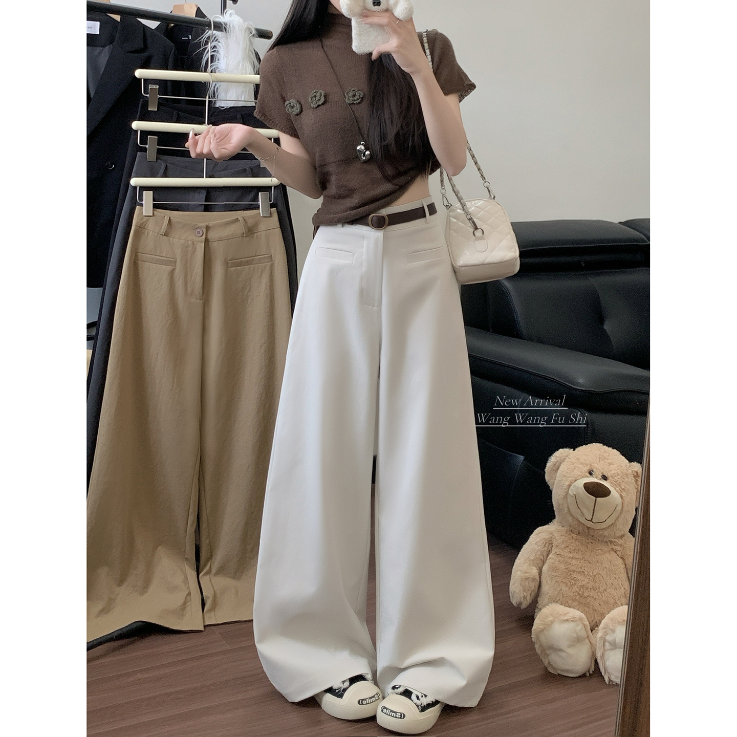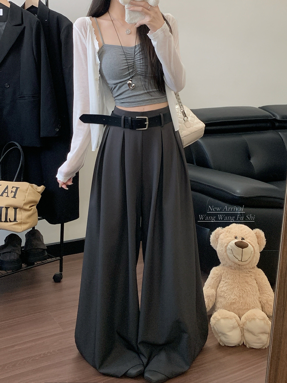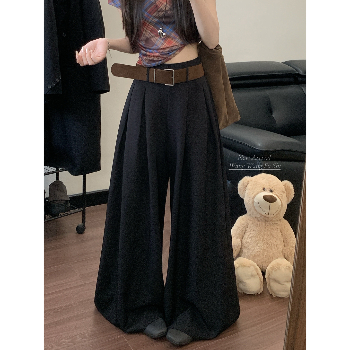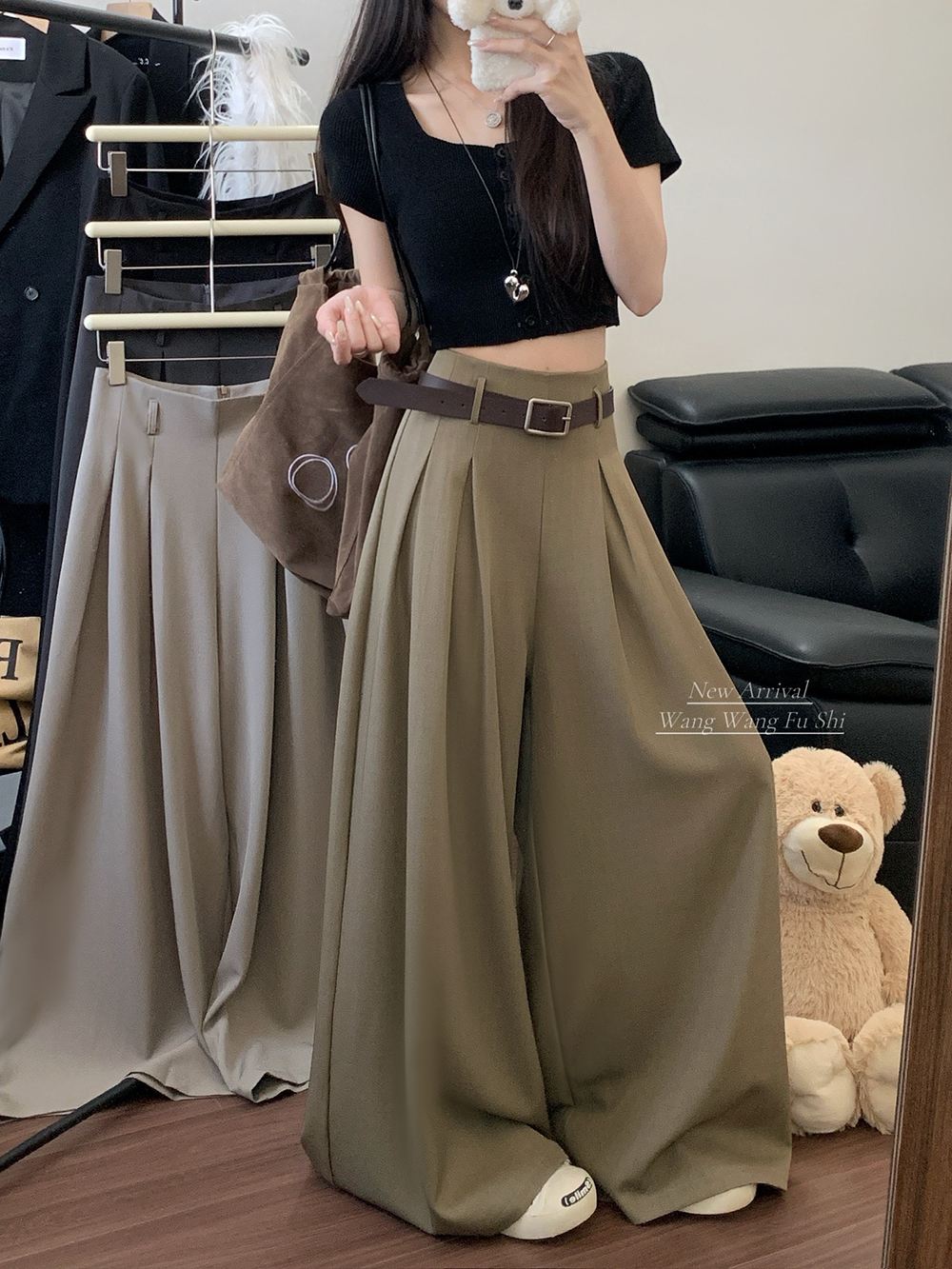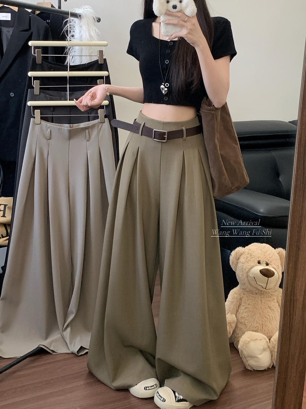 실사 2026 루즈핏 디자인 센스 정장 바지 캐주얼 바지 여성 와이드 레그 팬츠 하이웨이스트 도루 센스 바닥 청소 바지