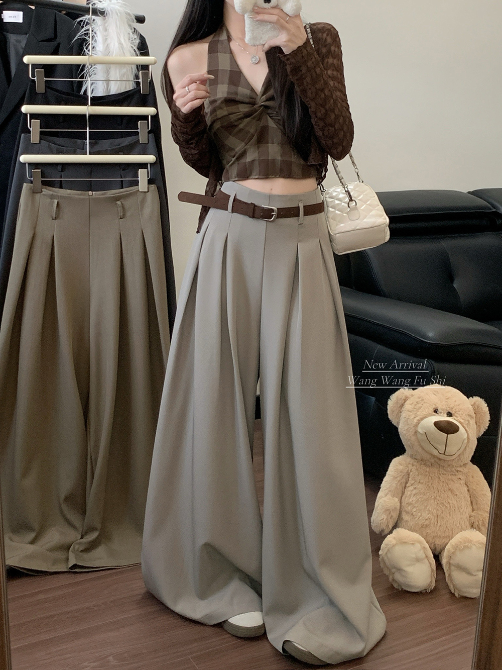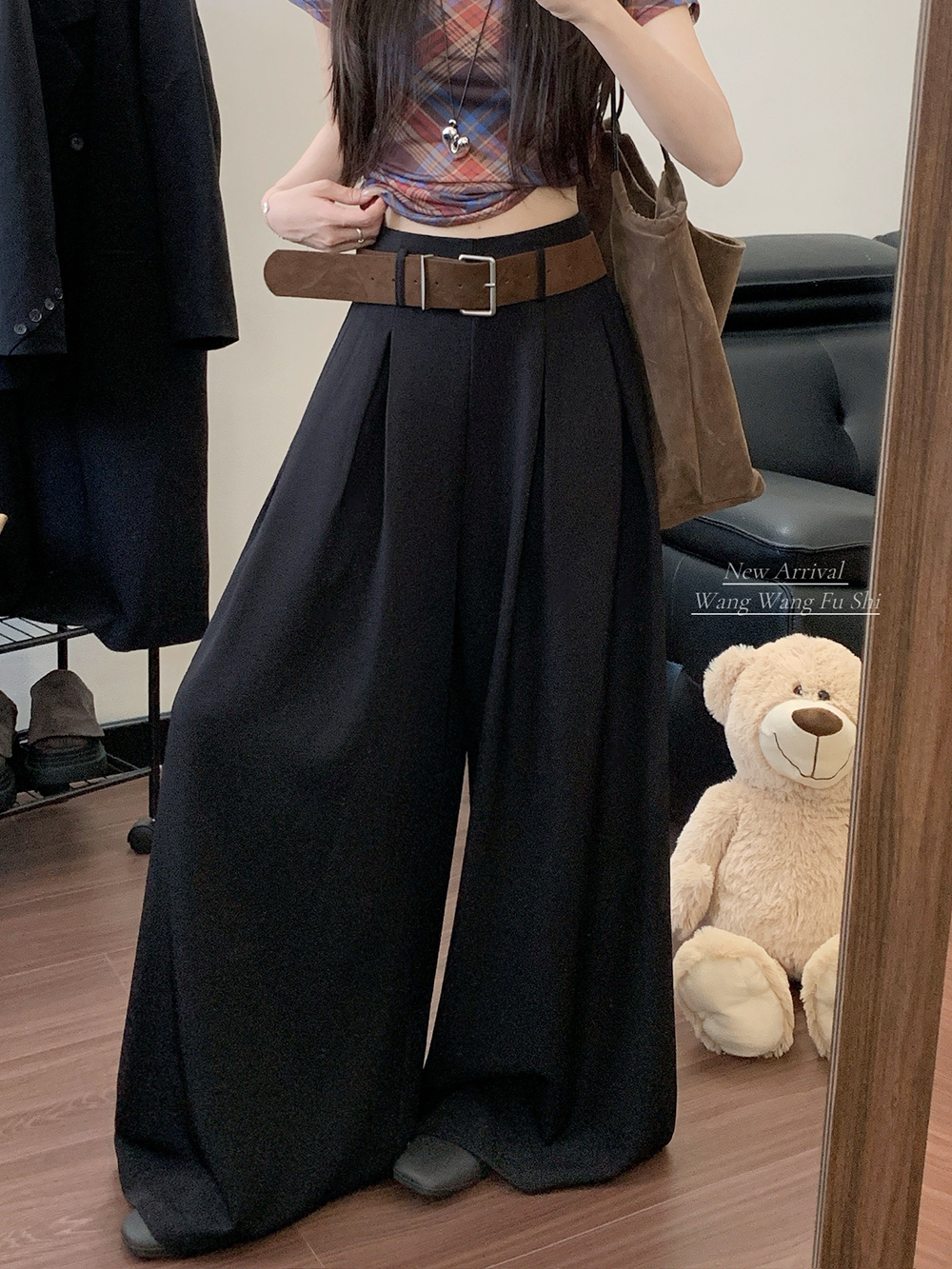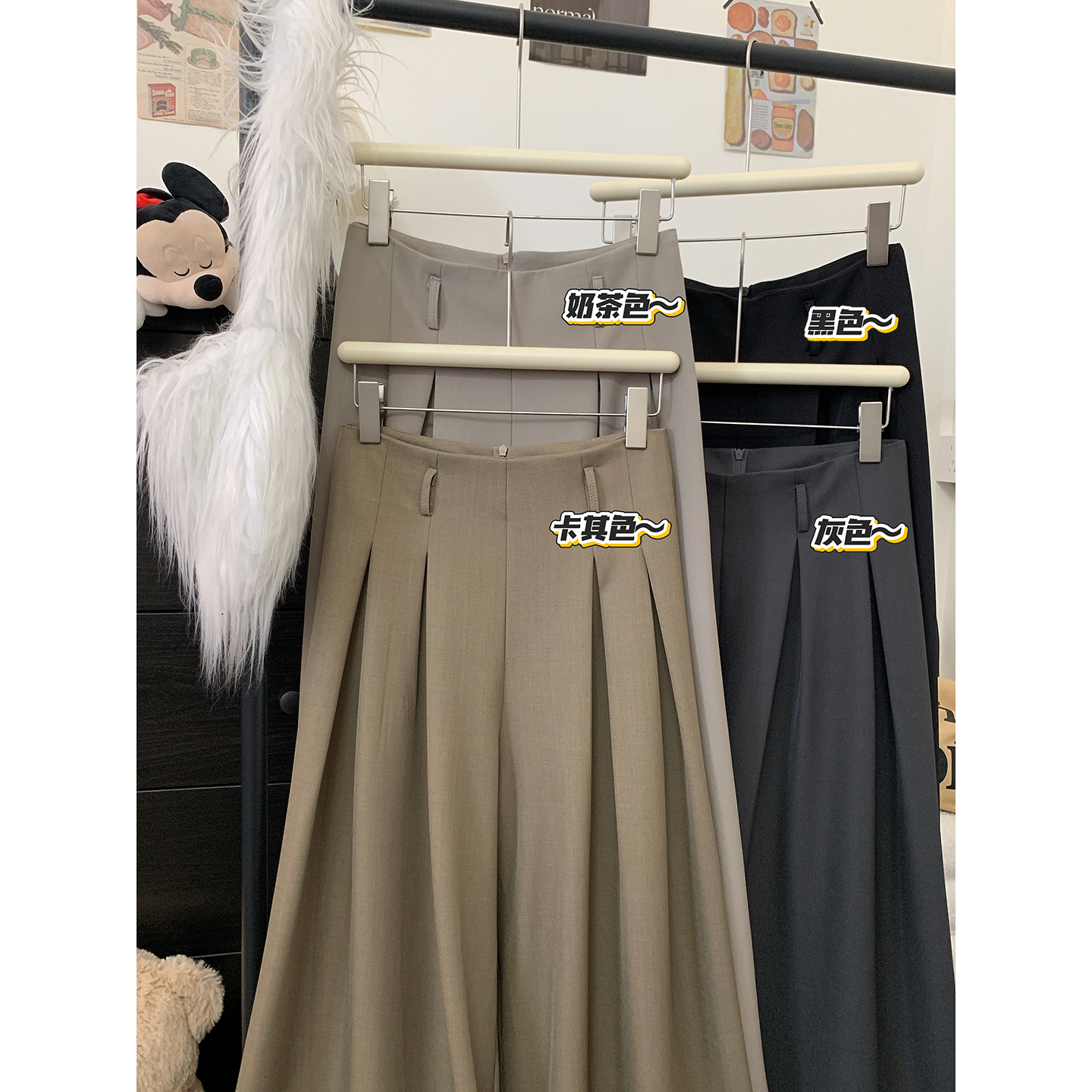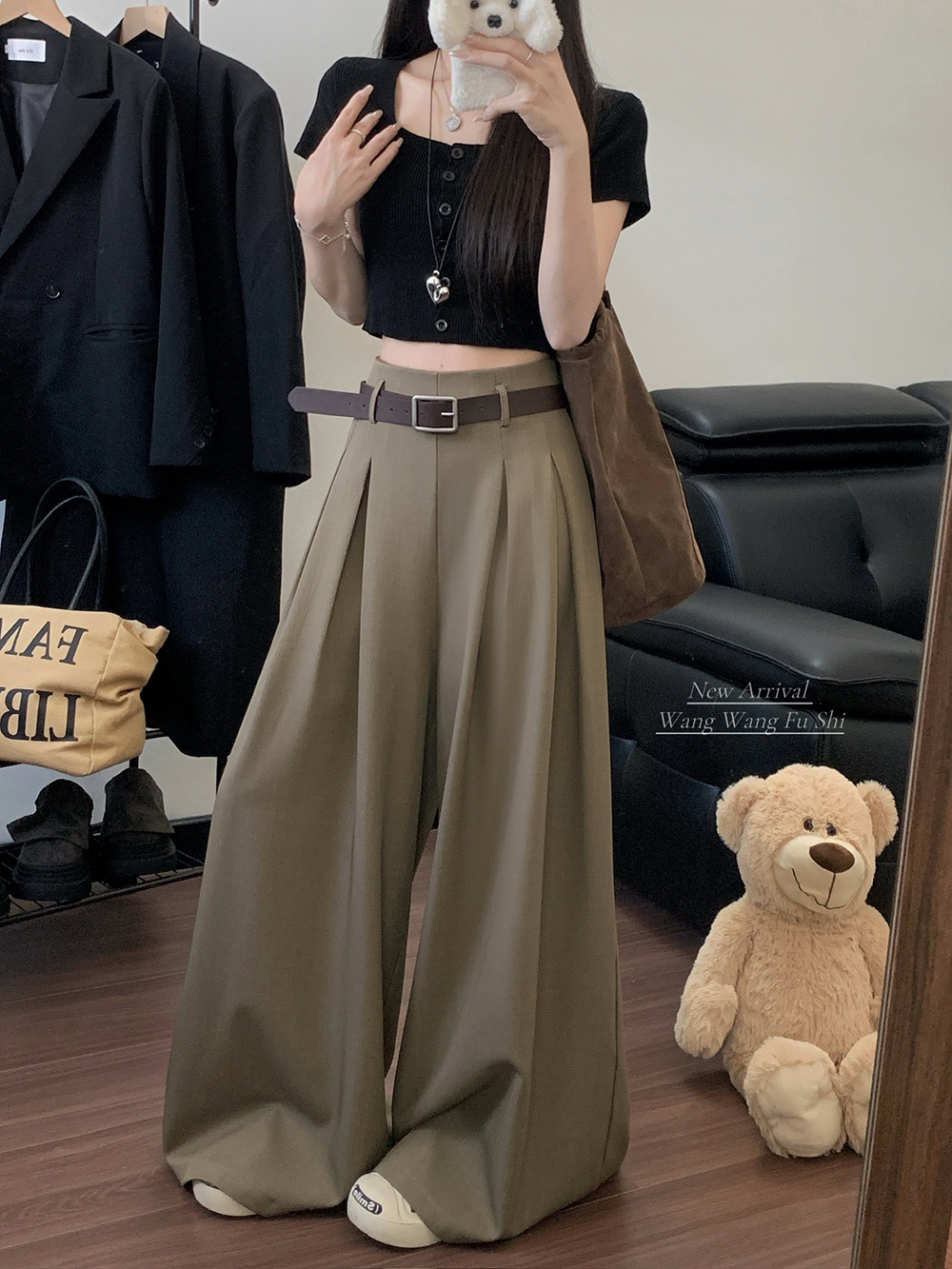 실사 2026 루즈핏 디자인 센스 정장 바지 캐주얼 바지 여성 와이드 레그 팬츠 하이웨이스트 도루 센스 바닥 청소 바지