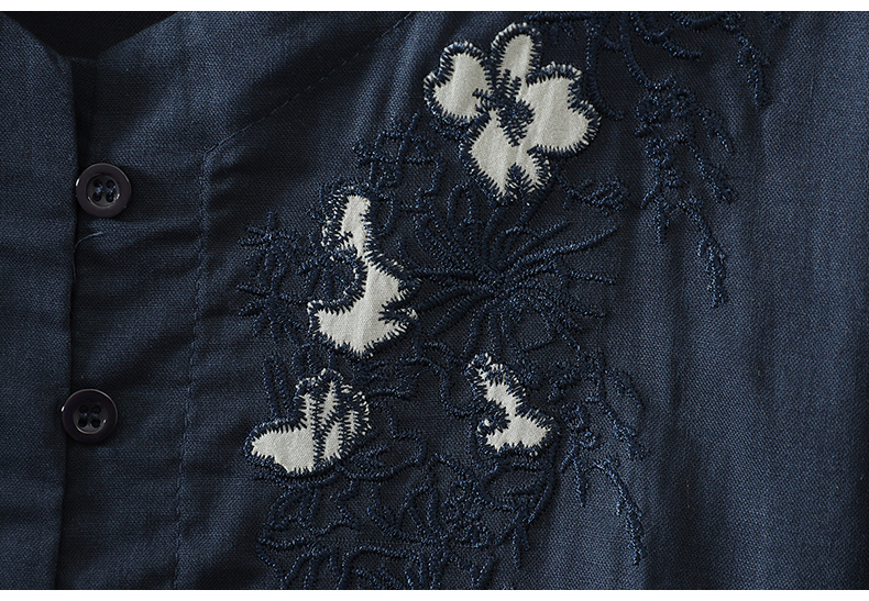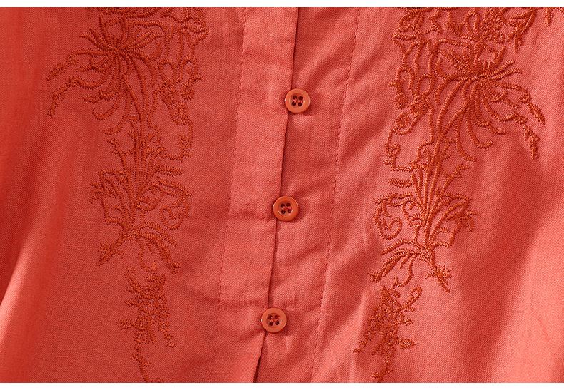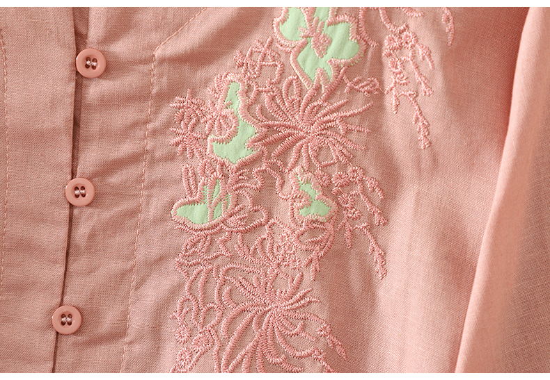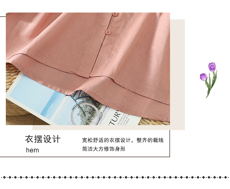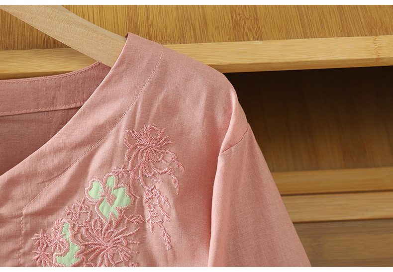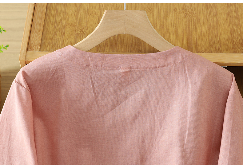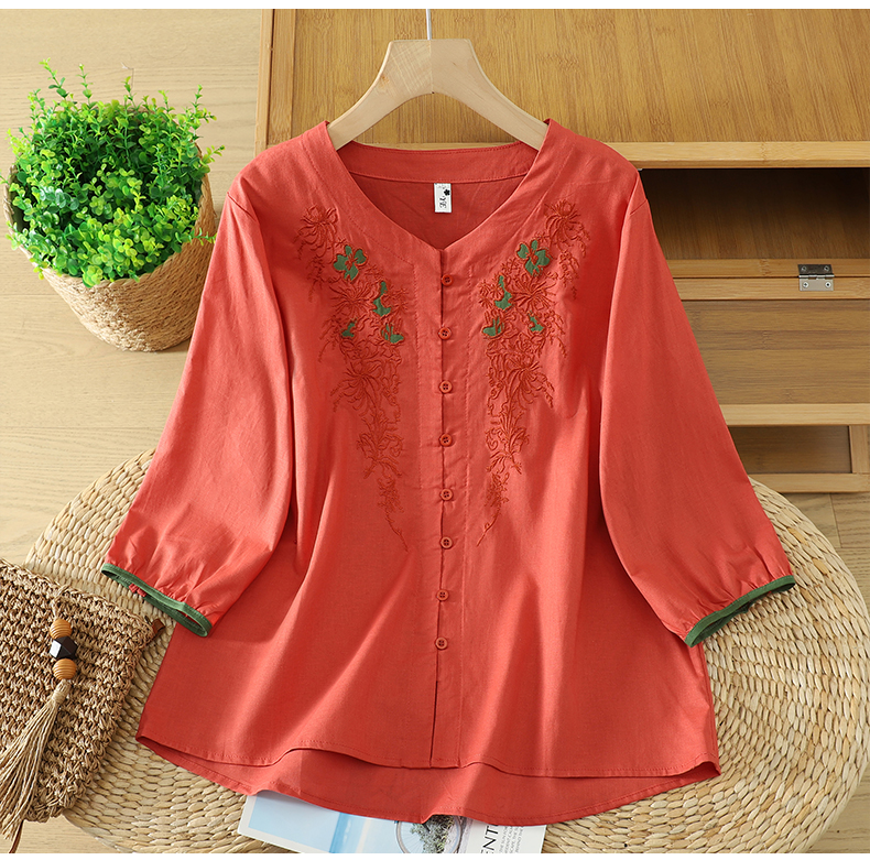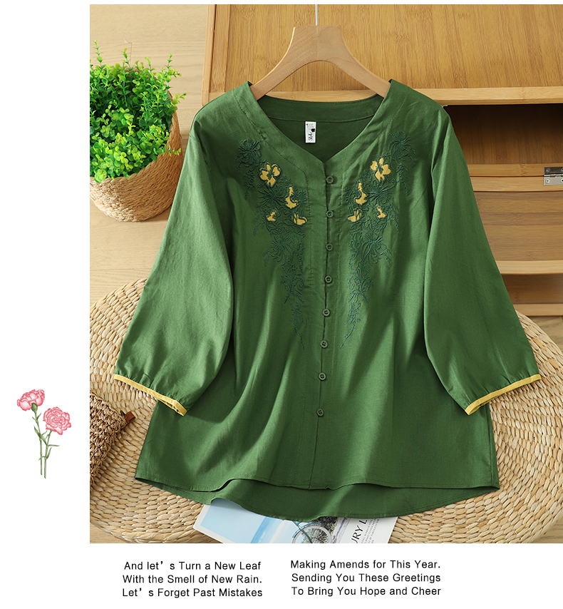 실사 5 점 소매 한국 스타일 빅 사이즈 표지 고기 슬림해 보이는 레트로 자수 외국 가스 세련된 면 린넨 셔츠 2026 새로운 여성