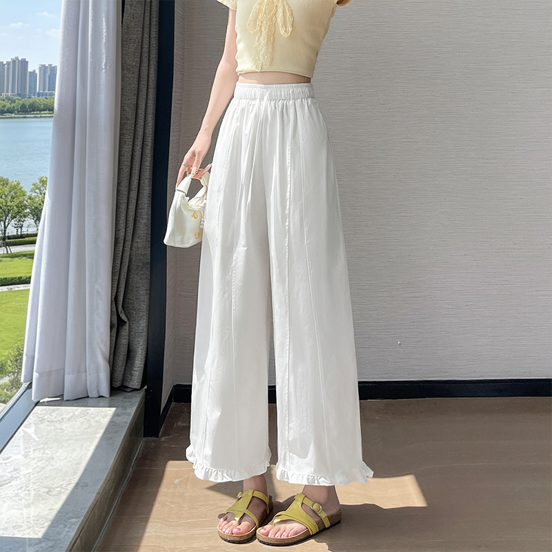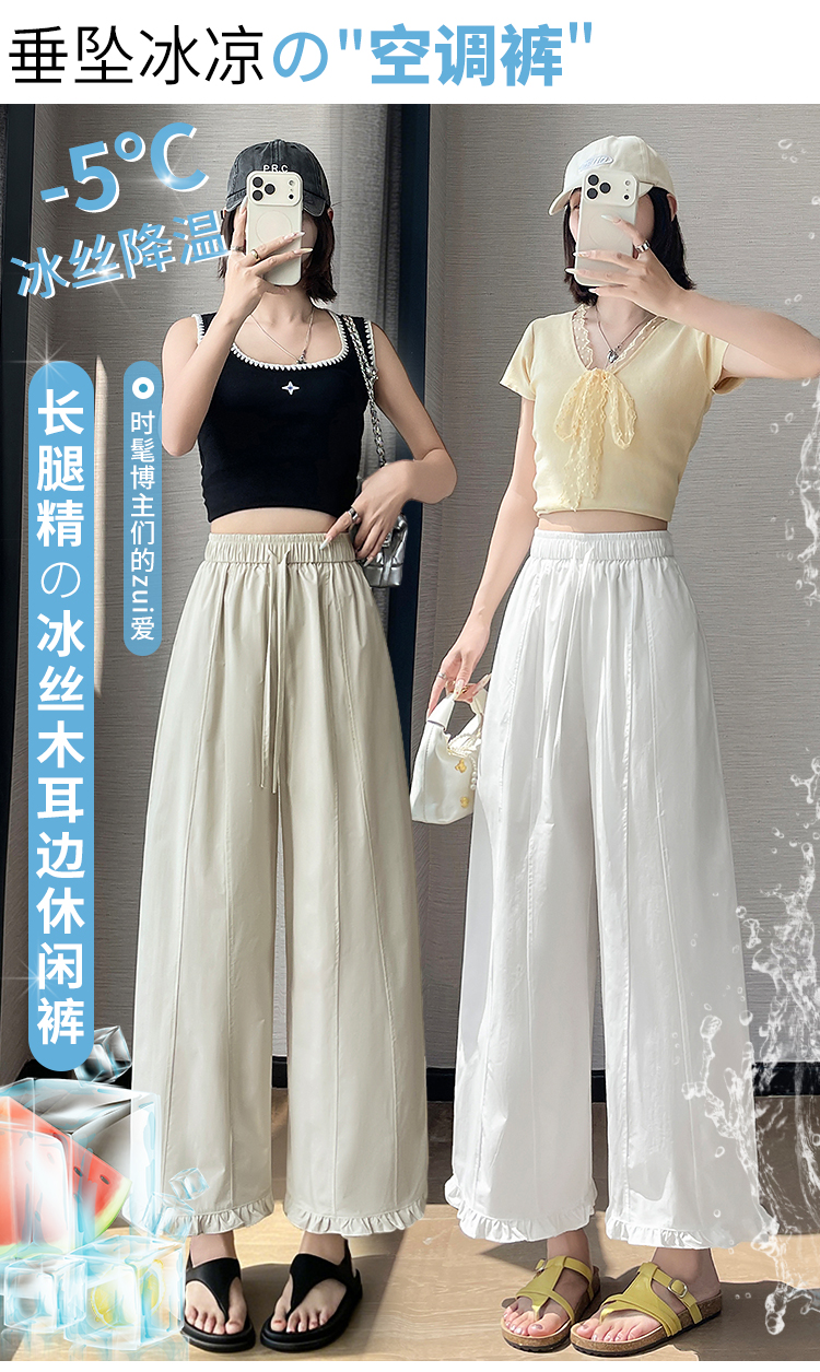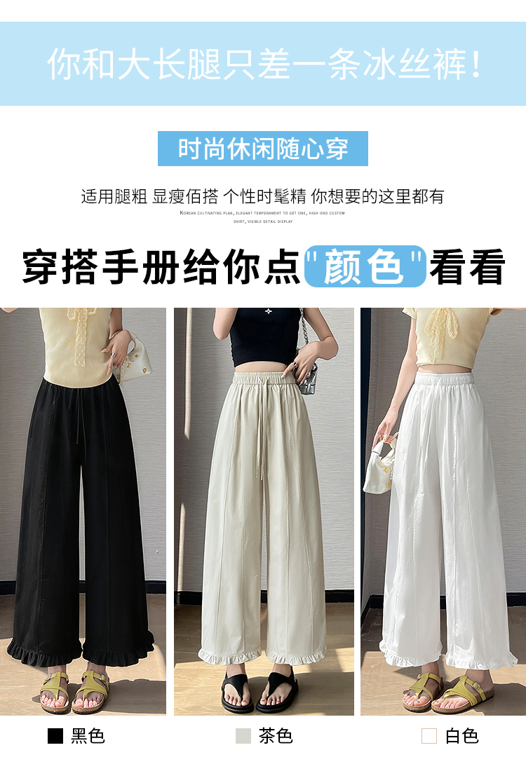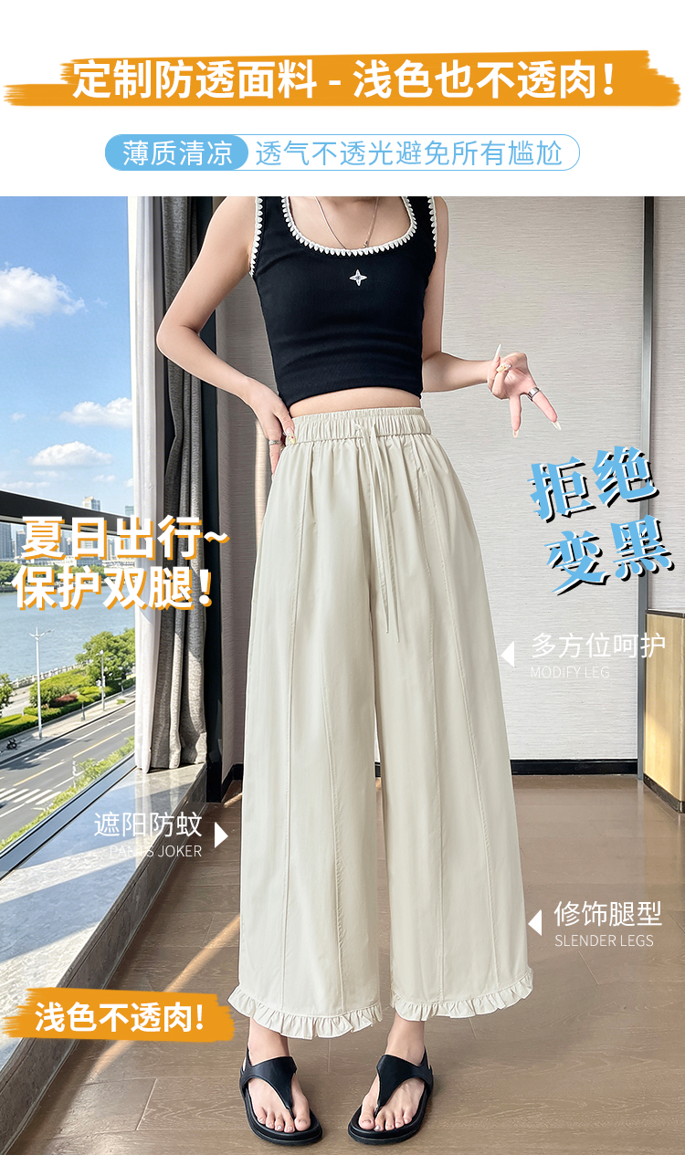 실사 목이버섯 레이스 얼음 실크 속도 건조한 와이드 레깅스 바지 여름 섹션 도루 센스 스트레이트 9 포인트 자외선 차단 바지 루즈핏 캐주얼 바지
