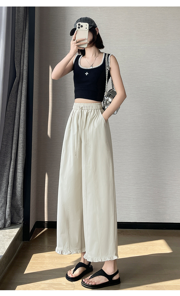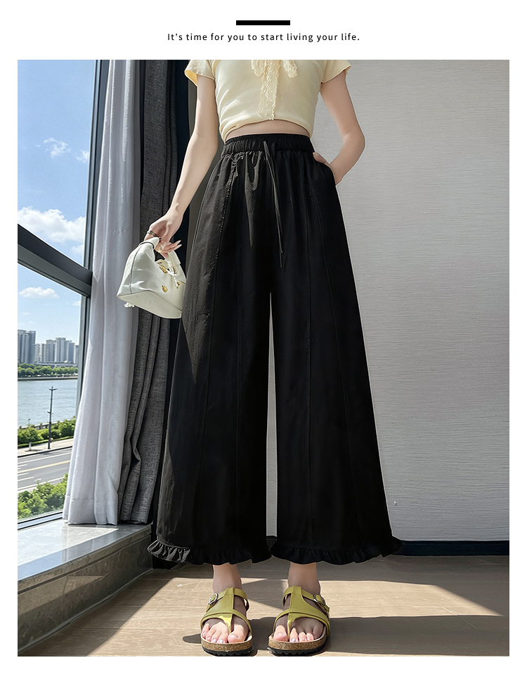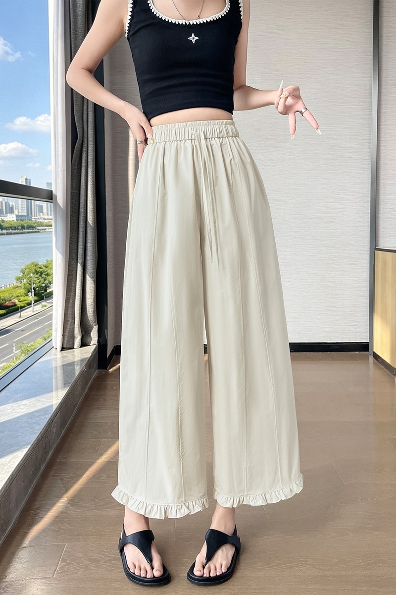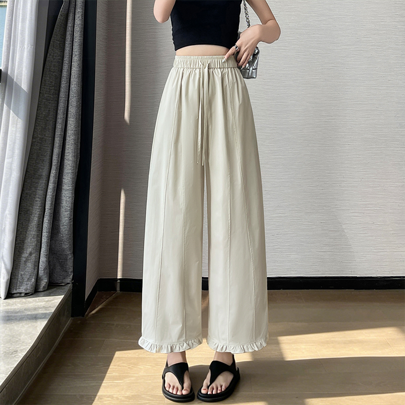 실사 목이버섯 레이스 얼음 실크 속도 건조한 와이드 레깅스 바지 여름 섹션 도루 센스 스트레이트 9 포인트 자외선 차단 바지 루즈핏 캐주얼 바지
