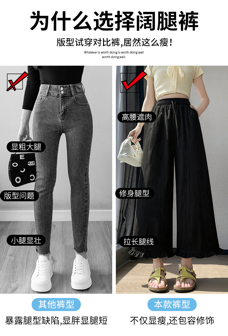 실사 레이스 방귀 커튼 와이드 레그 팬츠 여름 얇은 스타일 하이웨이스트 도루 센스 면 린넨 치마바지 루즈핏 국방 사이 슬림해 보이는 바닥 청소 바지