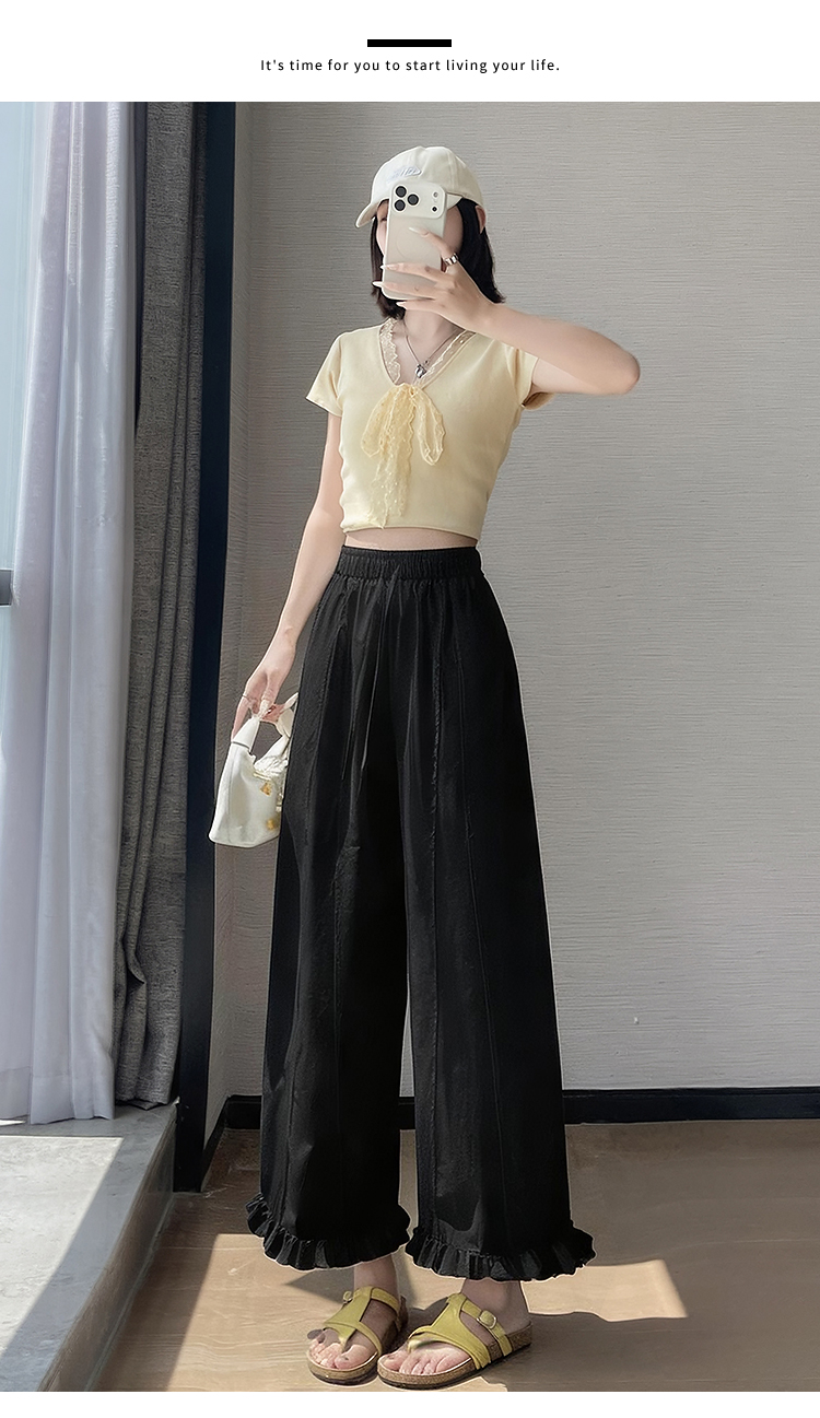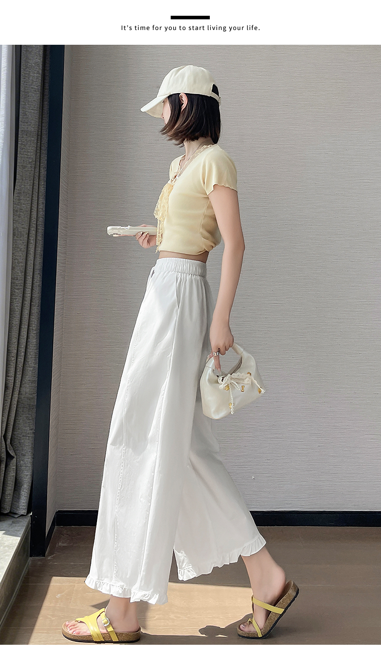 실사 화이트 얼음 실크 레이스 와이드 레깅스 바지 여름 하이웨이스트 도루 센스 루즈핏 스트레이트 9 포인트 캐주얼 꽃밭 바지