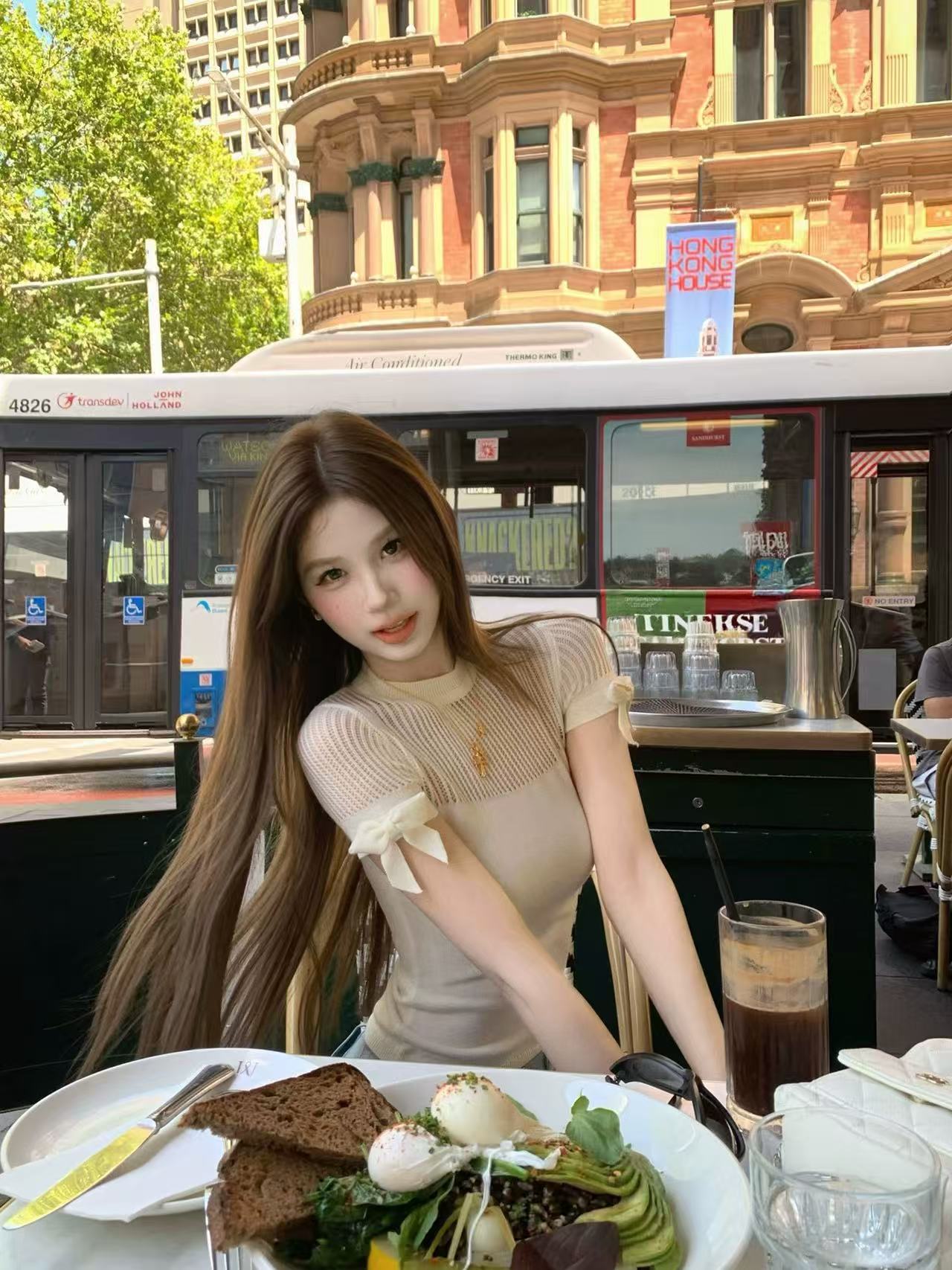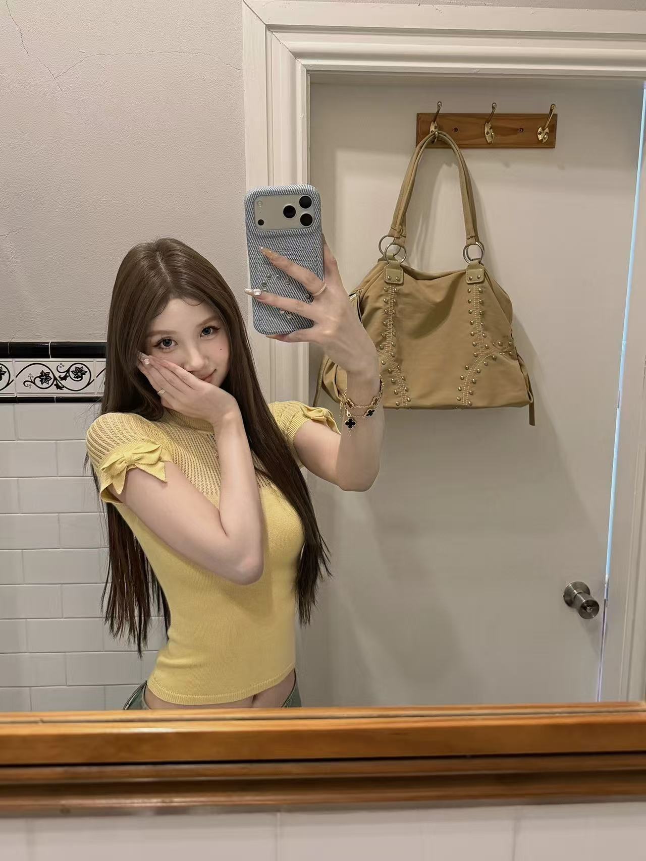tongiiuu 웨이 니켈 소녀 라운드 넥 홀로우 아웃 나비 매듭 니트 반팔 티셔츠 여성 몸매 가꾸기 슬림해 보이는 맨위 여름