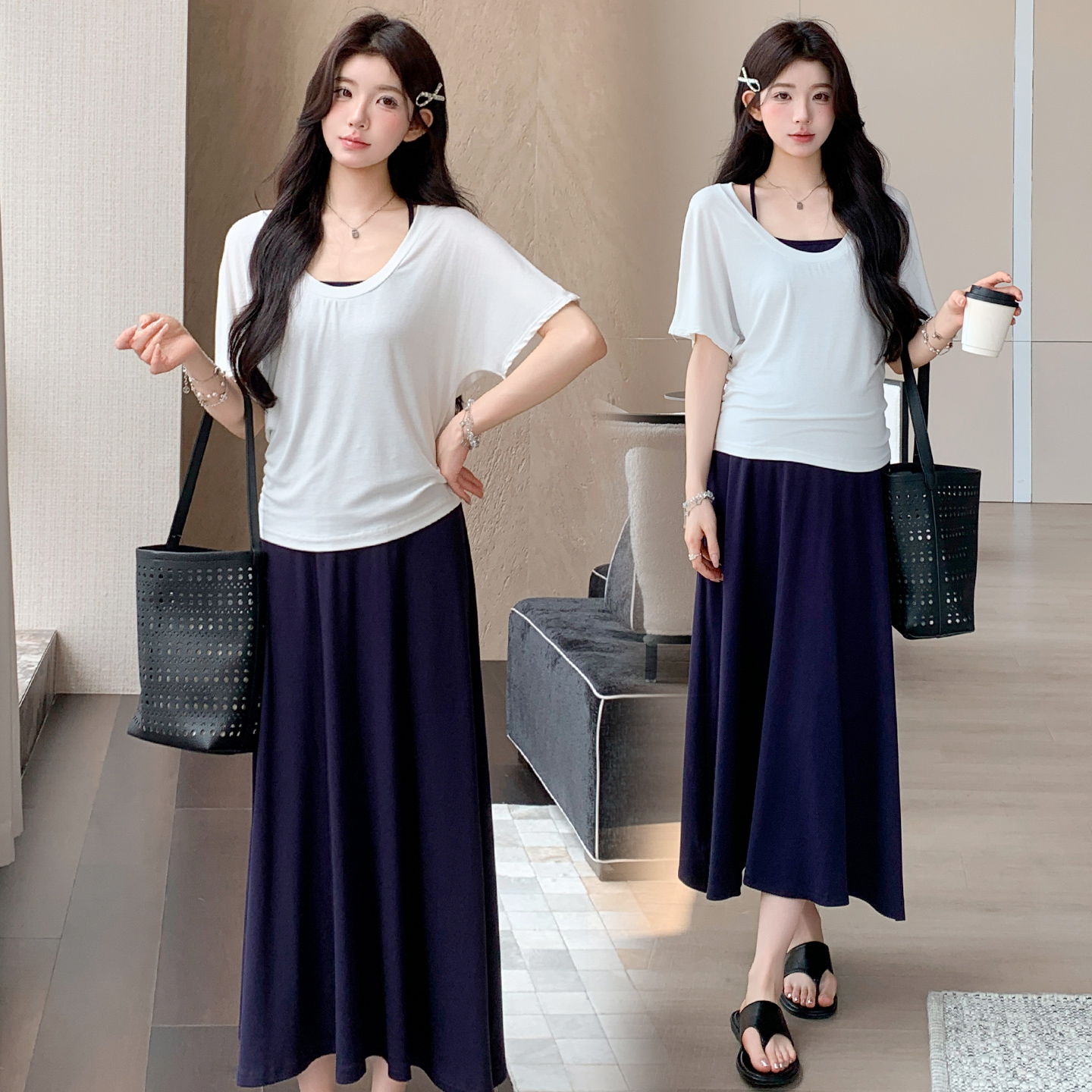 실사 2026 여름 새로운 품격 니트 패션 투피스 세트 임산부 드레스