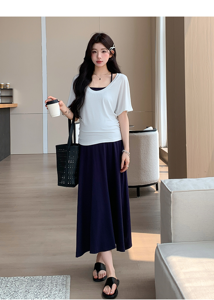 실사 지금 2026 여름 신제품 몸매 가꾸기 슬립 투피스 세트 반팔 드레스