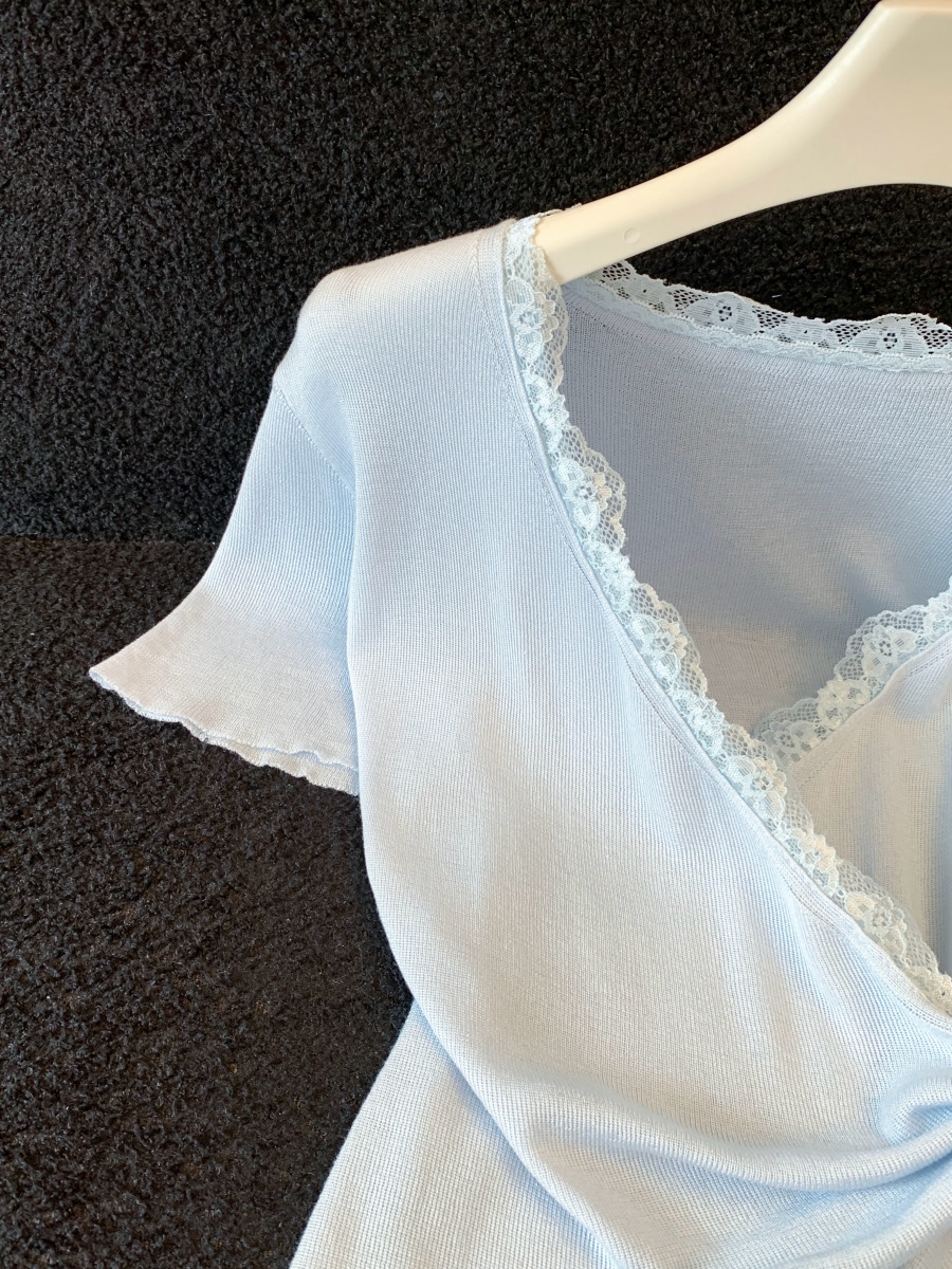 실사 레이스 레이스 코라 오프숄더 반팔 구덩이 기사 니트 스웨터 여성 여름 쇼트 스타일 작은 대중 몸매 가꾸기 품격 맨위