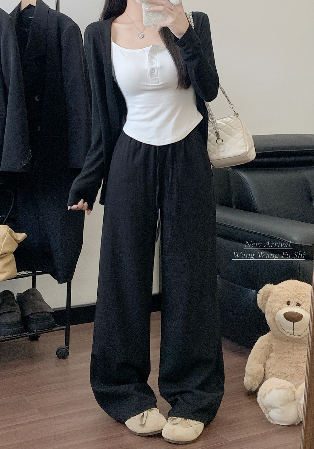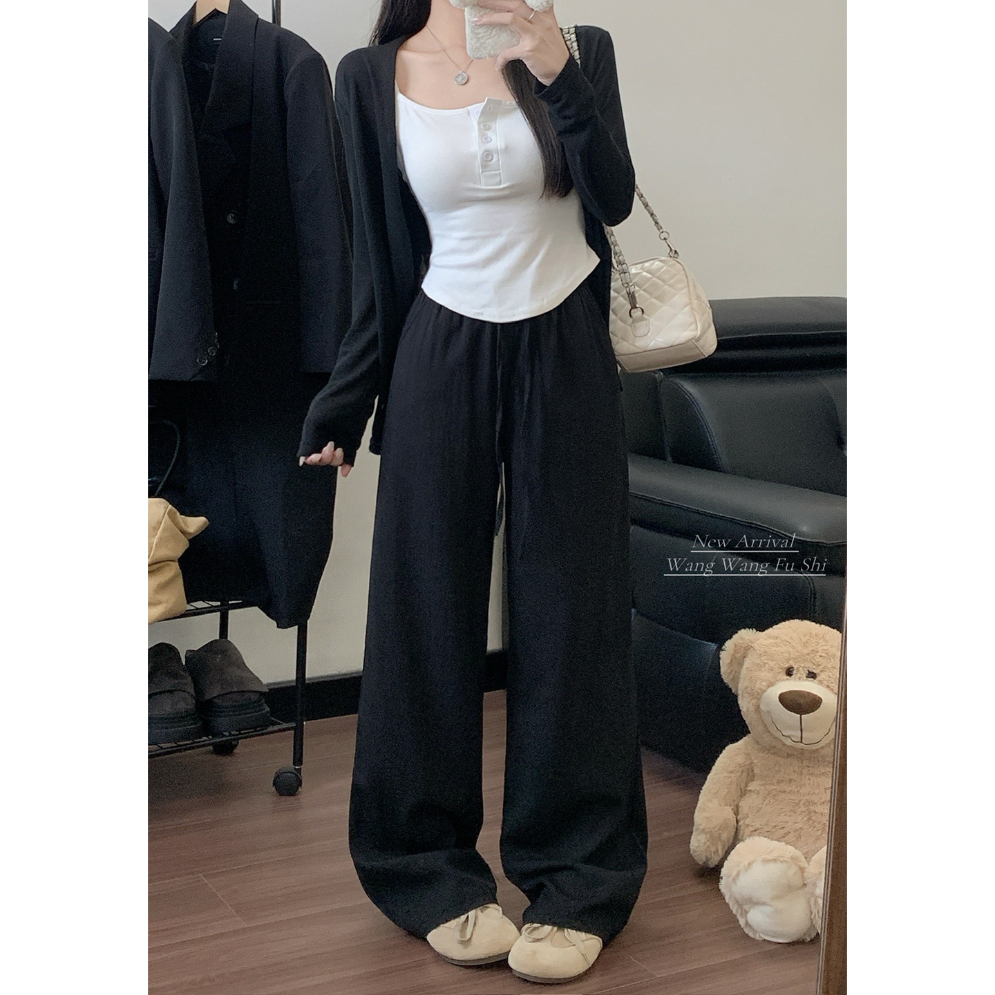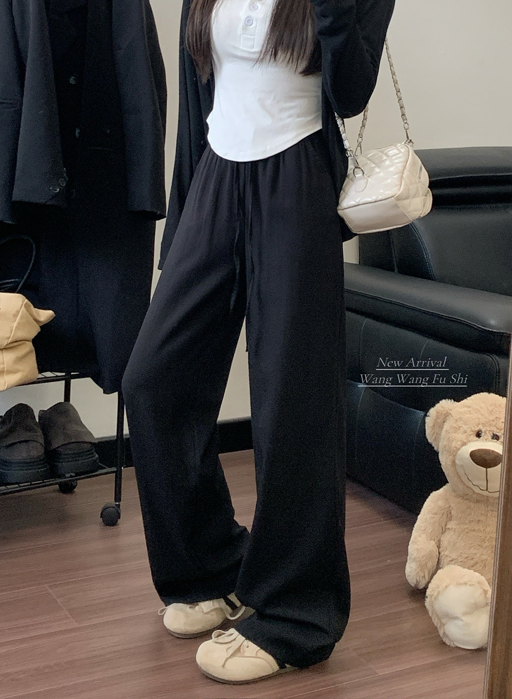실사 2026 루즈핏 디자인 센스 정장 바지 캐주얼 바지 여성 와이드 레그 팬츠 하이웨이스트 도루 센스 바닥 청소 바지