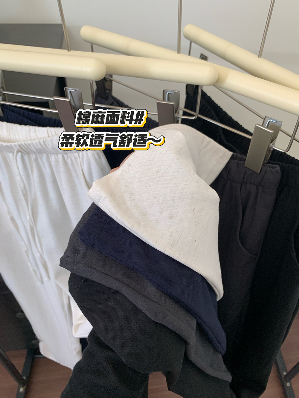실사 2026 새로운 면 린넨 통기성 펌프 로프 넓은 다리 캐주얼 정장 긴 바지 여성