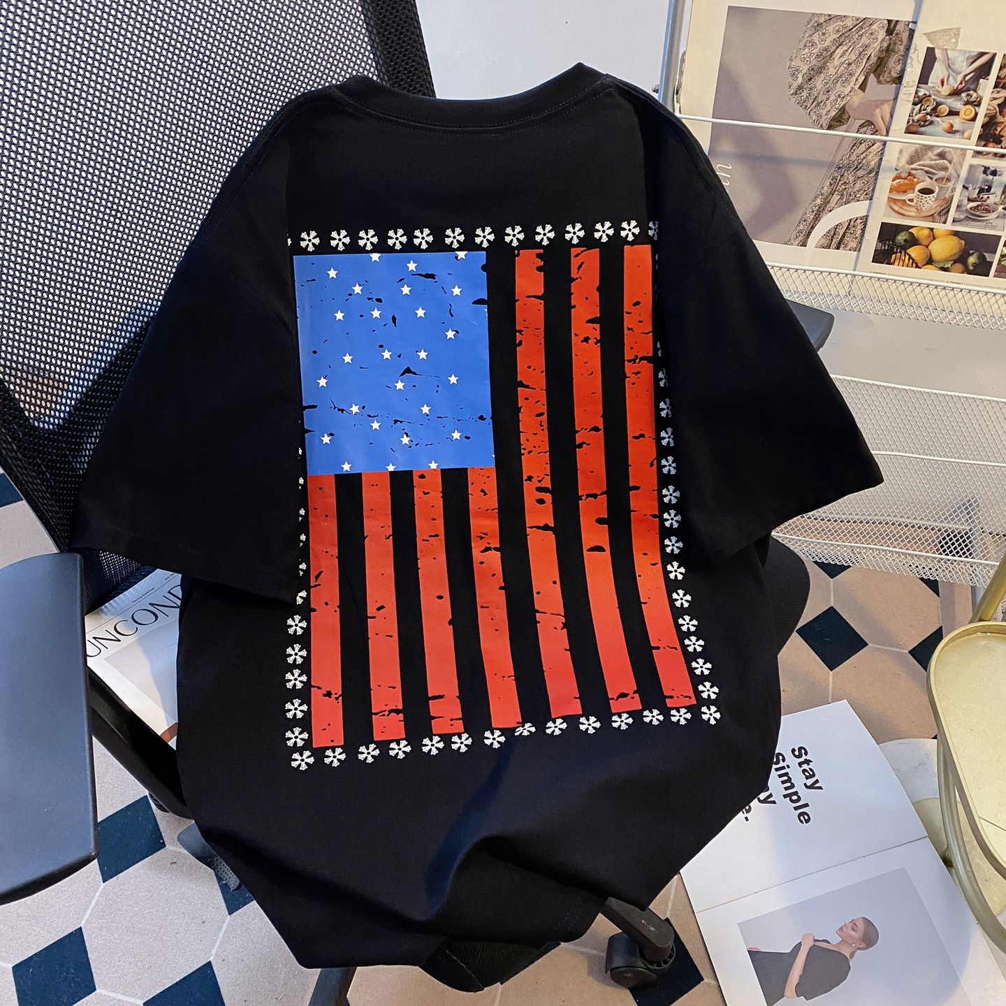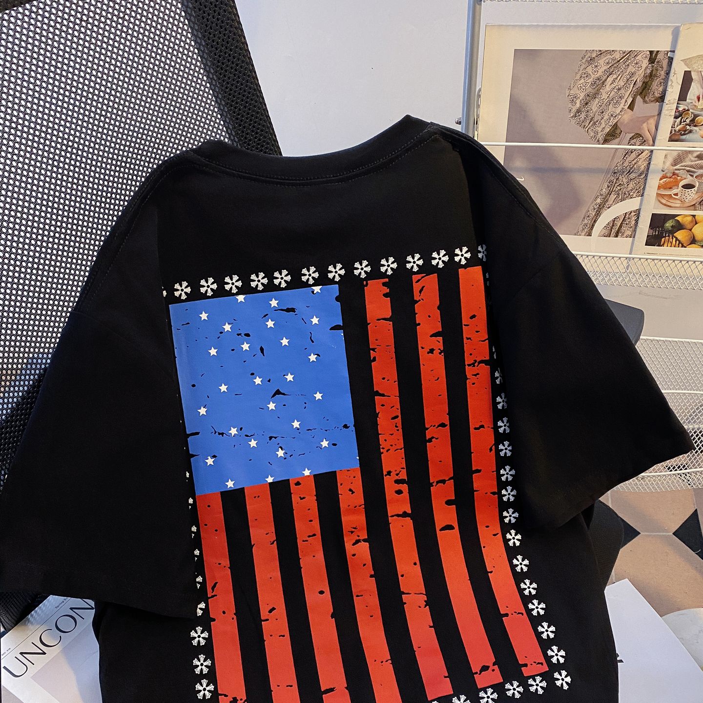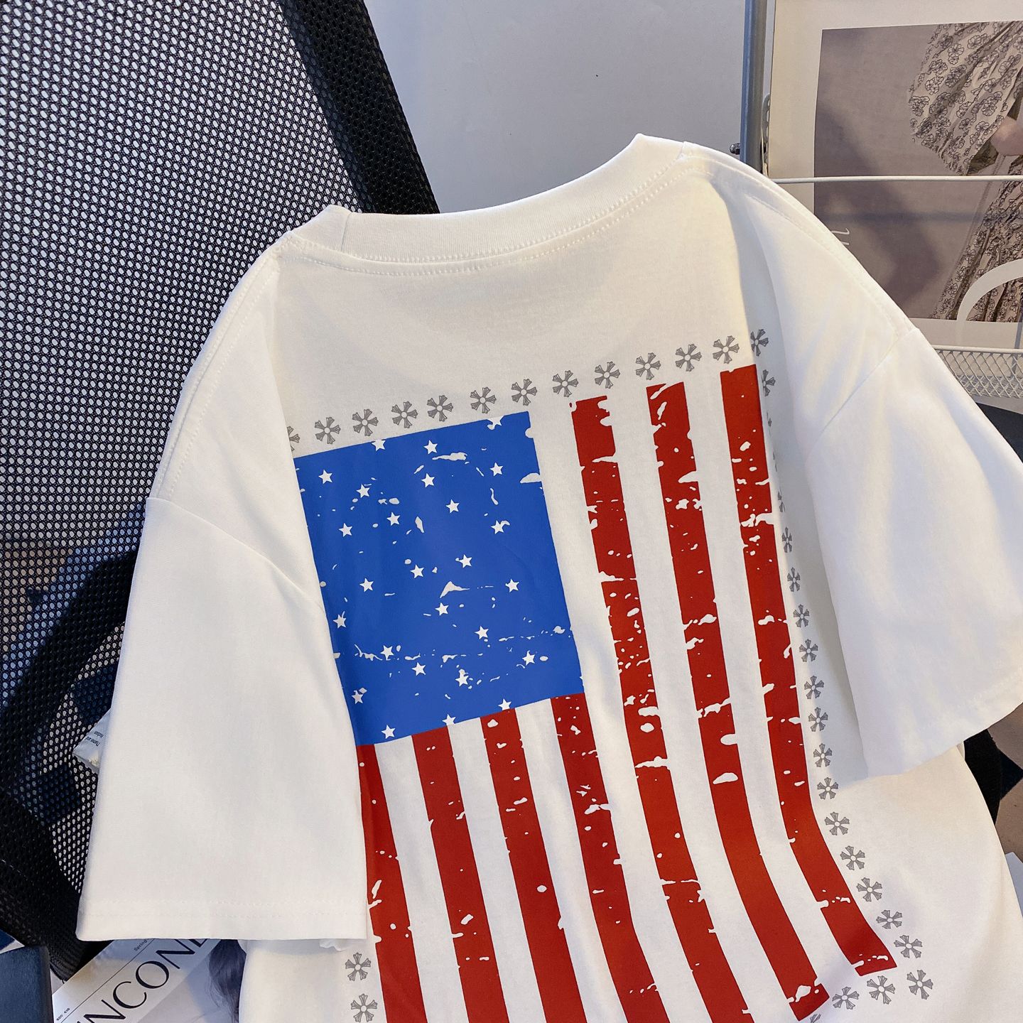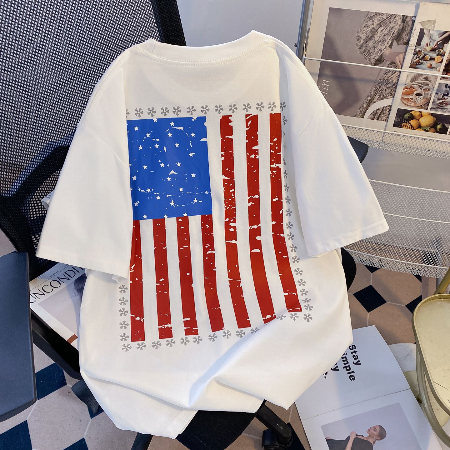 200그램 순면 이후 패키지 칼라 색상 색 후광 염색 루즈핏 티셔츠 여성 디자인 센스 프린트 슬림해 보이는 맨위 트렌디