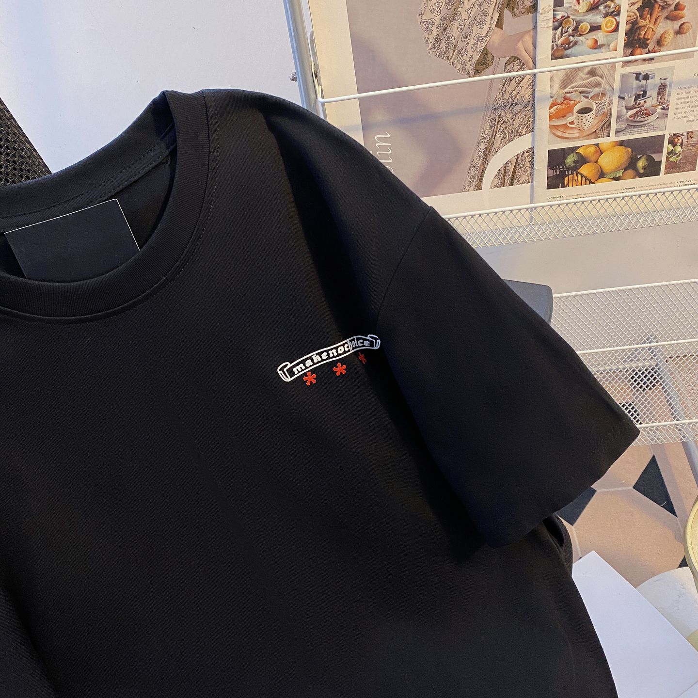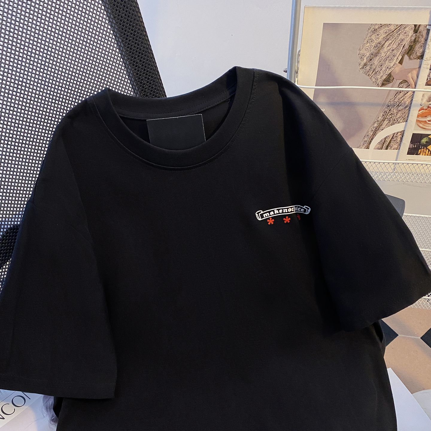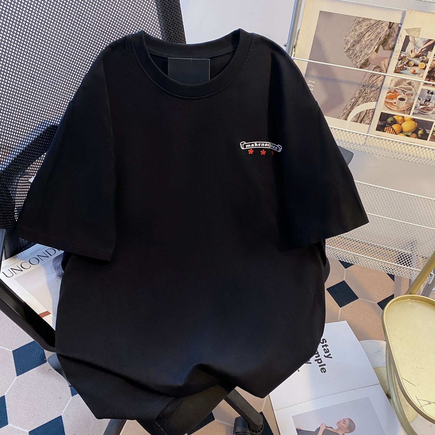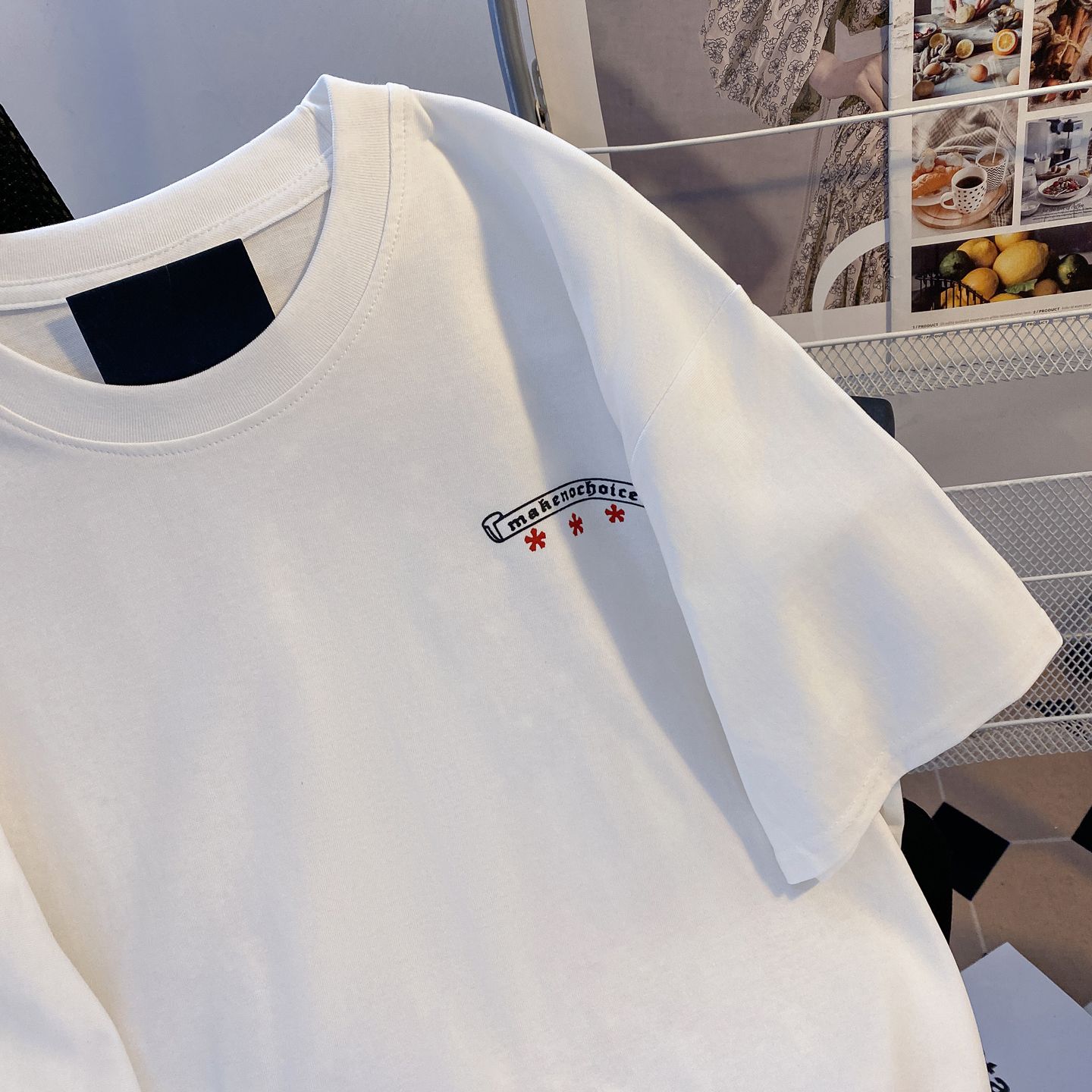 실사 더블 실 240 그램 순면 반팔 티셔츠 여성 여름 새로운 루즈핏 긍정적 인 어깨 알파벳 자수 라운드 넥 맨위