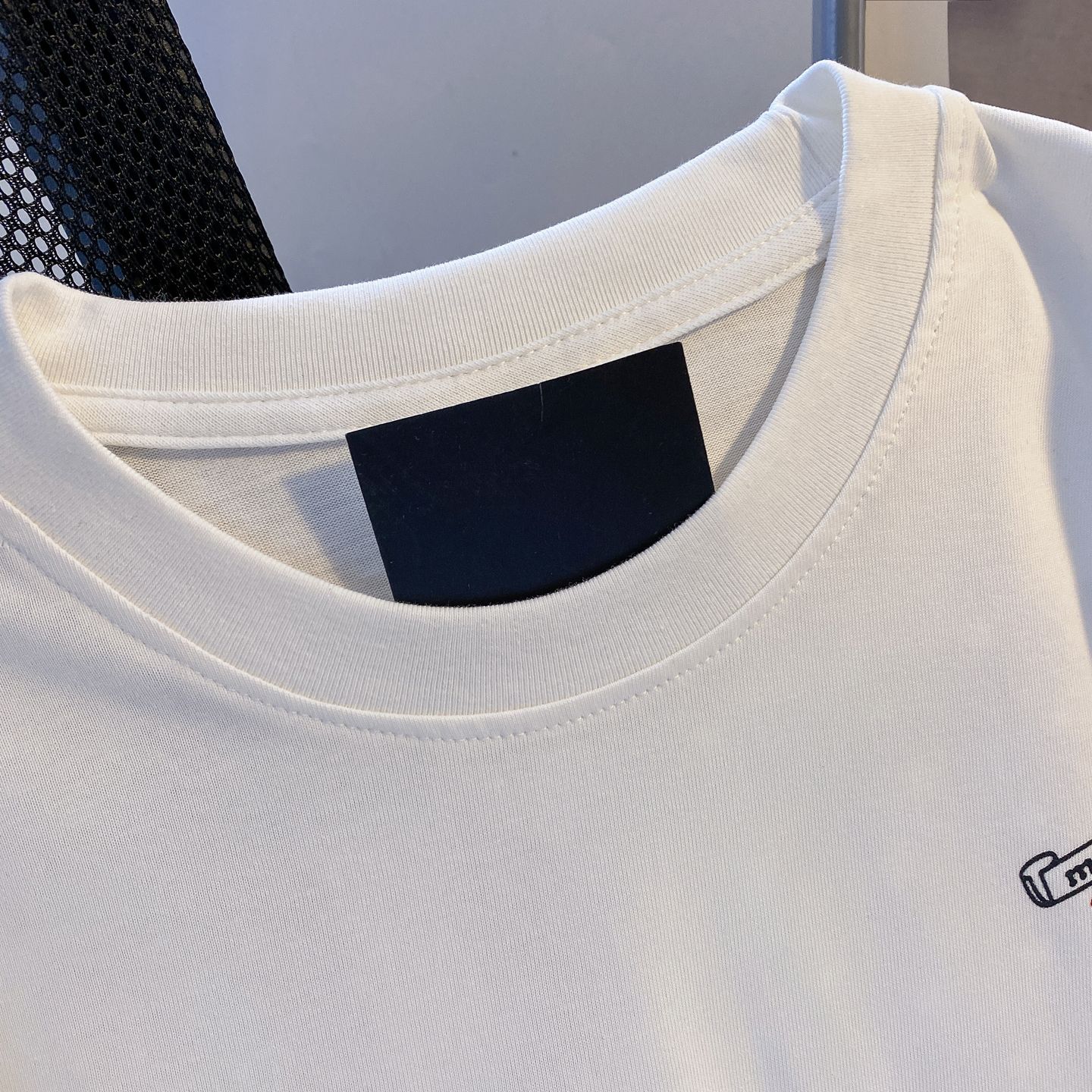 실사 더블 실 240 그램 순면 반팔 티셔츠 여성 여름 새로운 루즈핏 긍정적 인 어깨 만화 자수 라운드 넥 맨위