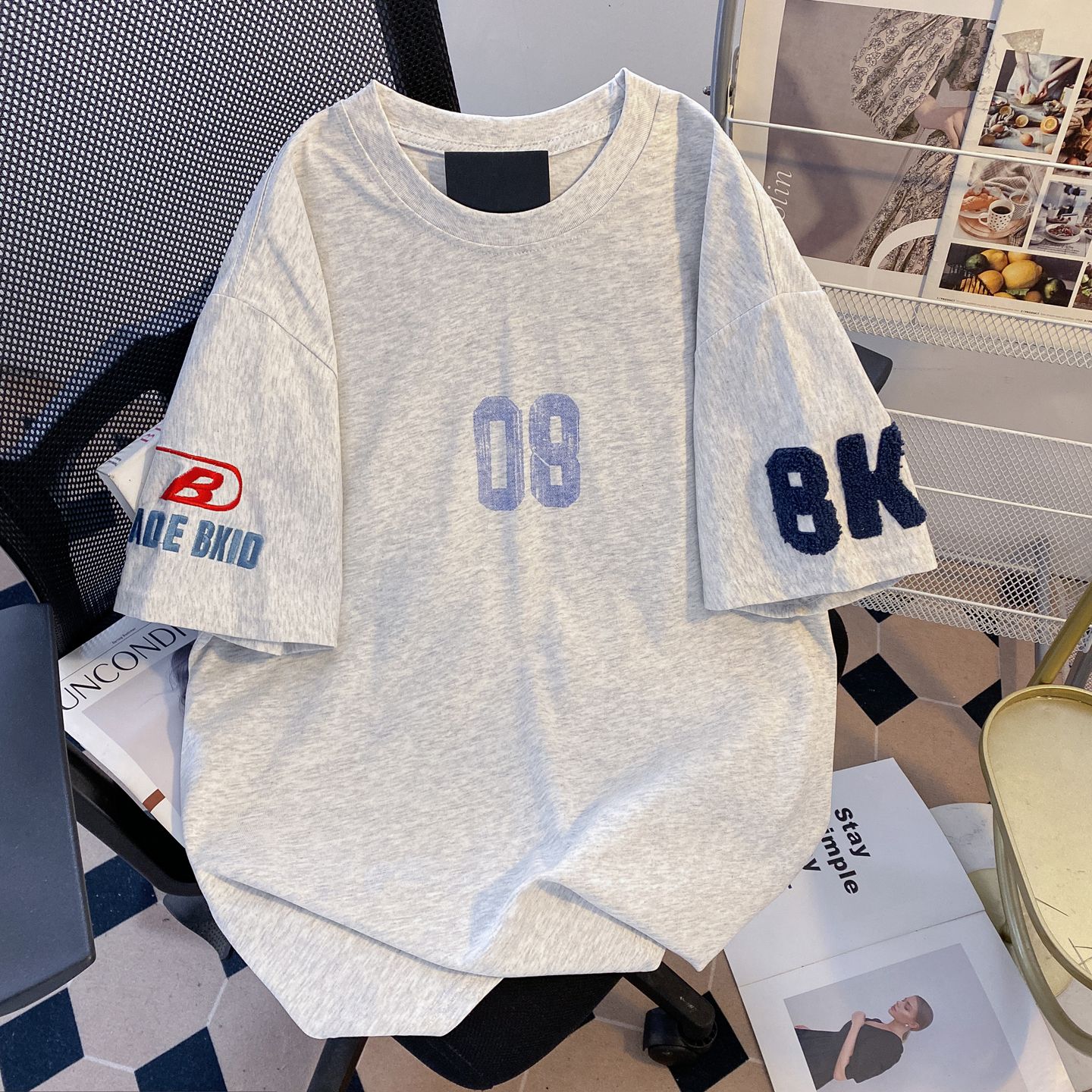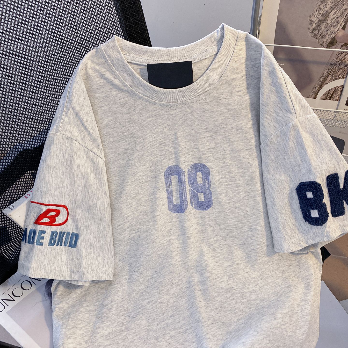 200그램 순면 이후 패키지 칼라 색상 색 후광 염색 루즈핏 티셔츠 여성 디자인 센스 프린트 슬림해 보이는 맨위 트렌디