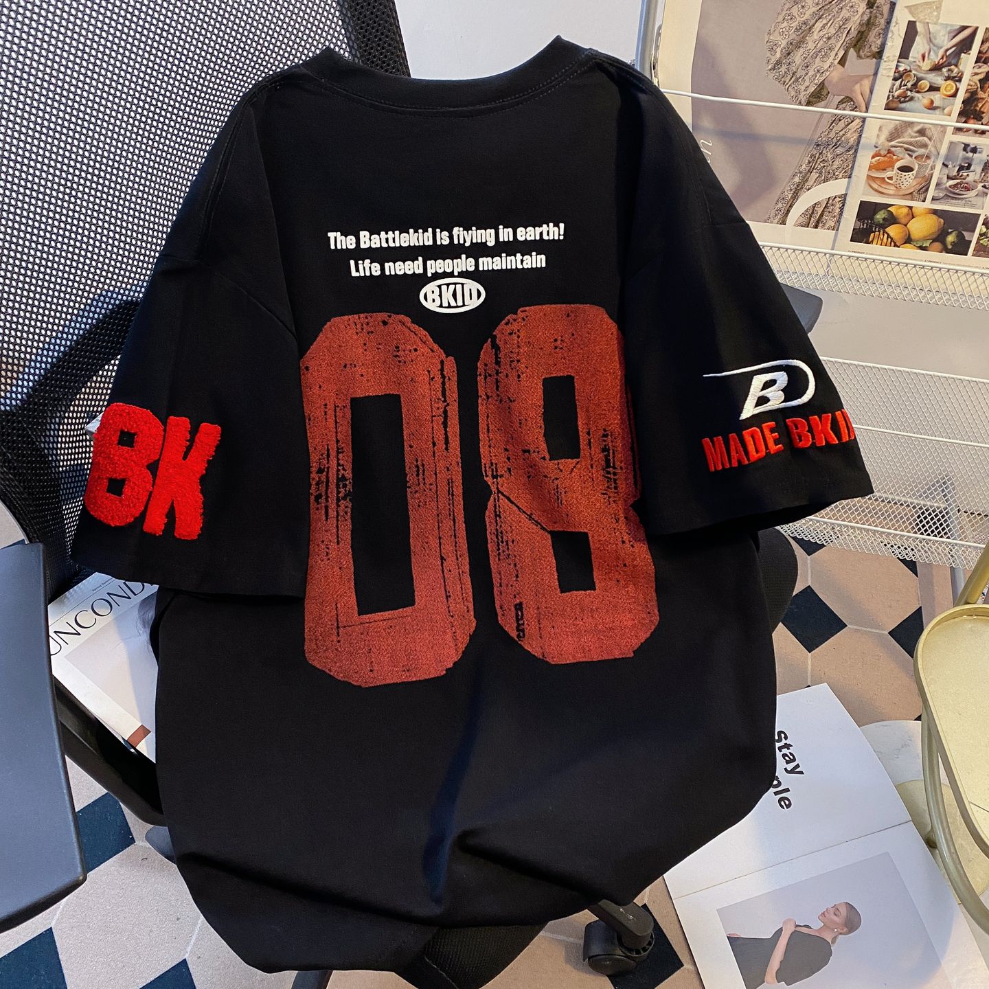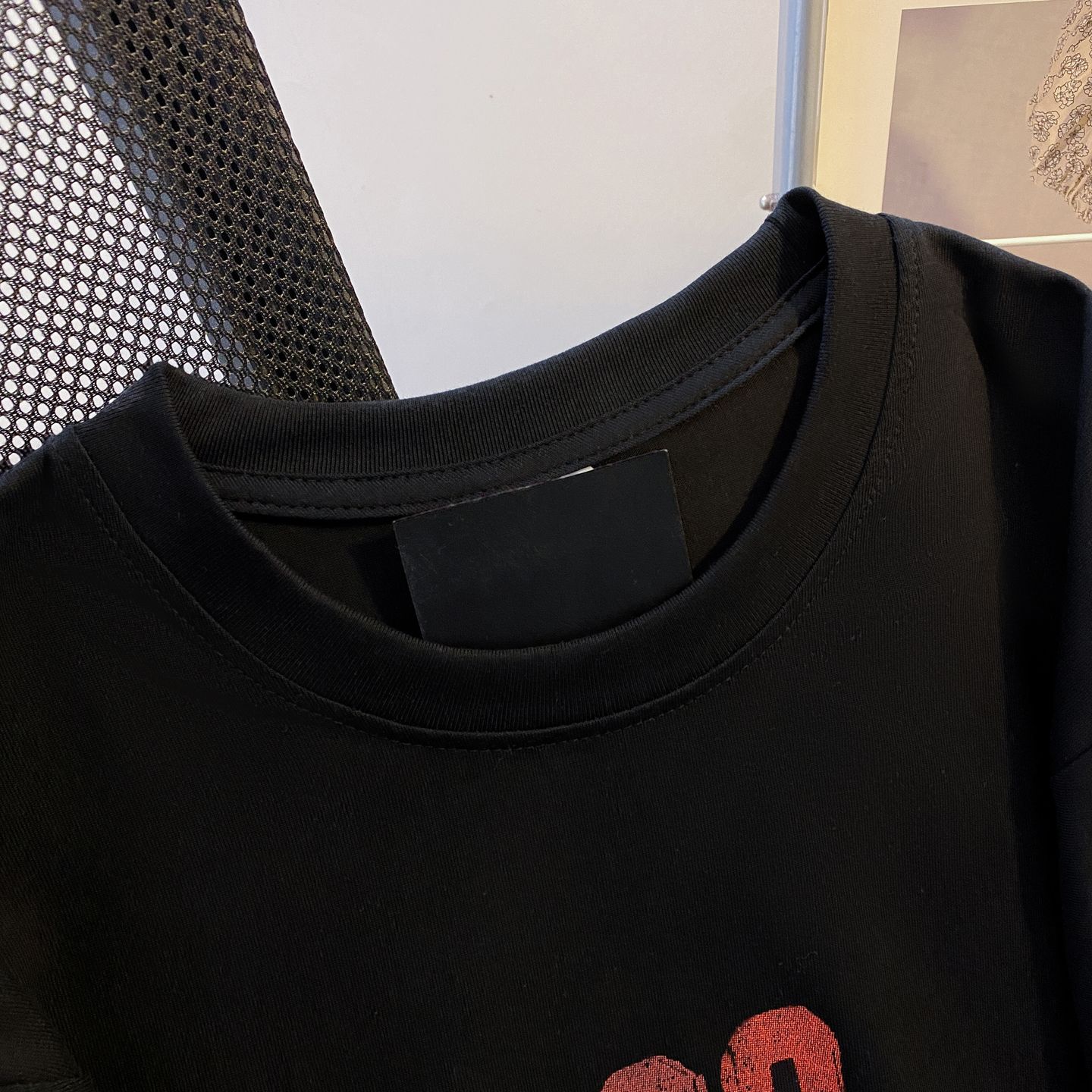 실사 더블 실 240 그램 순면 반팔 티셔츠 여성 여름 새로운 루즈핏 긍정적 인 어깨 알파벳 프린트 라운드 넥 맨위