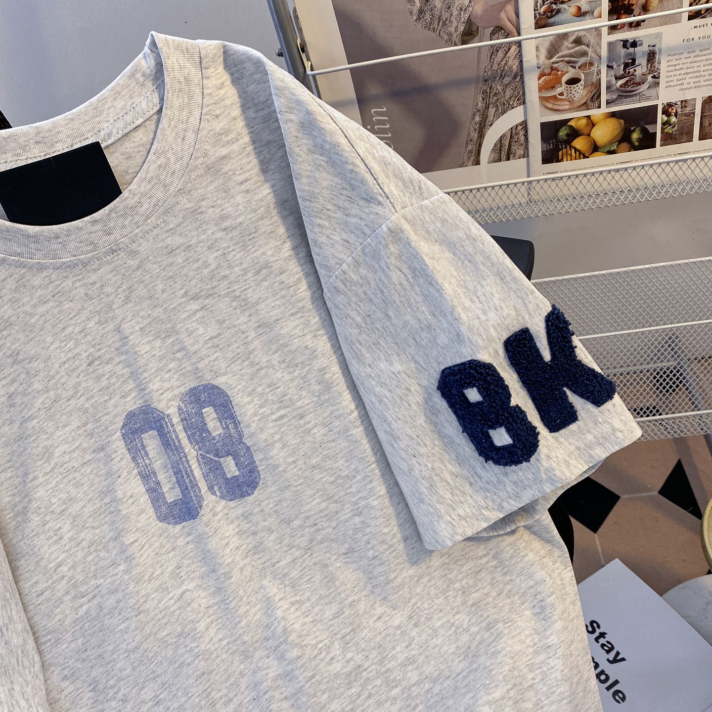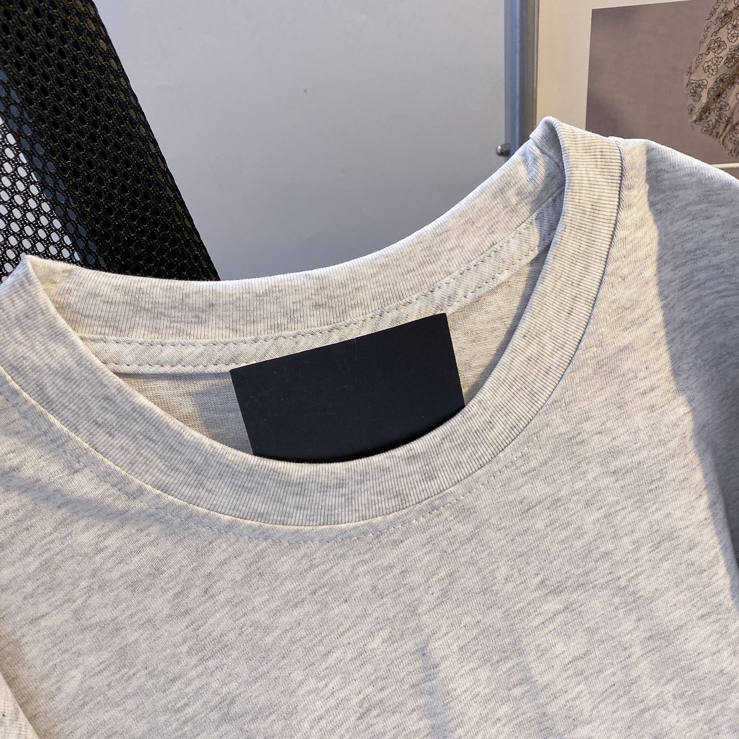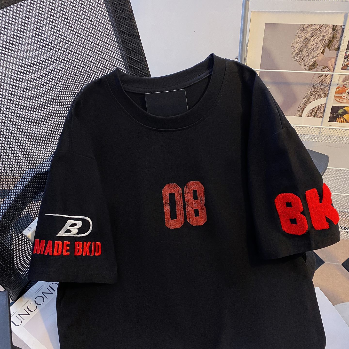 실사 더블 실 240 그램 순면 반팔 티셔츠 여성 여름 새로운 루즈핏 긍정적 인 어깨 알파벳 자수 라운드 넥 맨위