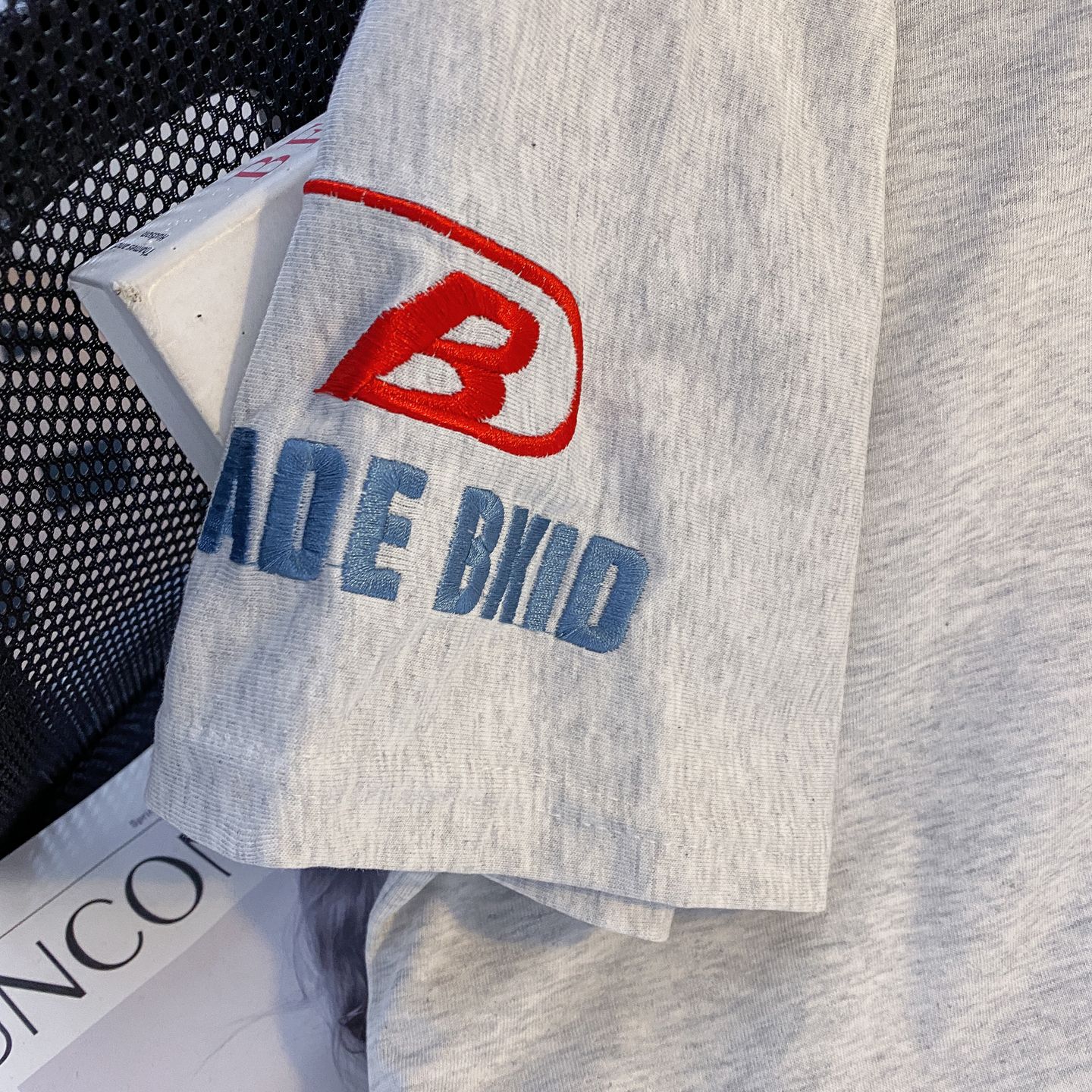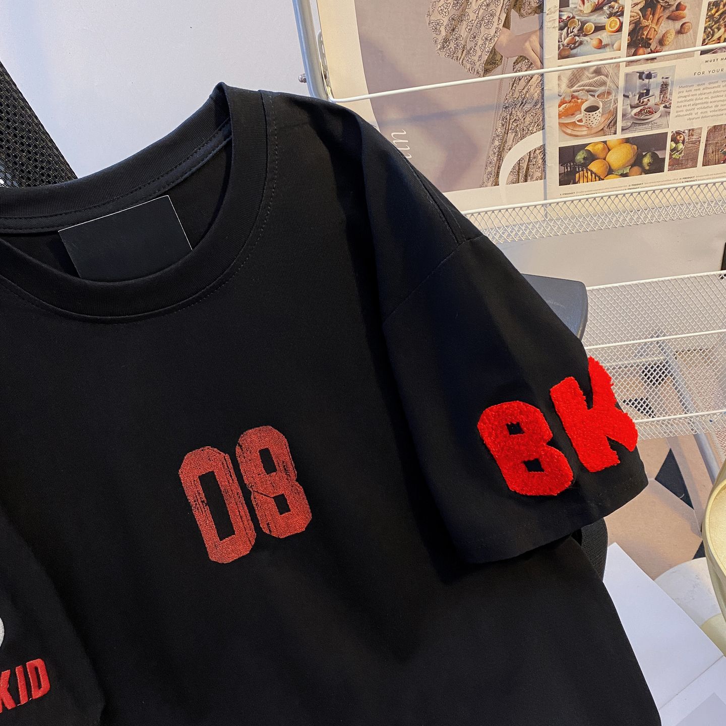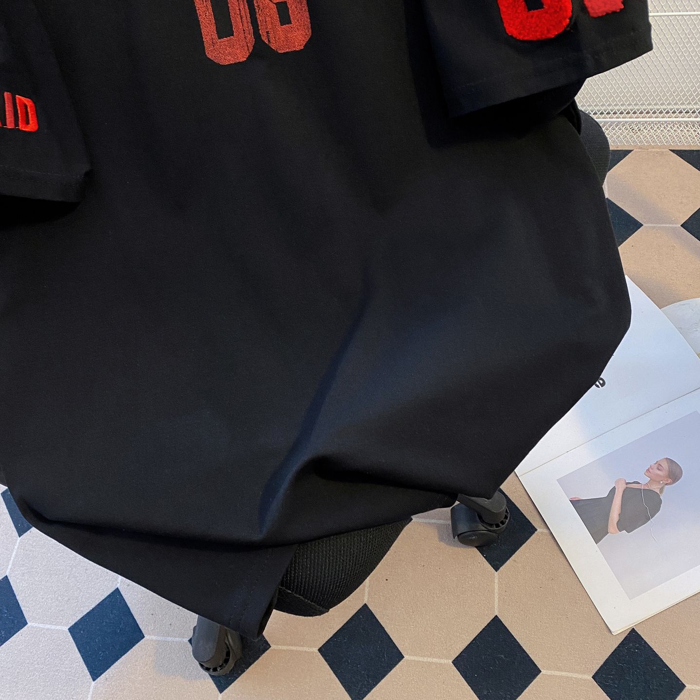 실사 더블 실 240 그램 순면 반팔 티셔츠 여성 여름 새로운 루즈핏 긍정적 인 어깨 알파벳 자수 라운드 넥 맨위