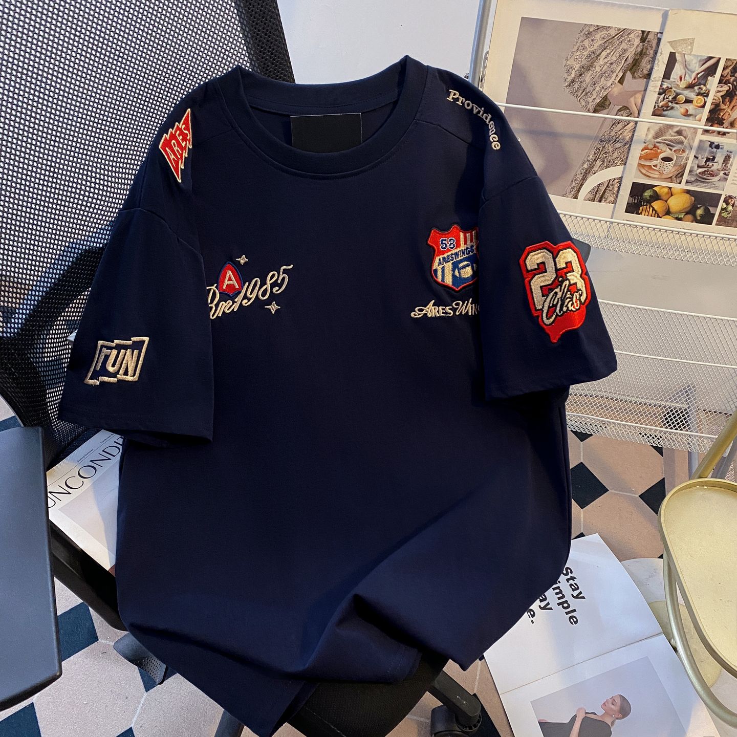 200그램 순면 이후 패키지 칼라 색상 색 후광 염색 루즈핏 티셔츠 여성 디자인 센스 프린트 슬림해 보이는 맨위 트렌디
