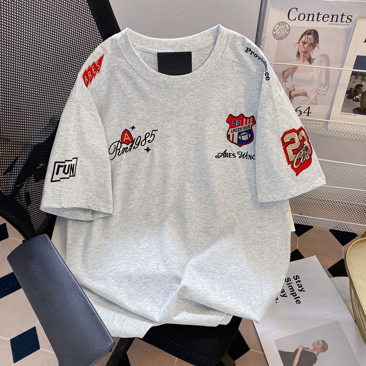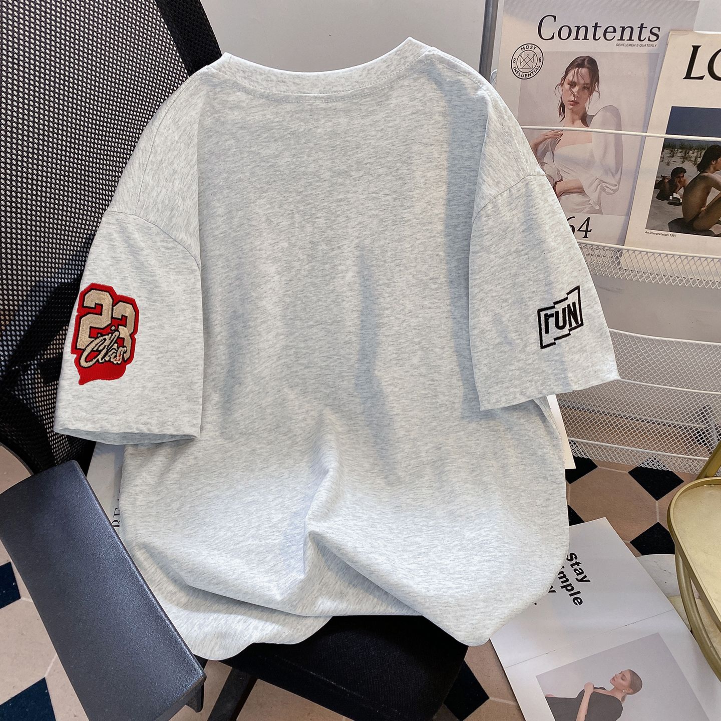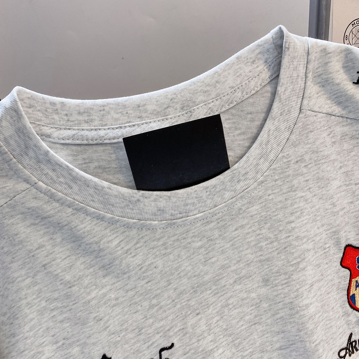 실사 더블 실 240 그램 순면 반팔 티셔츠 여성 여름 새로운 루즈핏 긍정적 인 어깨 알파벳 자수 라운드 넥 맨위