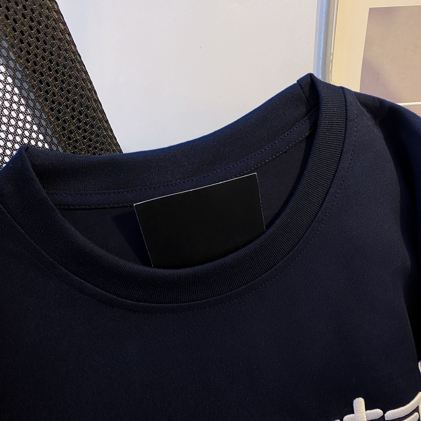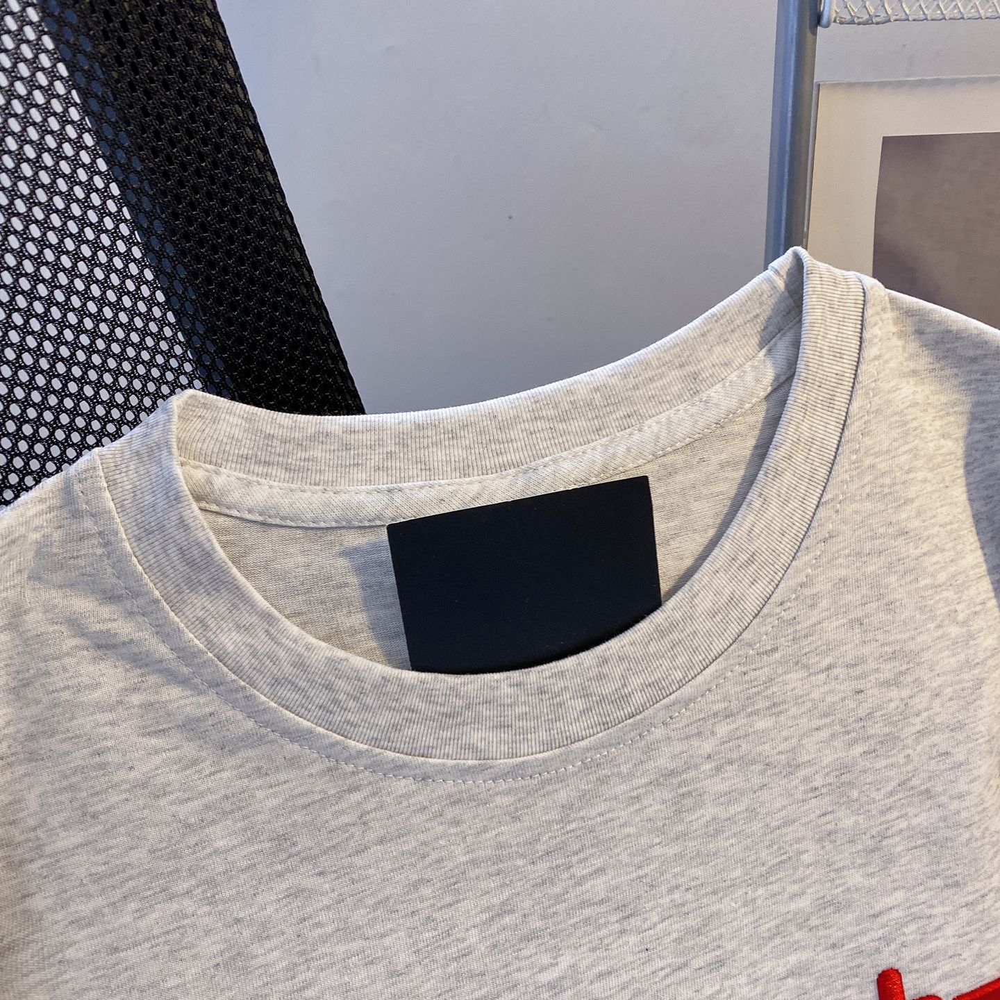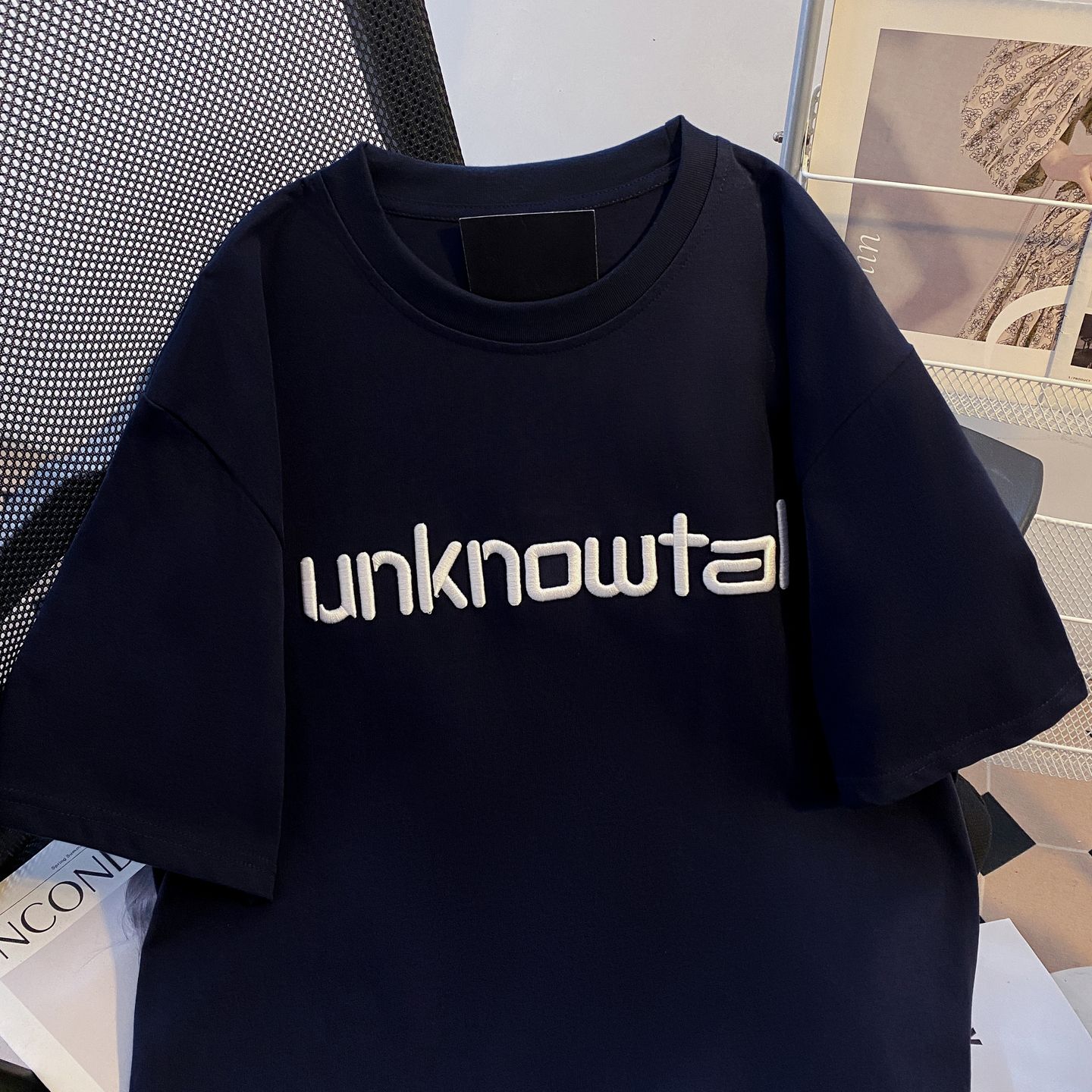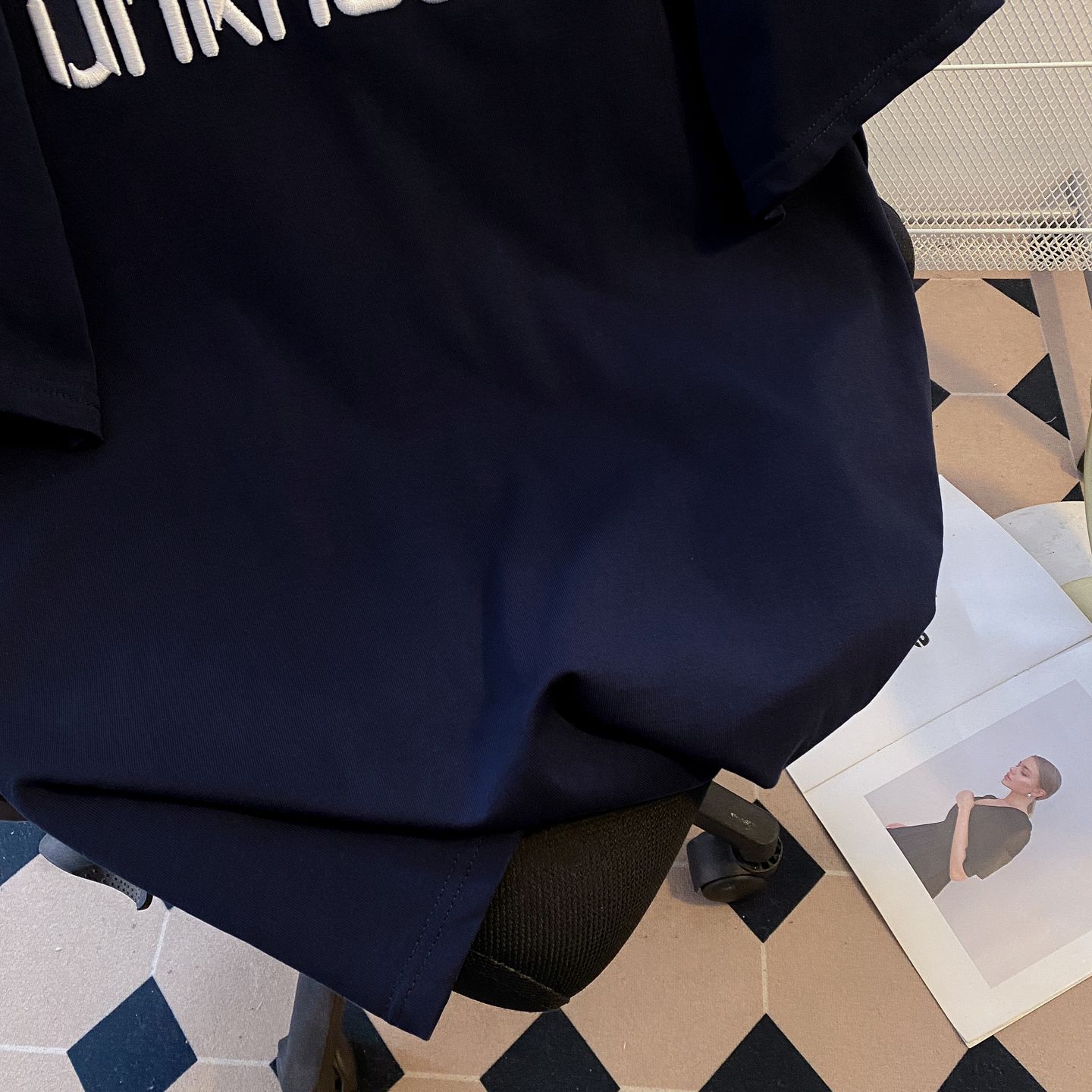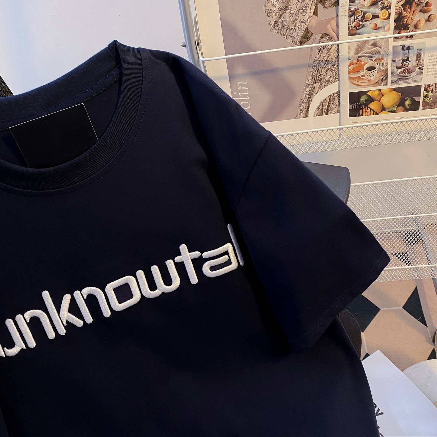 실사 더블 실 240 그램 순면 반팔 티셔츠 여성 여름 새로운 루즈핏 긍정적 인 어깨 알파벳 자수 라운드 넥 맨위
